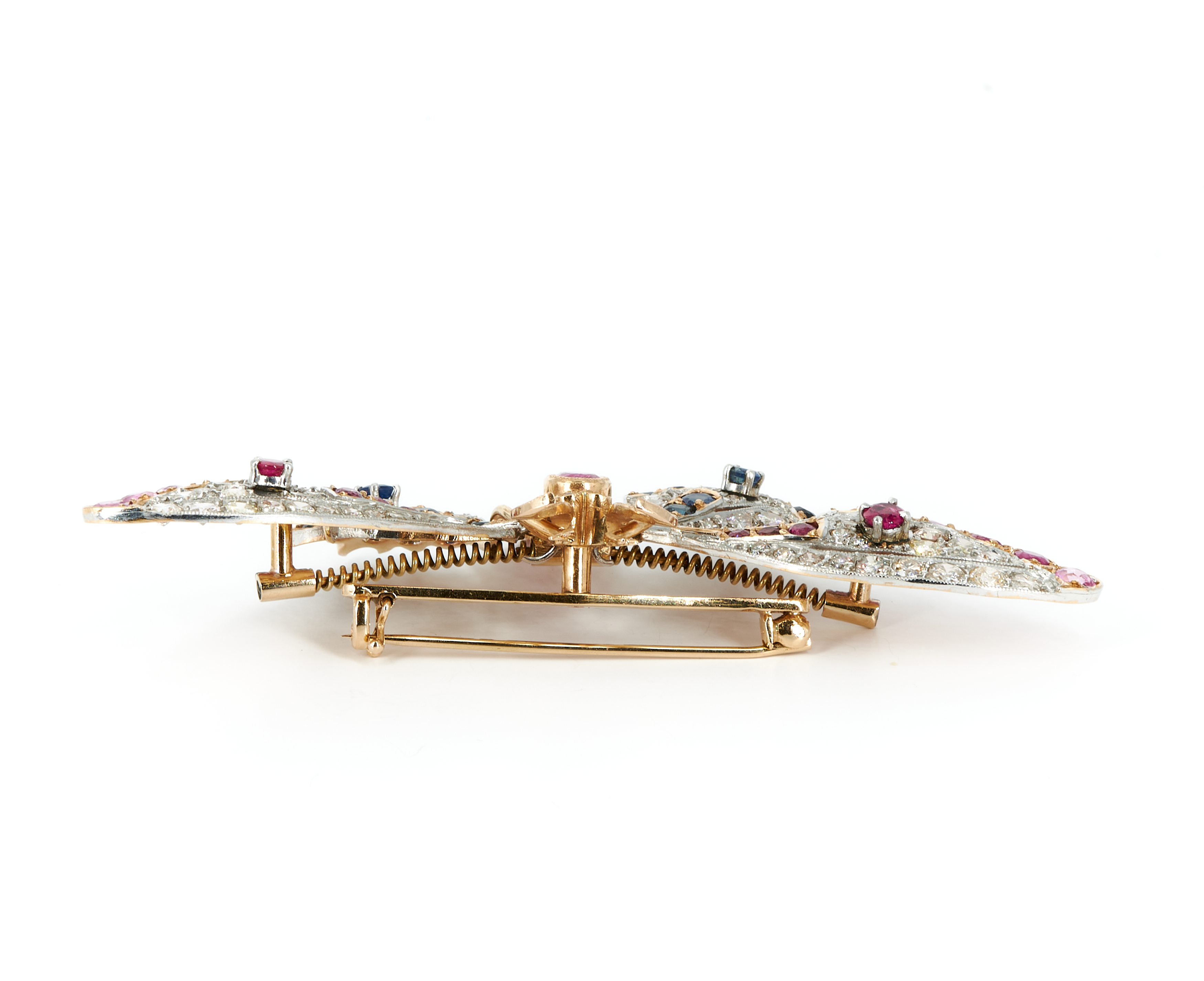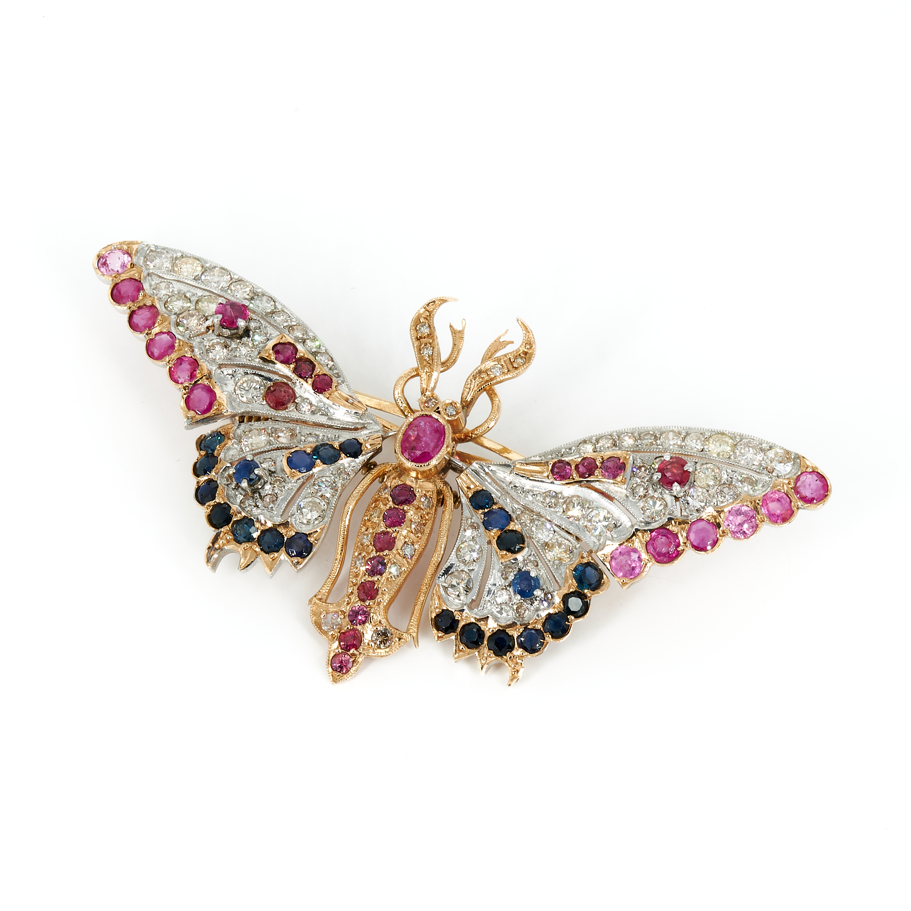 SCHMETTERLING-FARBSTEIN-DIAMANT-BROSCHE.