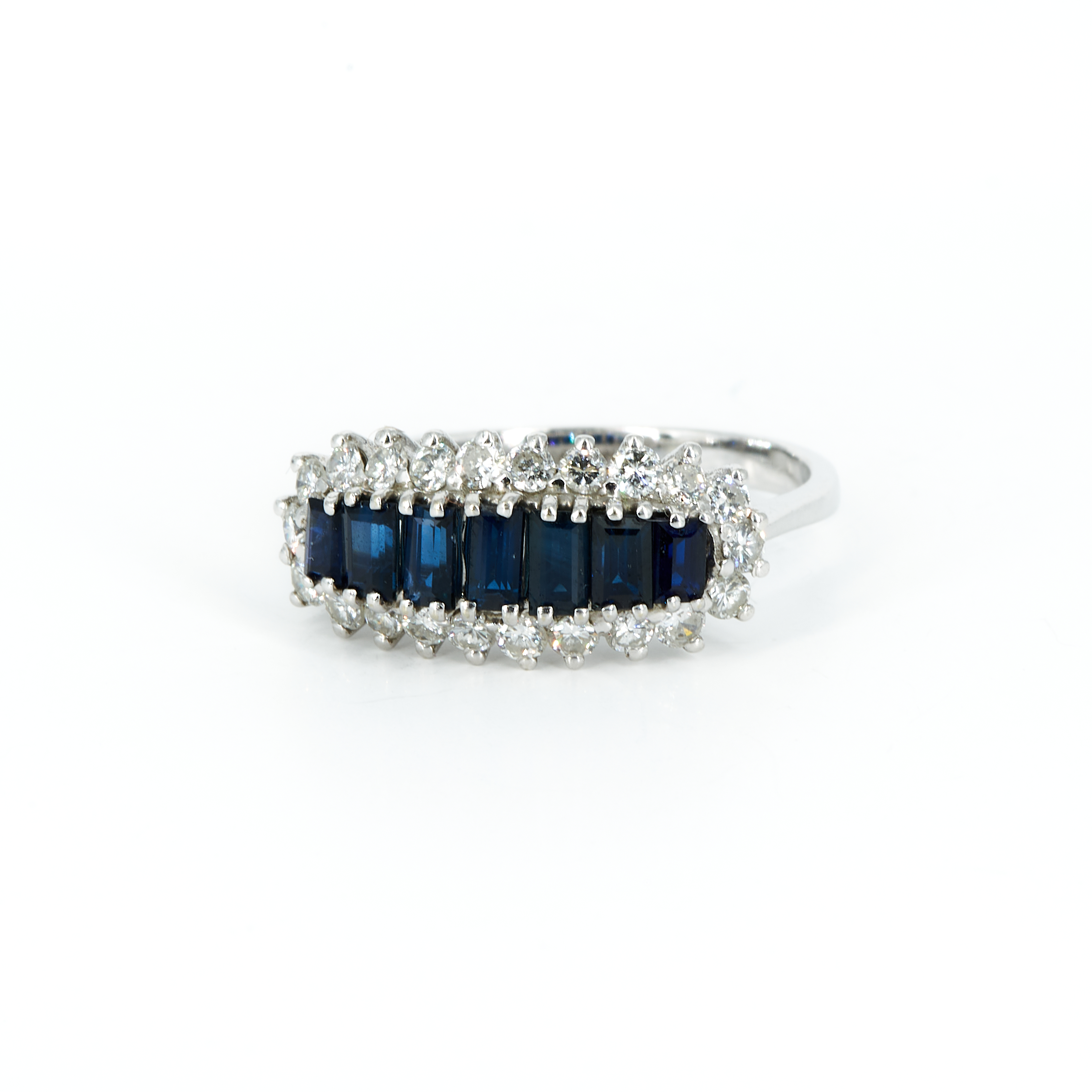 Edelsteine: 7 Farbstein-Baguetten, wohl Saphir zus. ca. 1,0 ct.
