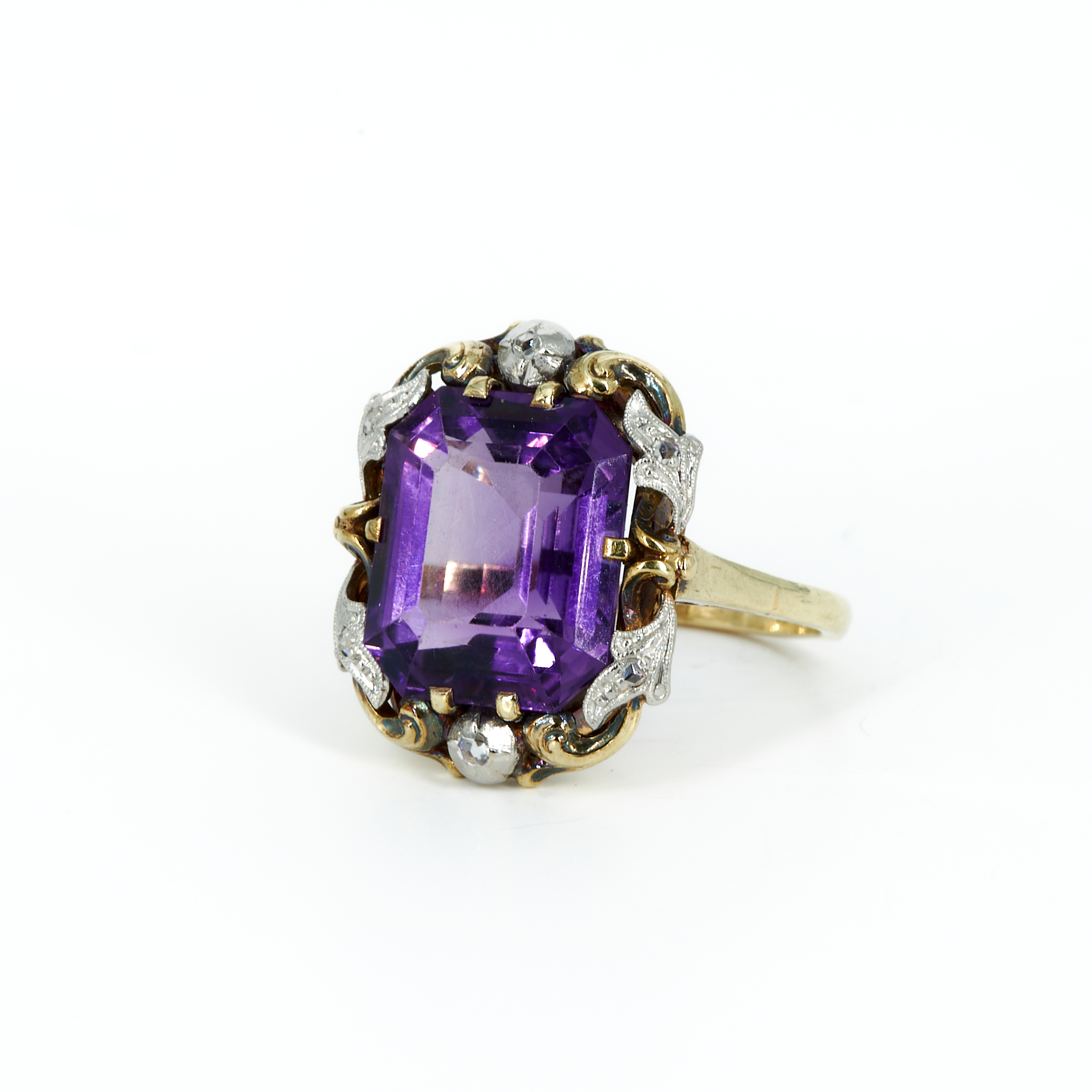 Edelsteine: 1 Amethyst im Emerald-Schliff ca. 7,8 ct.