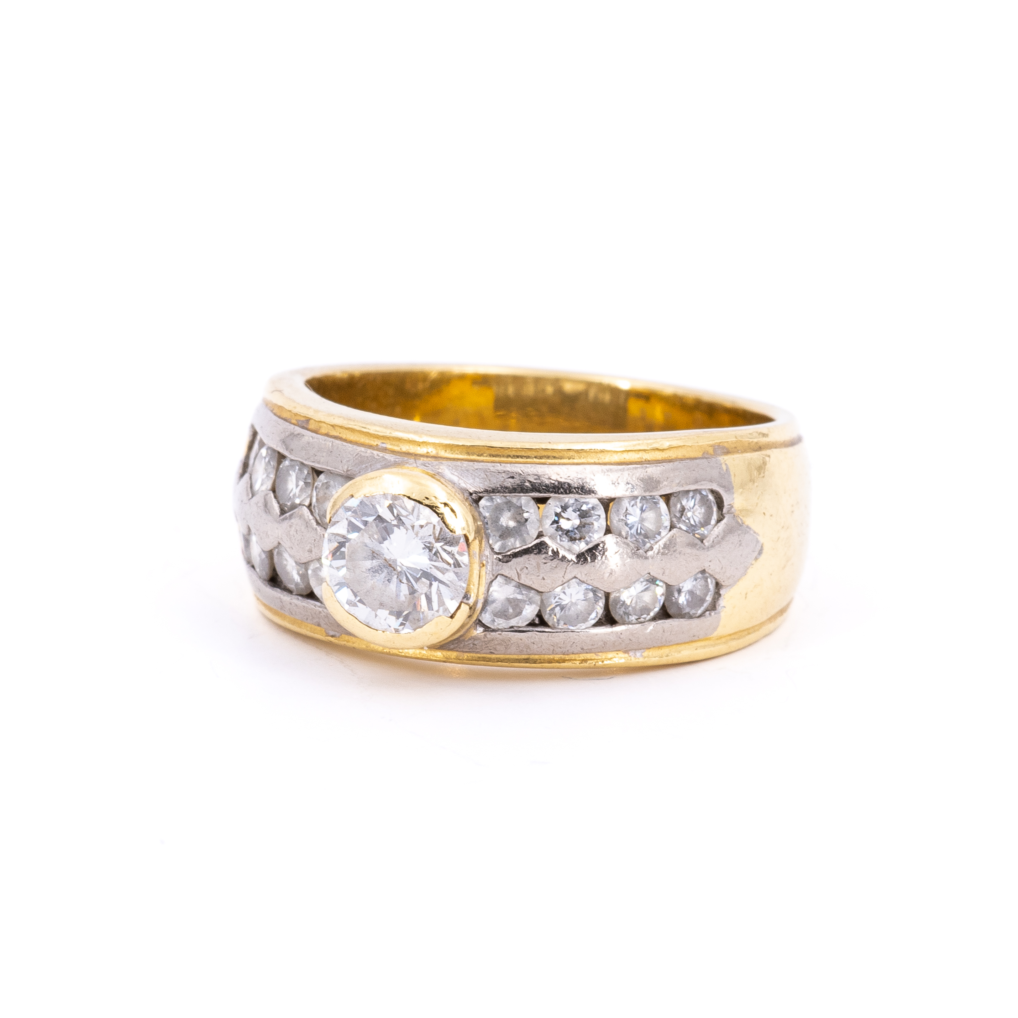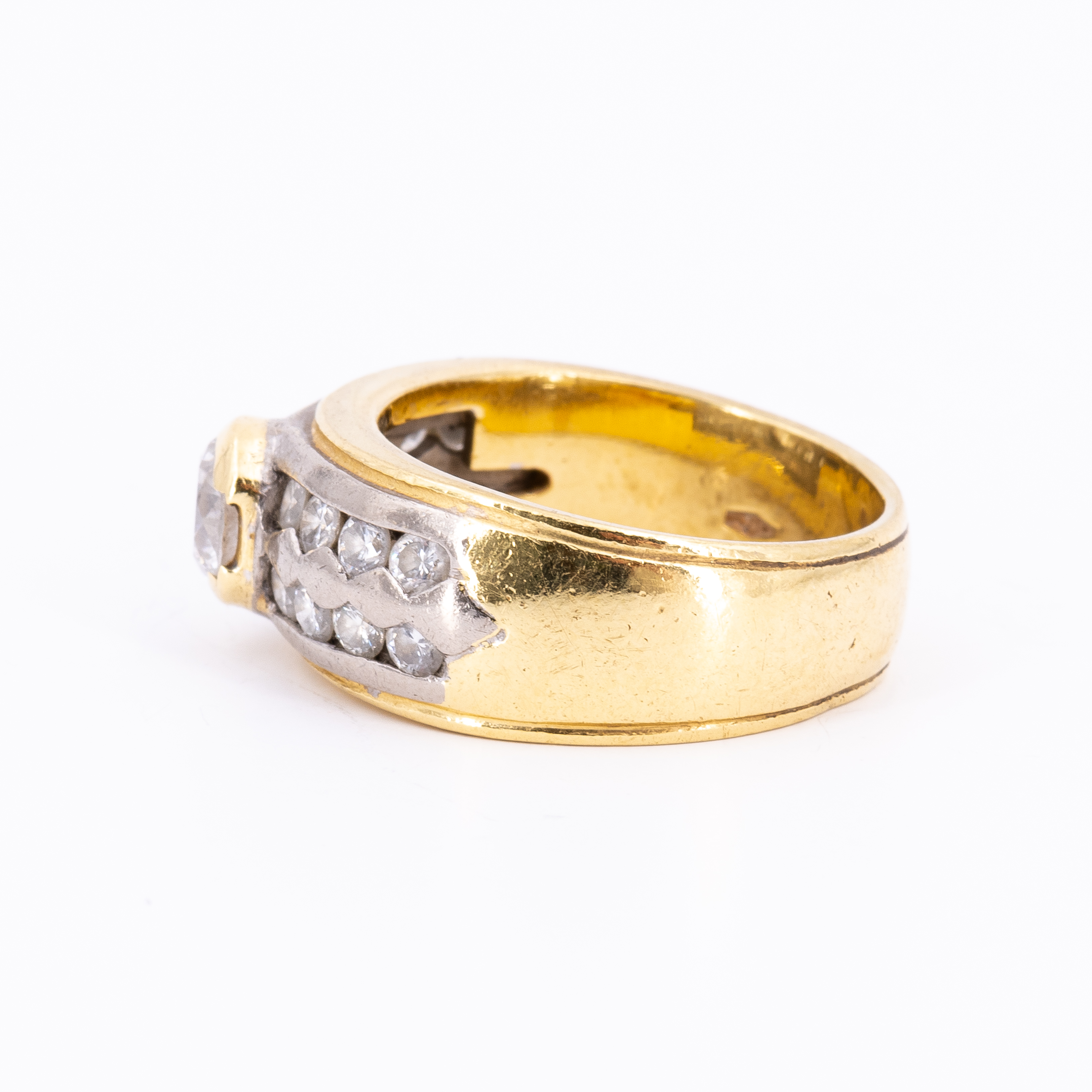 leichten Dellen. Zentraler Brillant mit Riss an der Tafel.