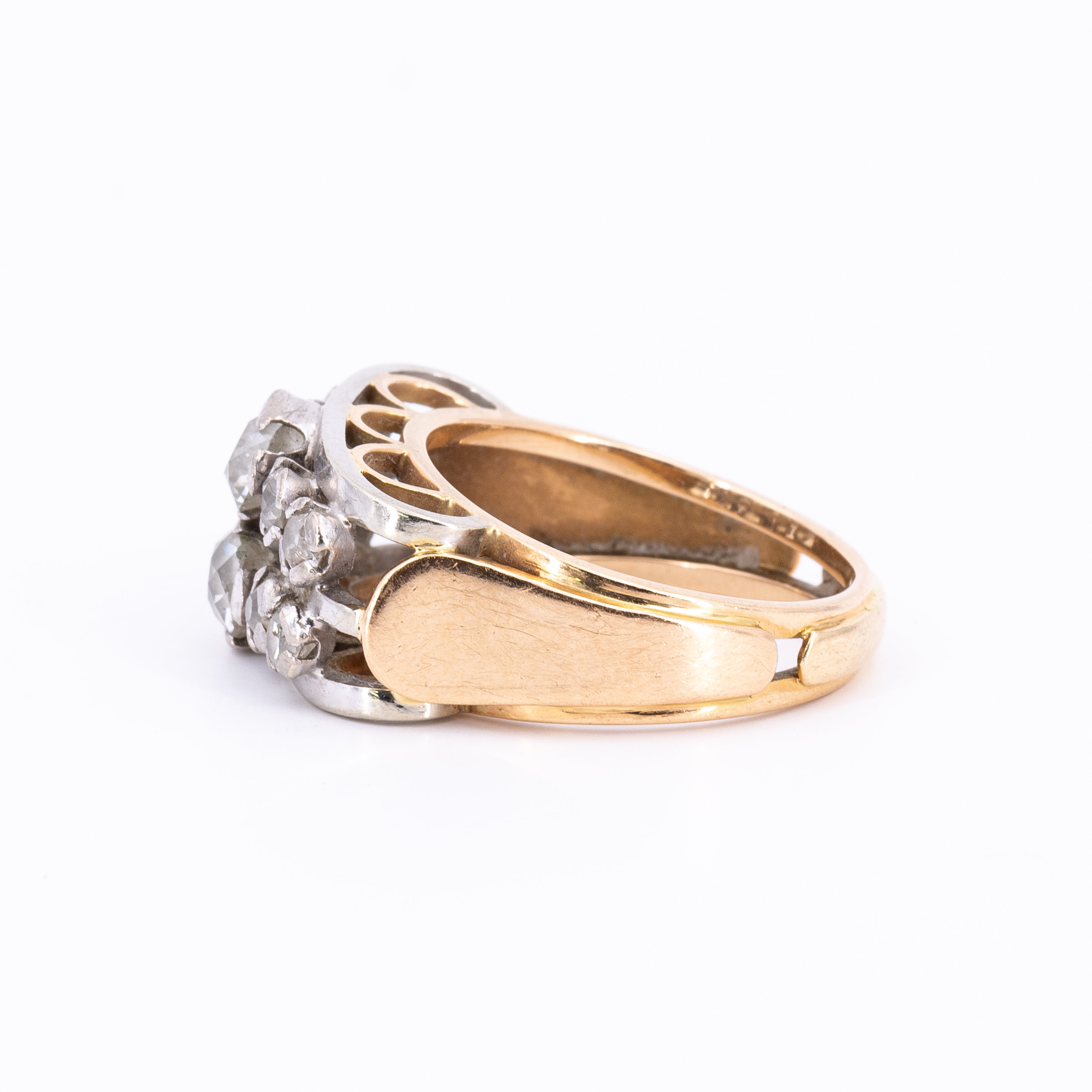 Material: 585/- Rotgold, Punze und Platin, getestet.