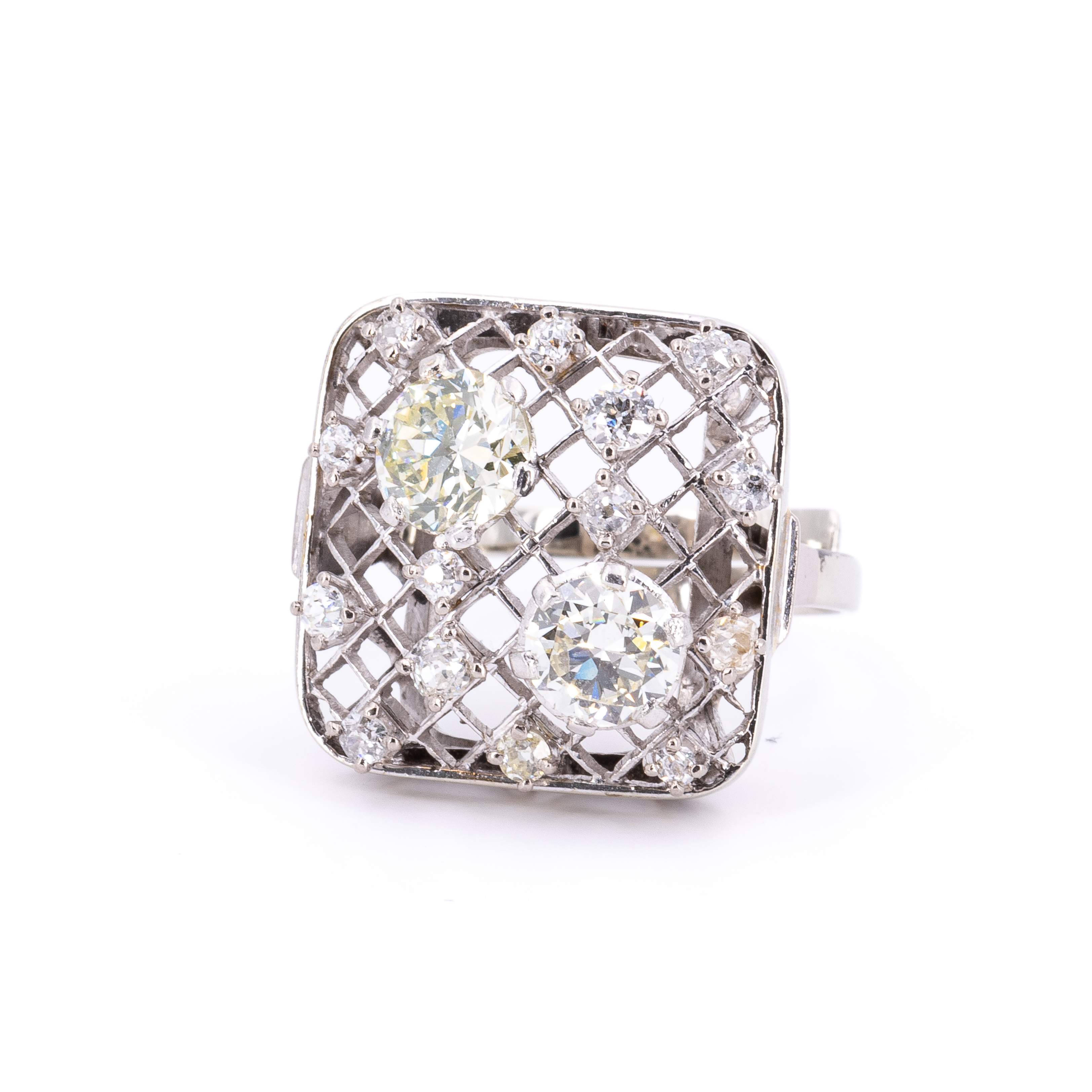 Diamanten: 16 Diamanten im Brillant- und Achtkant-Schliff zus. ca. 2,1 ct.