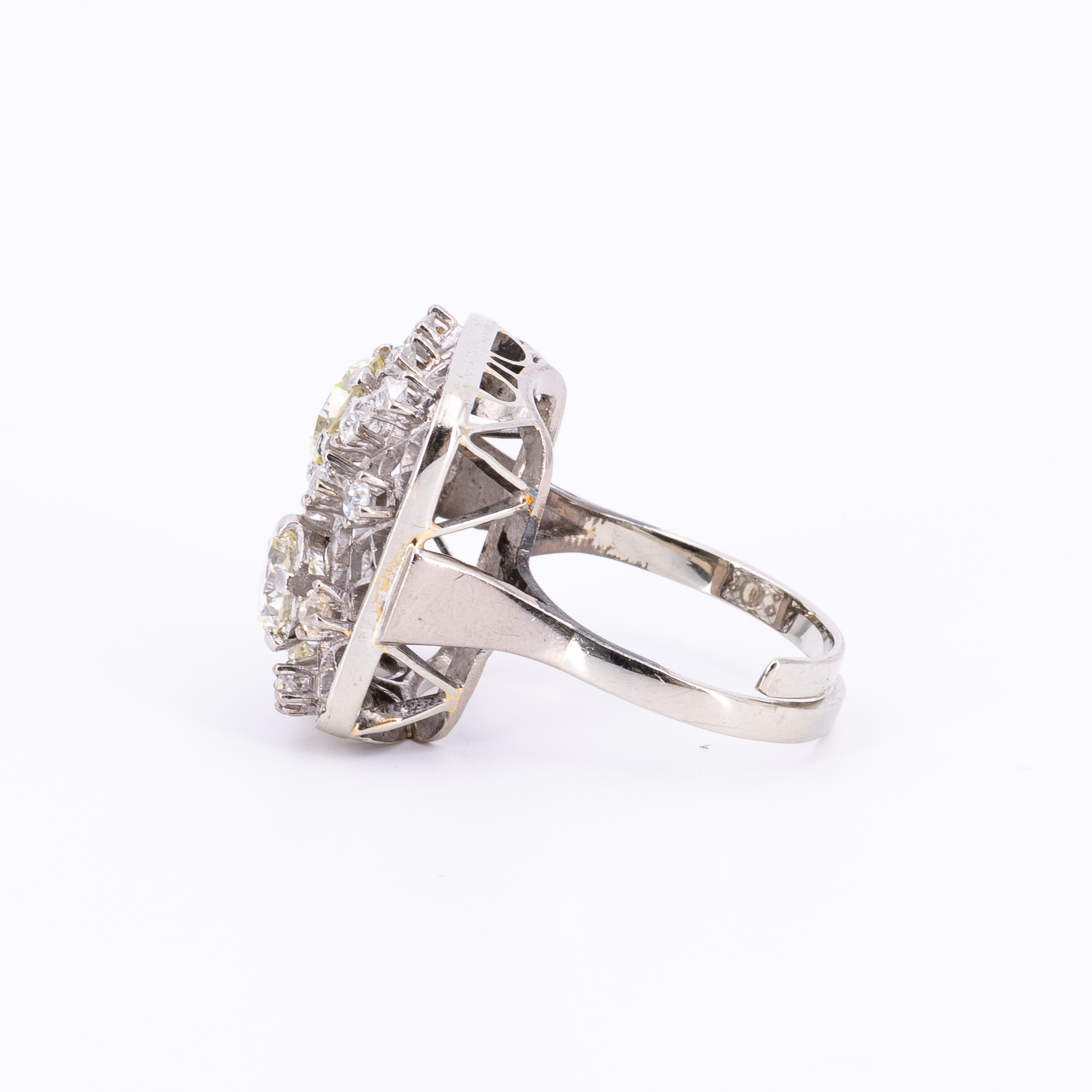 Diamanten bestoßen. Ringschiene wurde in der Größe verändert.