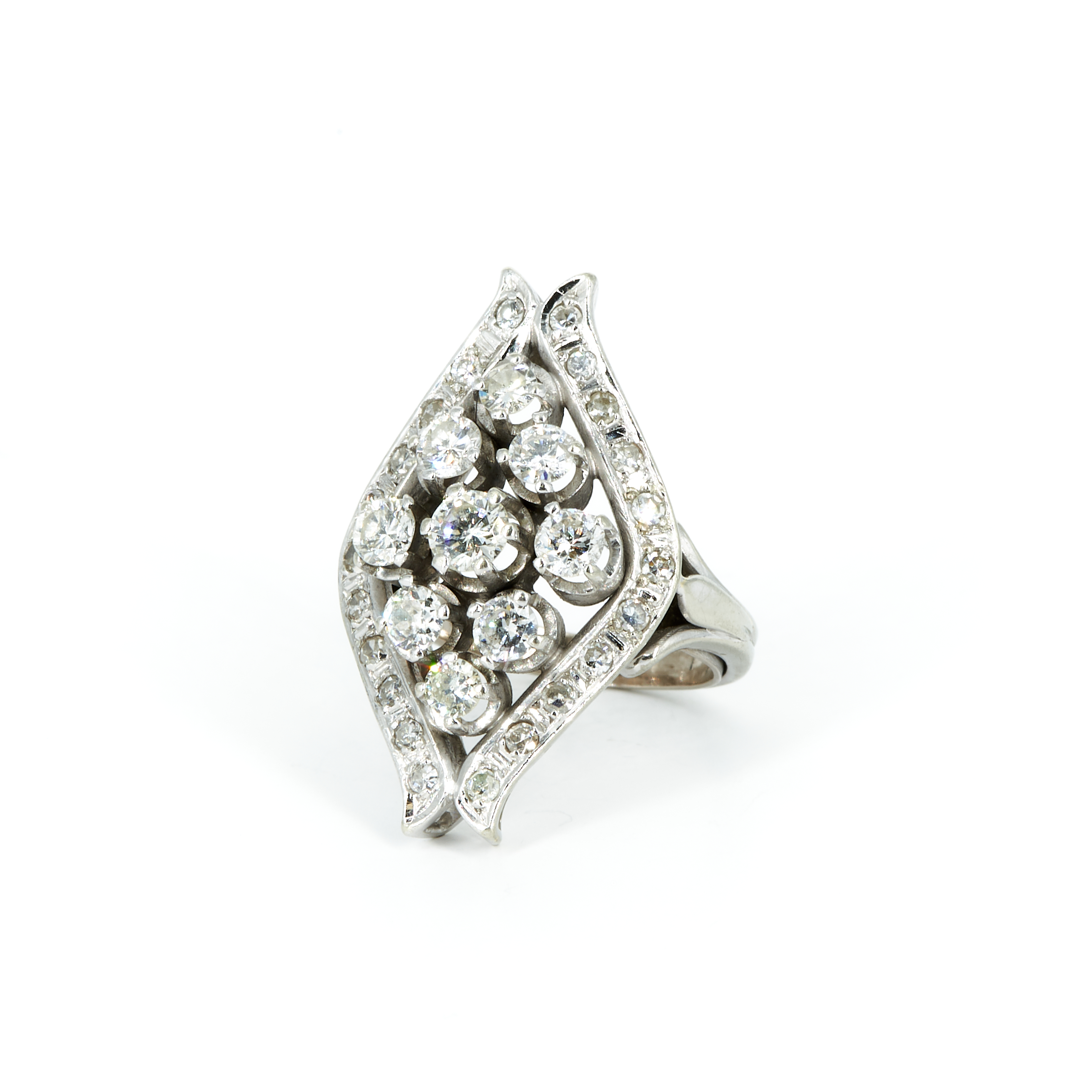 Diamanten: 31 Diamanten im Brillant- und Achtkant-Schliff zus. ca. 1,3 ct.