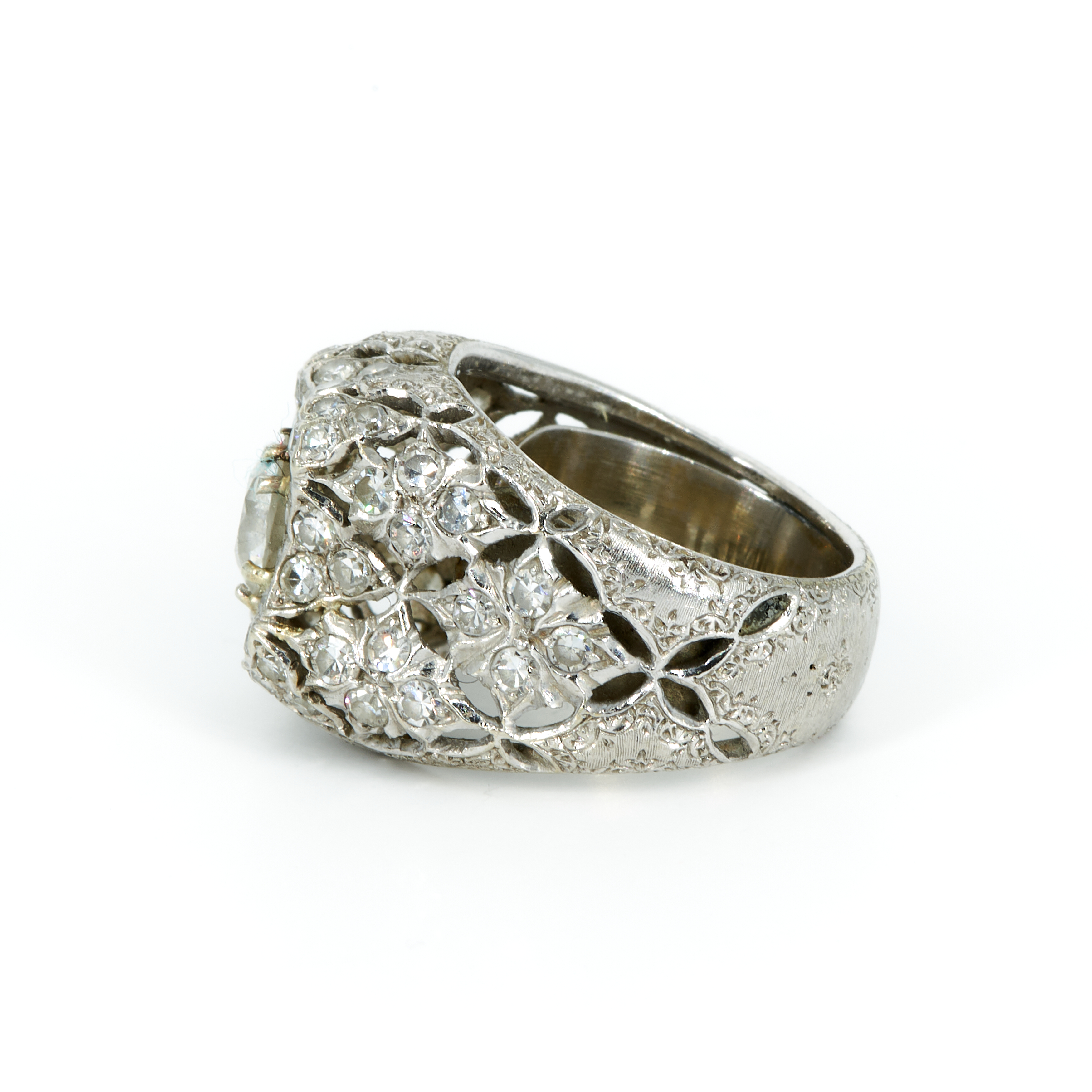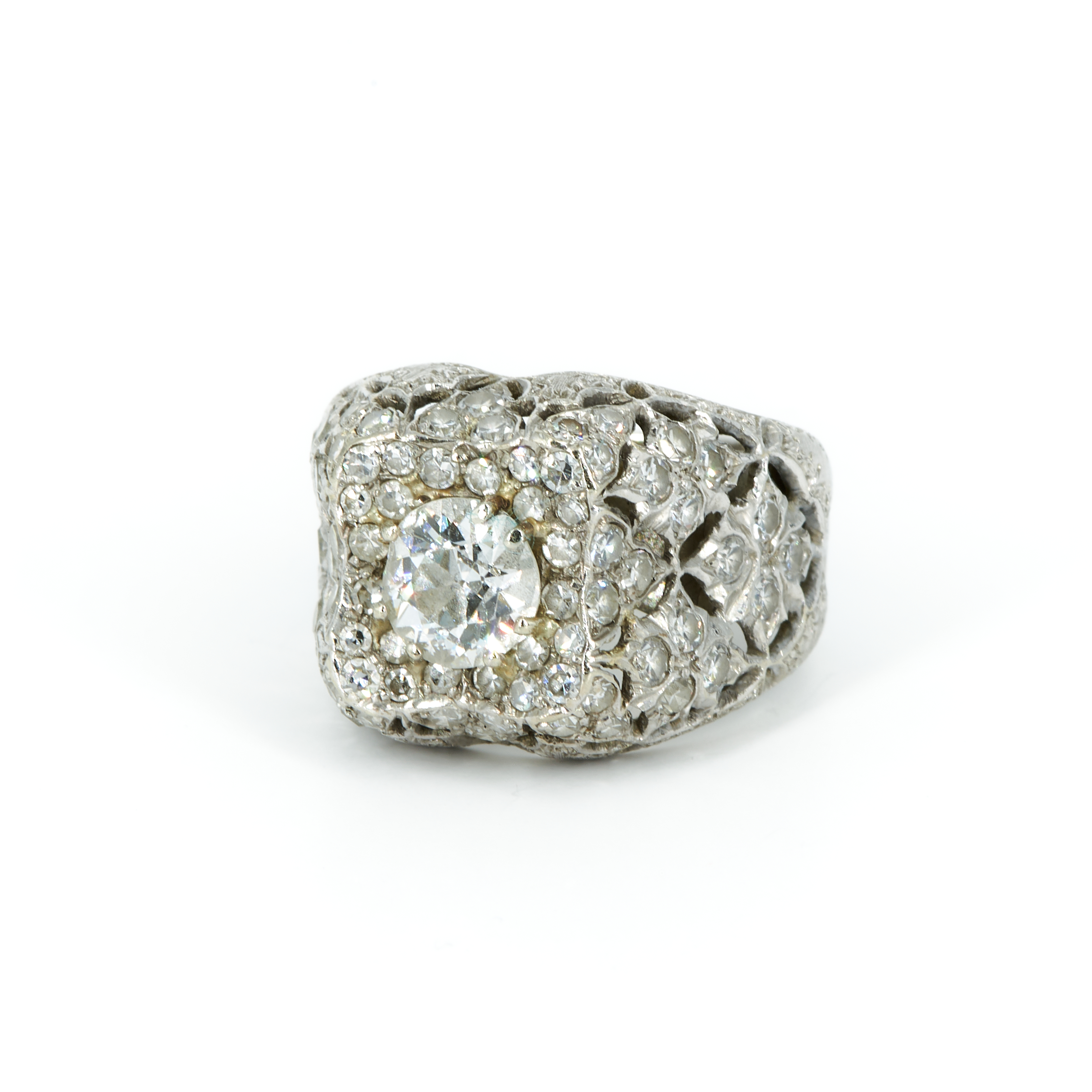 Diamanten: 1 Diamant im Alt-Schliff ca. 1,0 ct., G-H/SI, mehrere Naturals, 71 Diamanten im Achtkant-Schliff zus. ca. 1,4 ct.