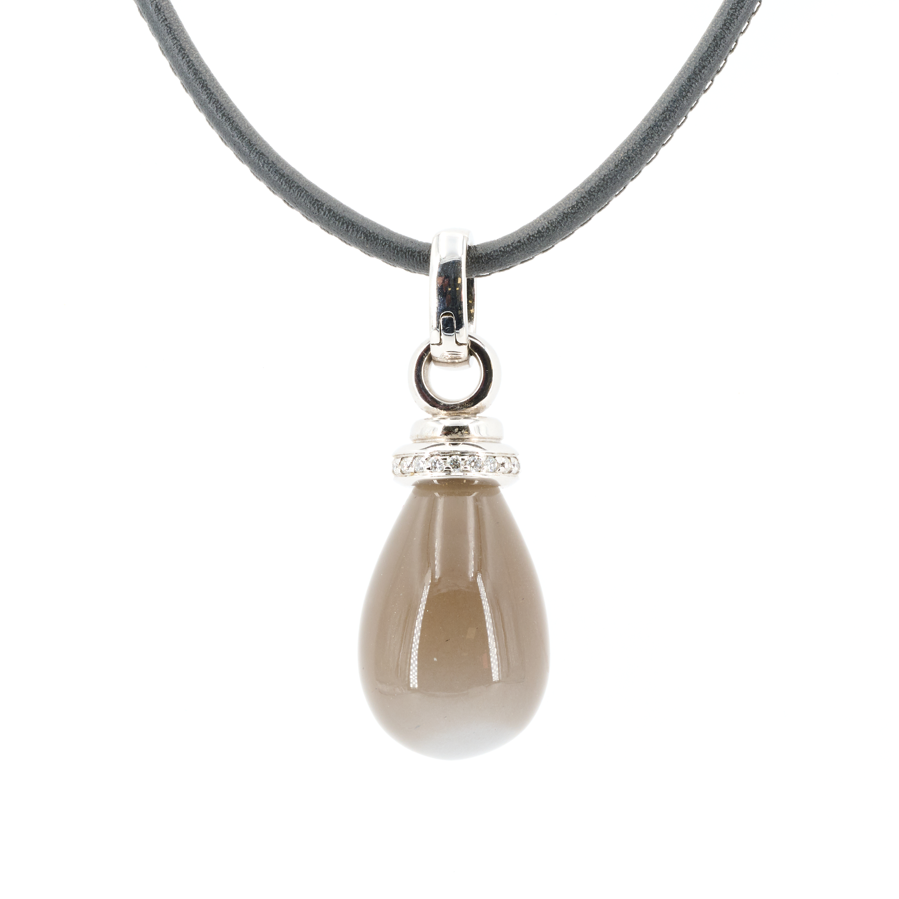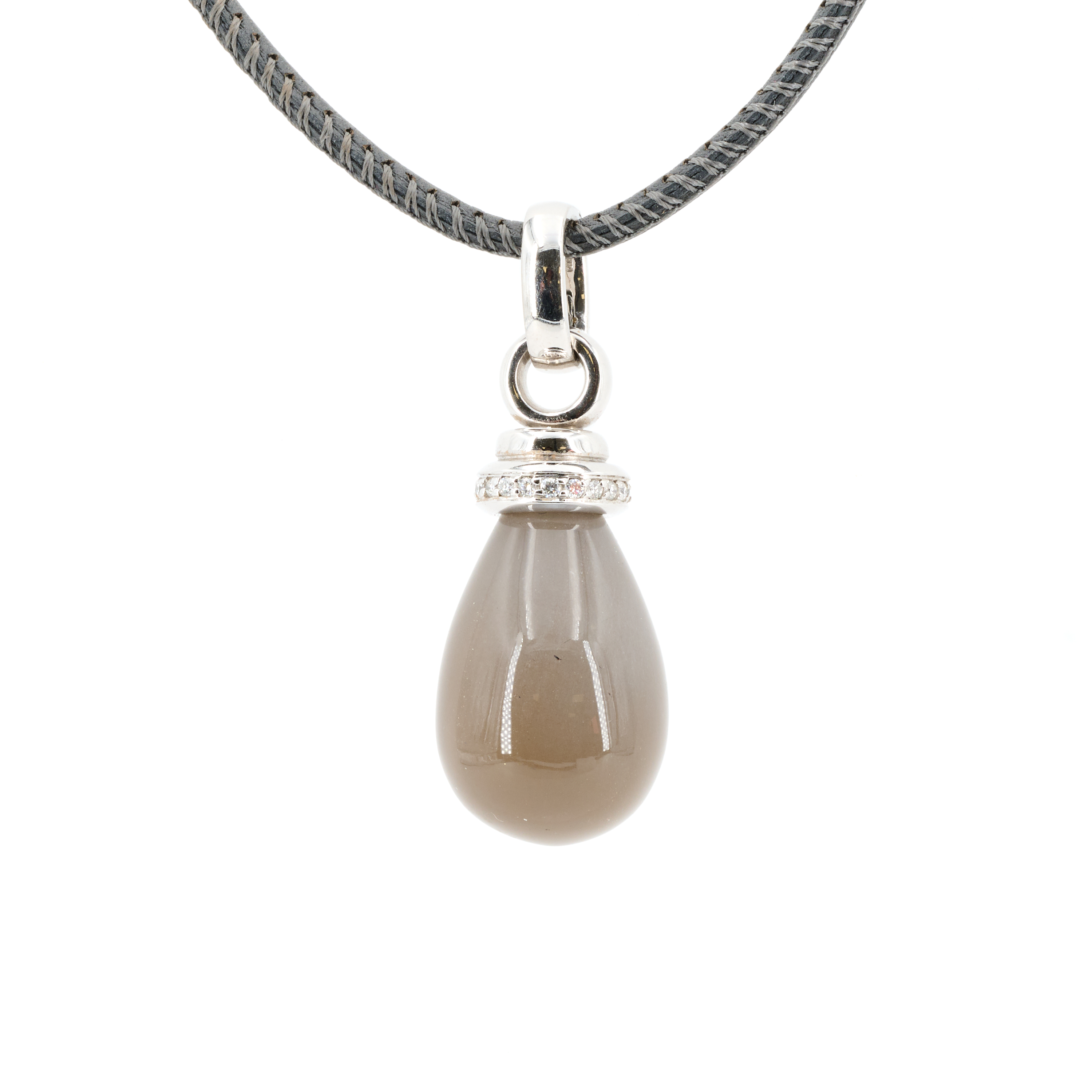 Edelsteine: 1 grauer Mondstein-Tropfen ca. 22,3 x 16,1 mm, leichte optische Erscheinung eines Katzenauges.