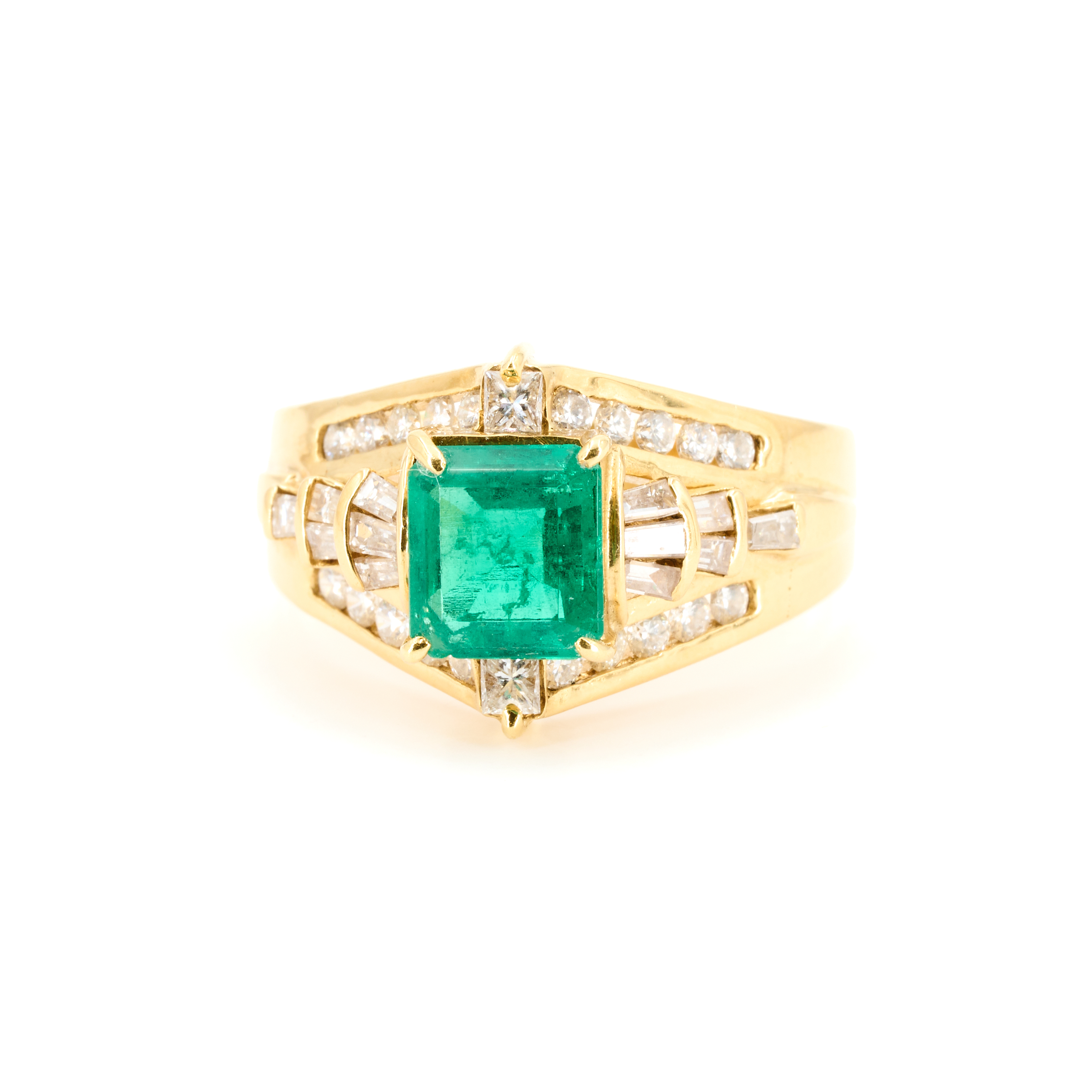 1 Smaragd im Emerald-Schliff ca. 1,2 ct., schöne intensive Farbe.
