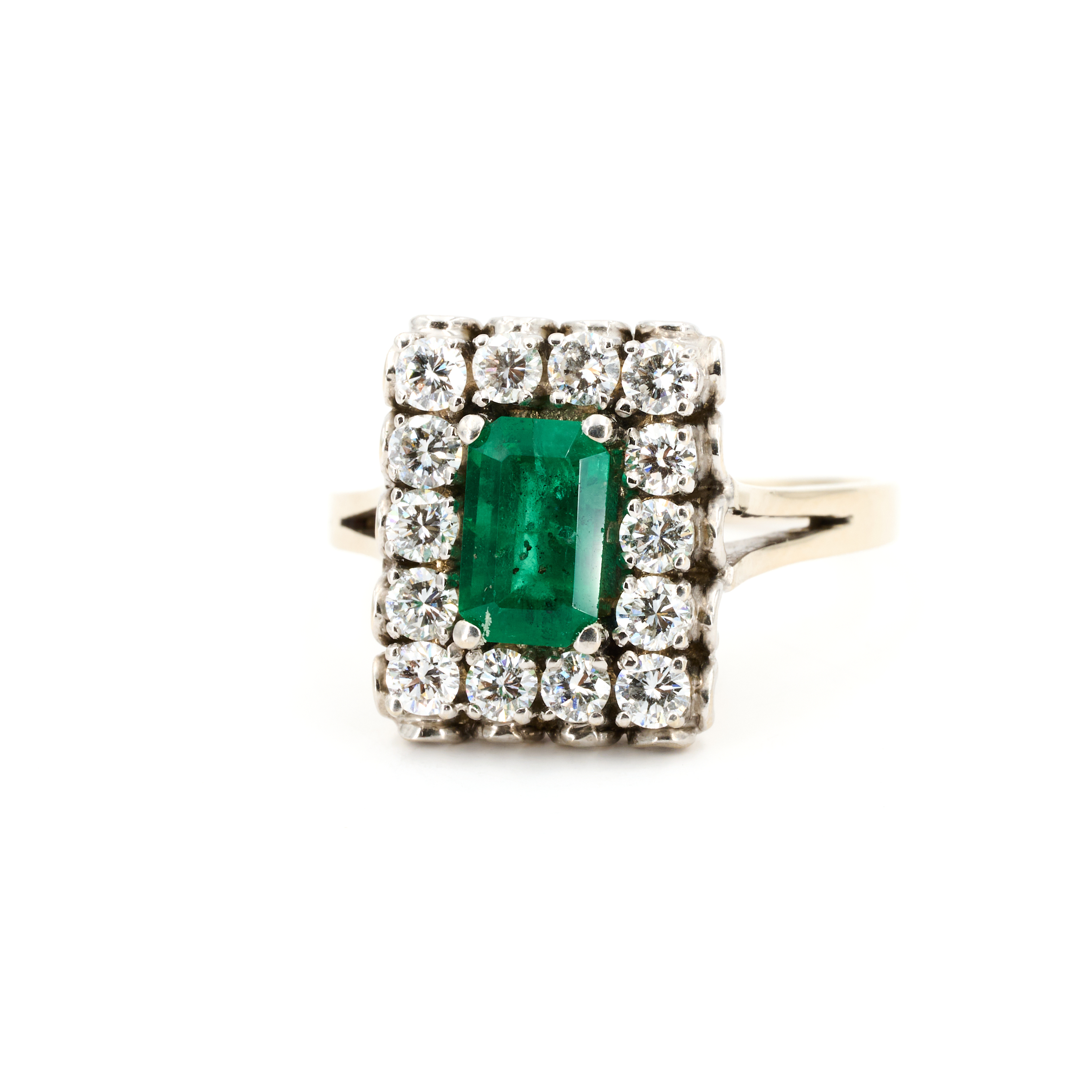 Edelsteine: 1 Smaragd im Emerald-Schliff ca. 0,8 ct.