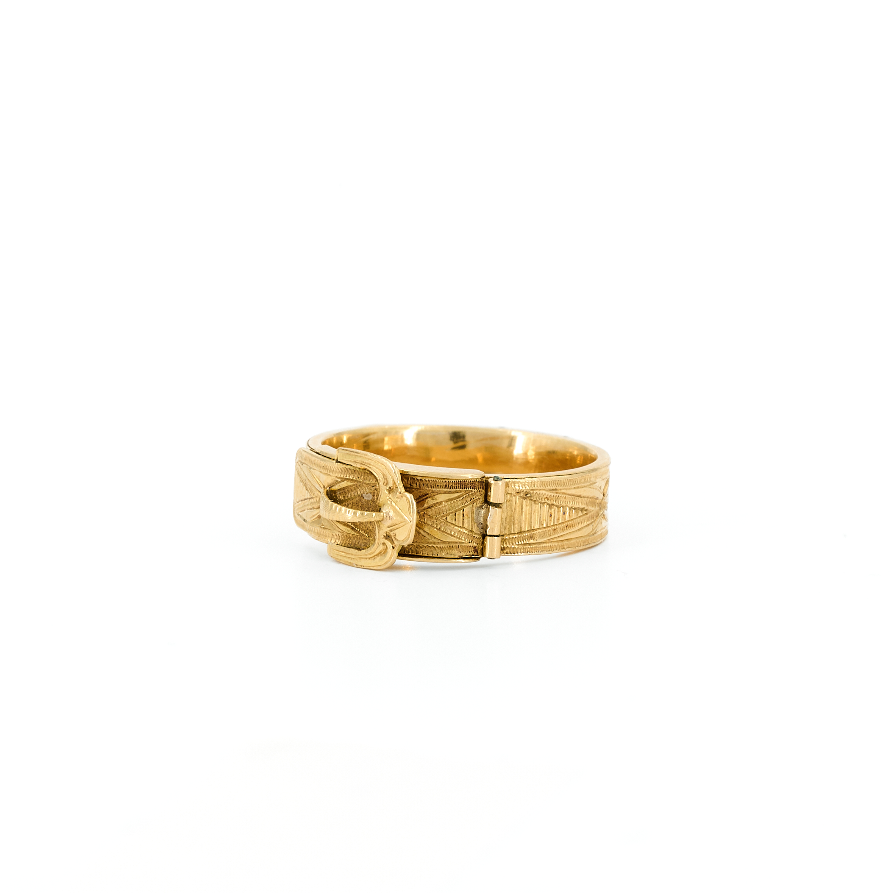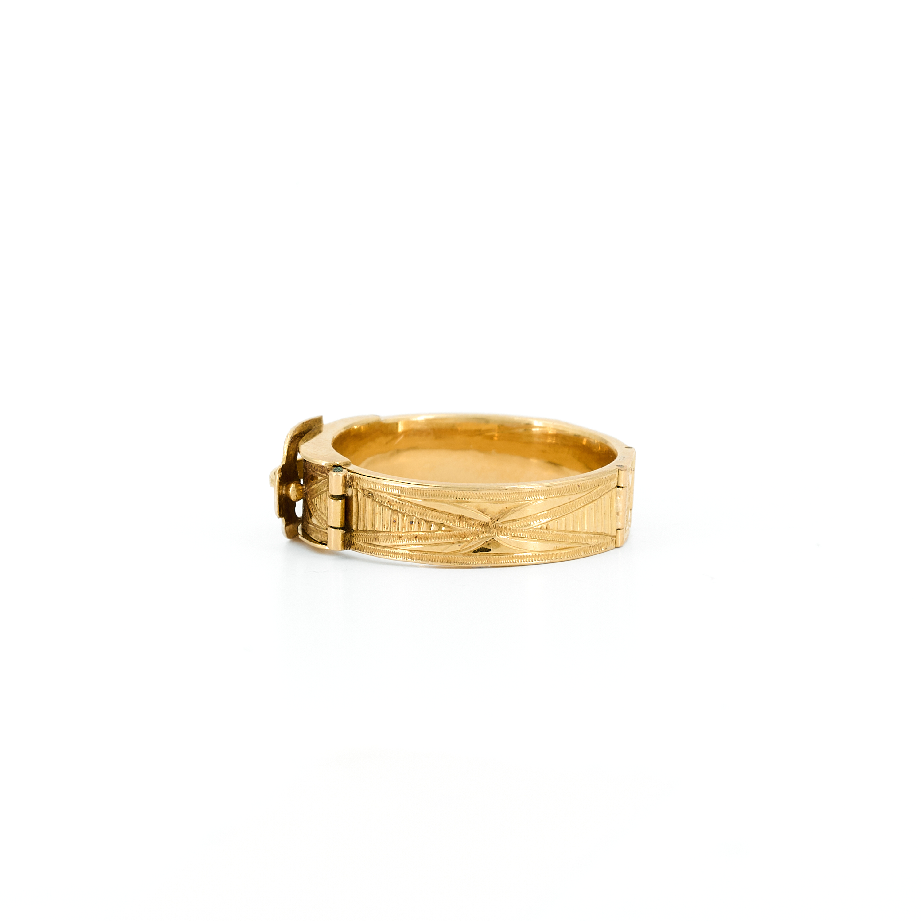 Beschreibung: Die Gürtelschnalle kann geöffnet werden. Ein sogenannter Gift-Ring, da im Inneren der