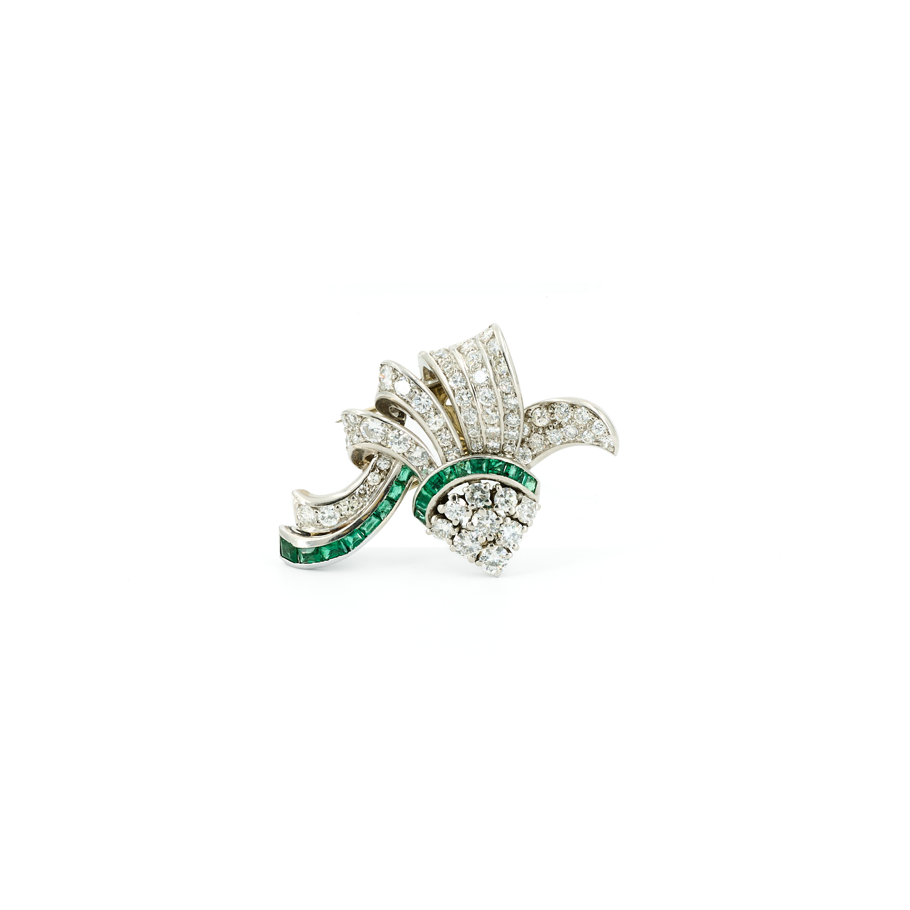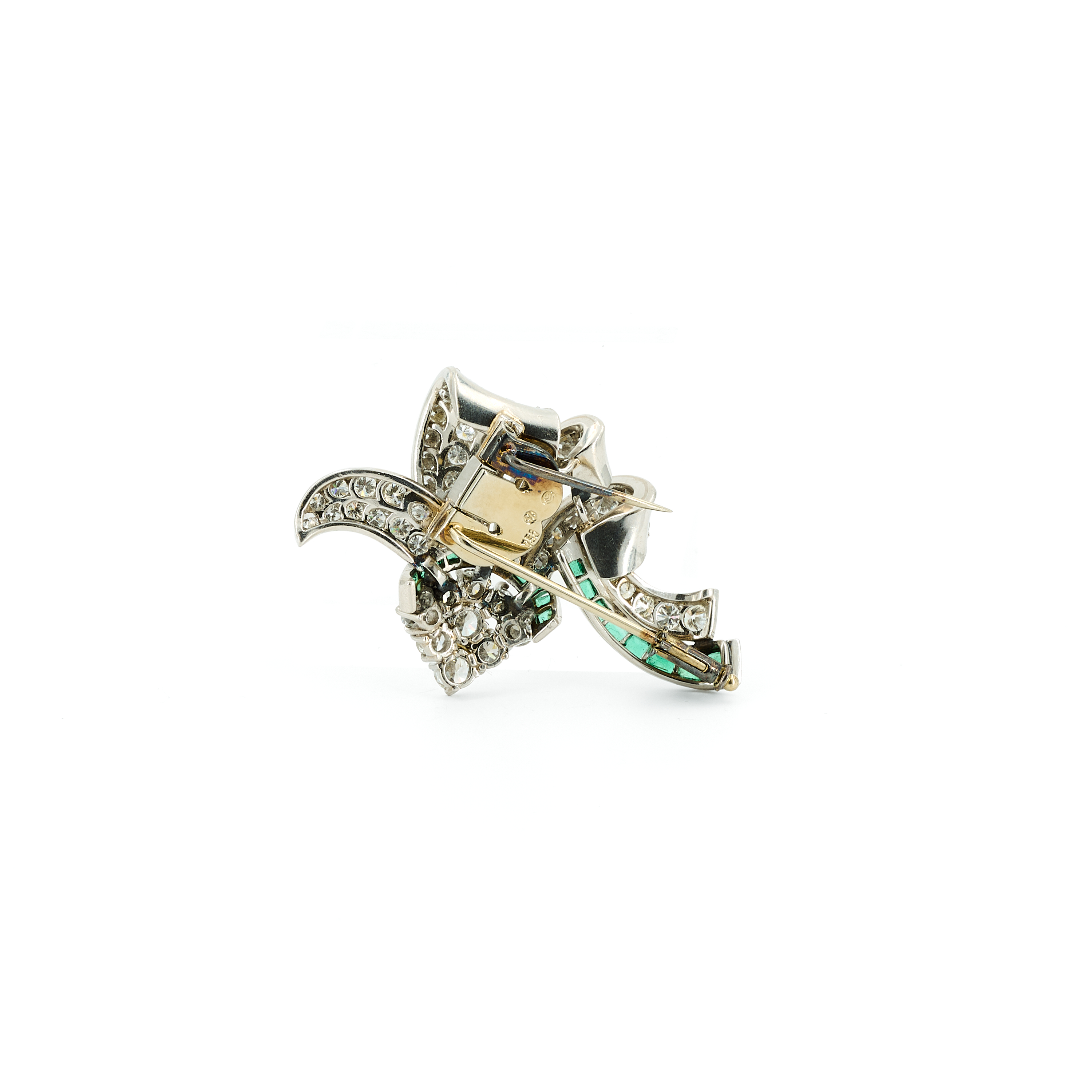 Kratzern am Gold. Smaragde sind an wenigen Stellen bestoßen. Rückseitig an Schließe ist