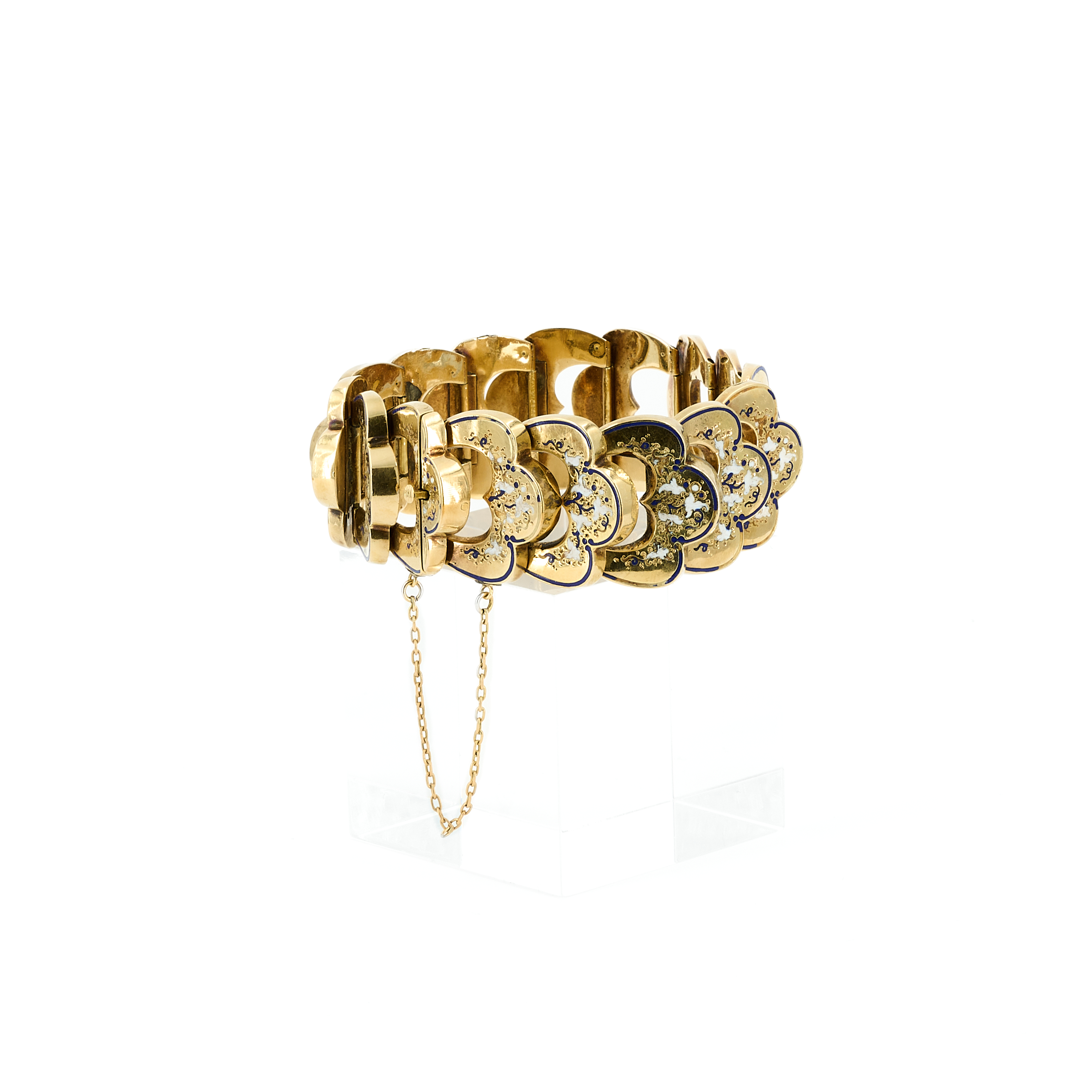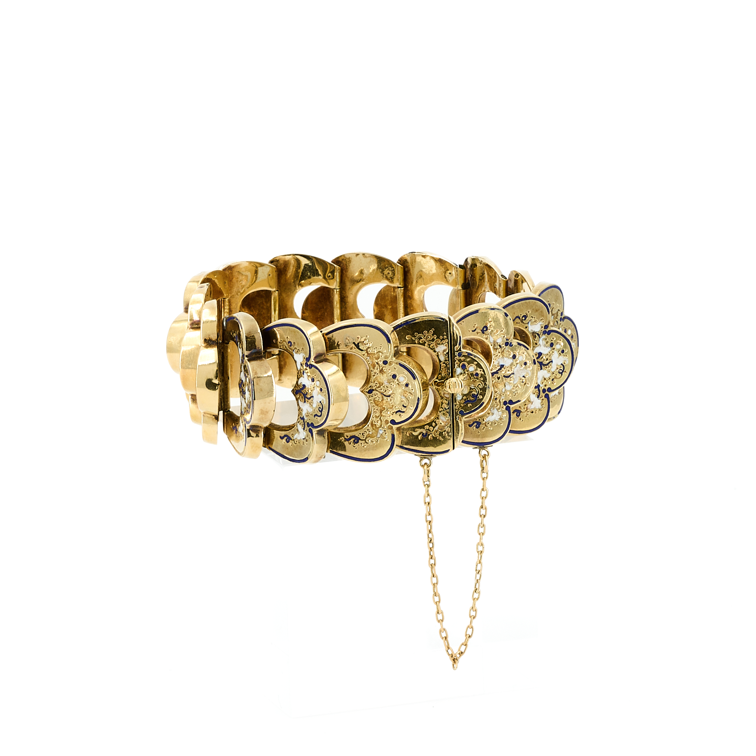 Material: 585/- Gelbgold, getestet, blaues und weißes Email.