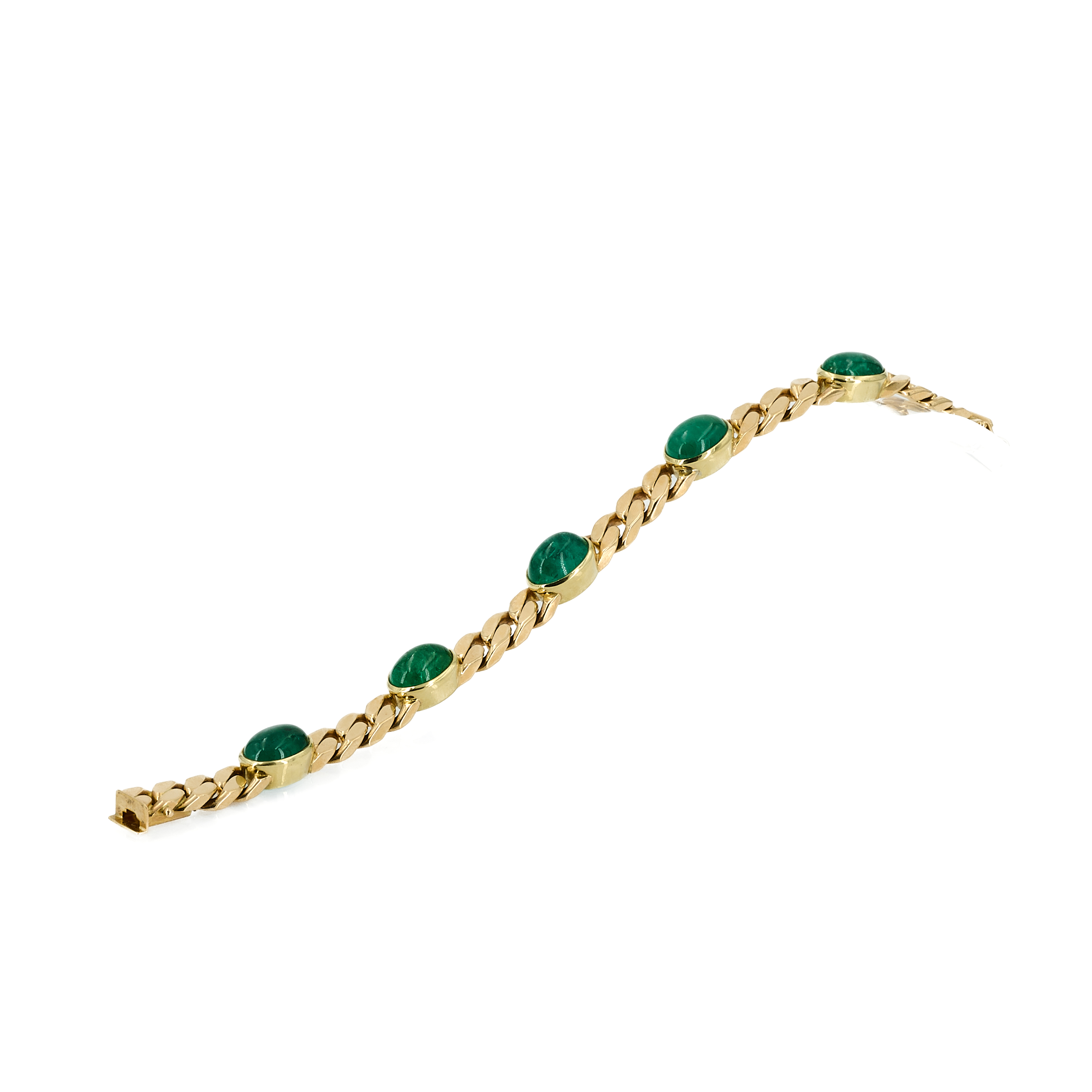 Edelsteine: 5 Smaragde im Cabochon-Schliff zus. ca. 21,5 ct.