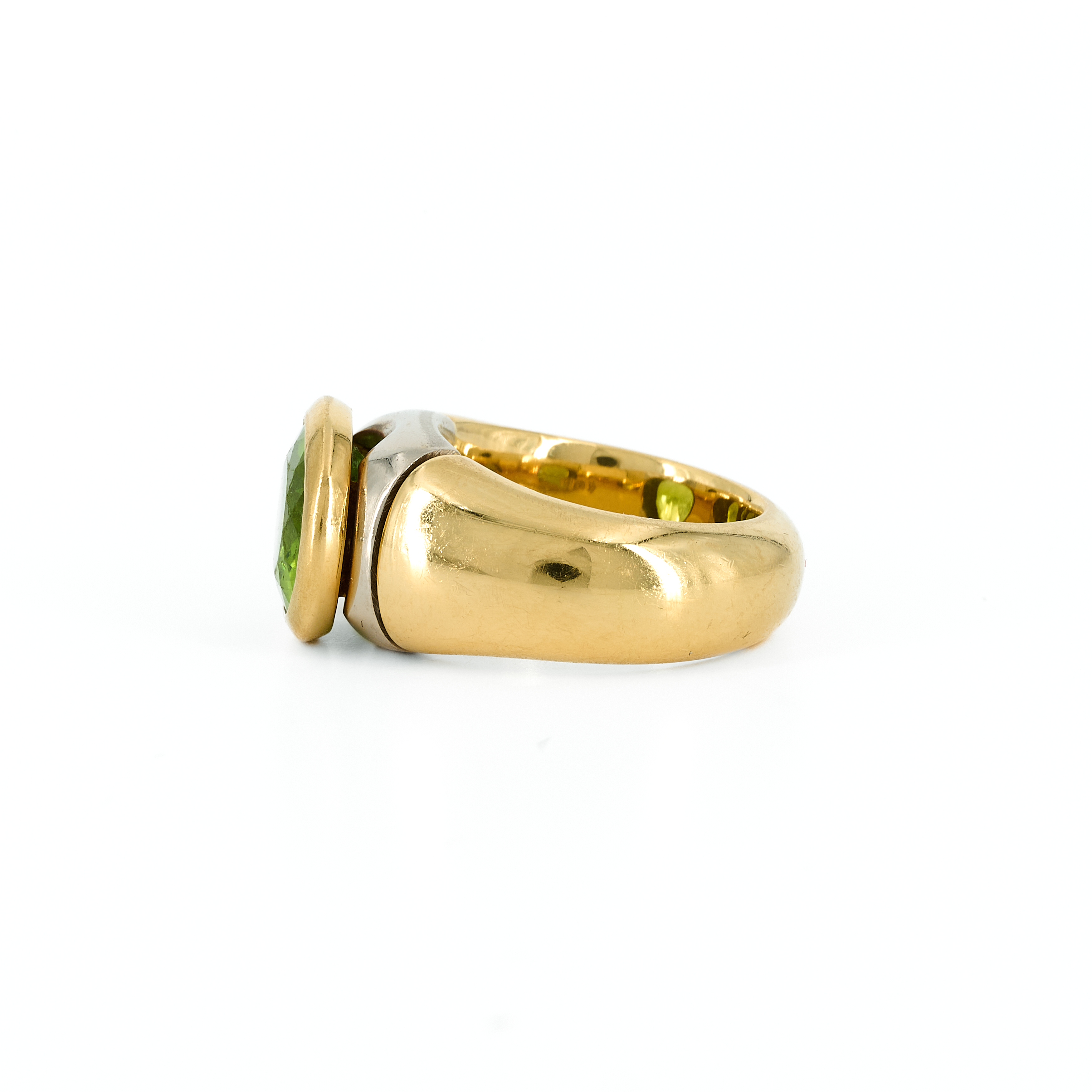 am Gold sichtbar, kleine Kerben. Peridot an den Facettenkanten deutlich beschlagen und