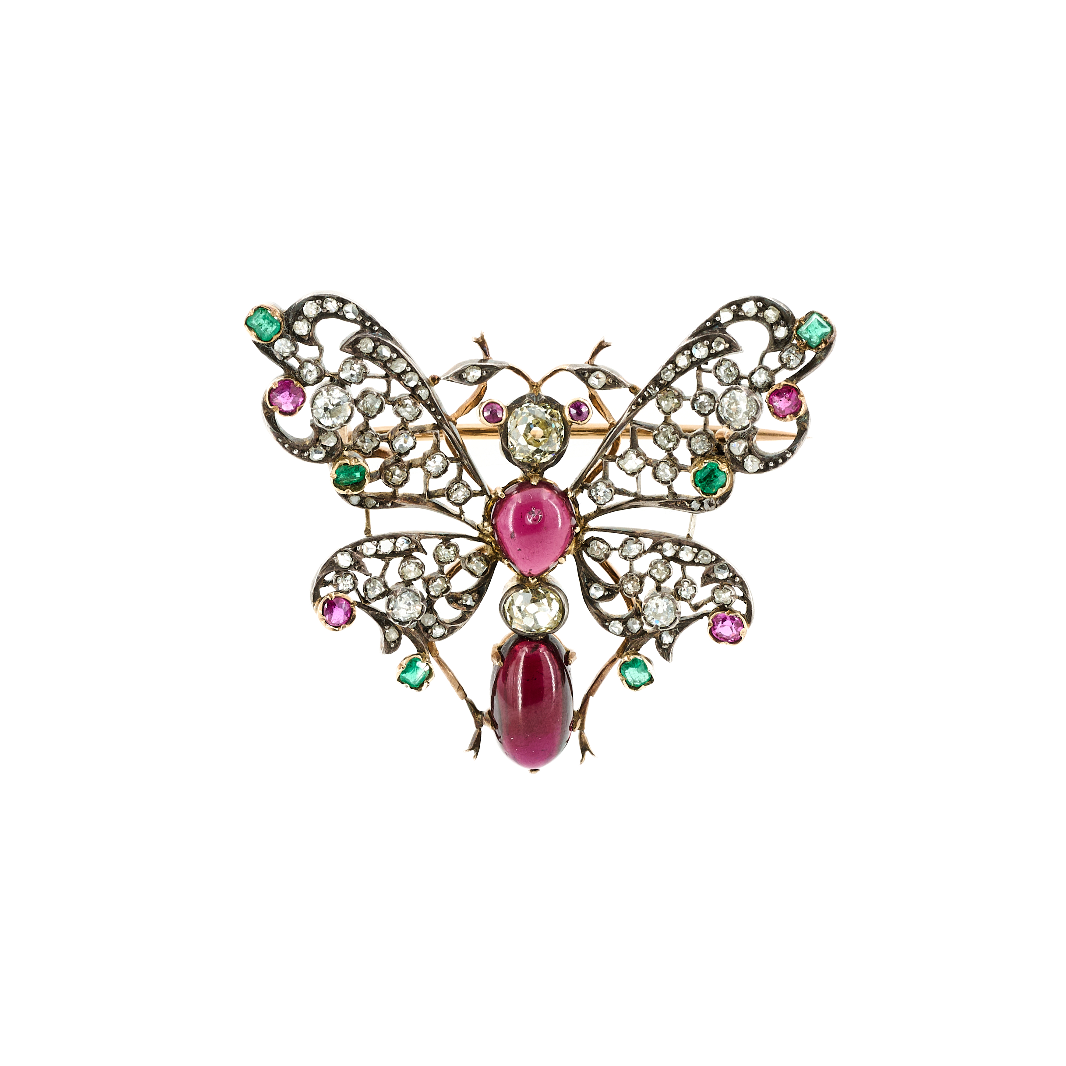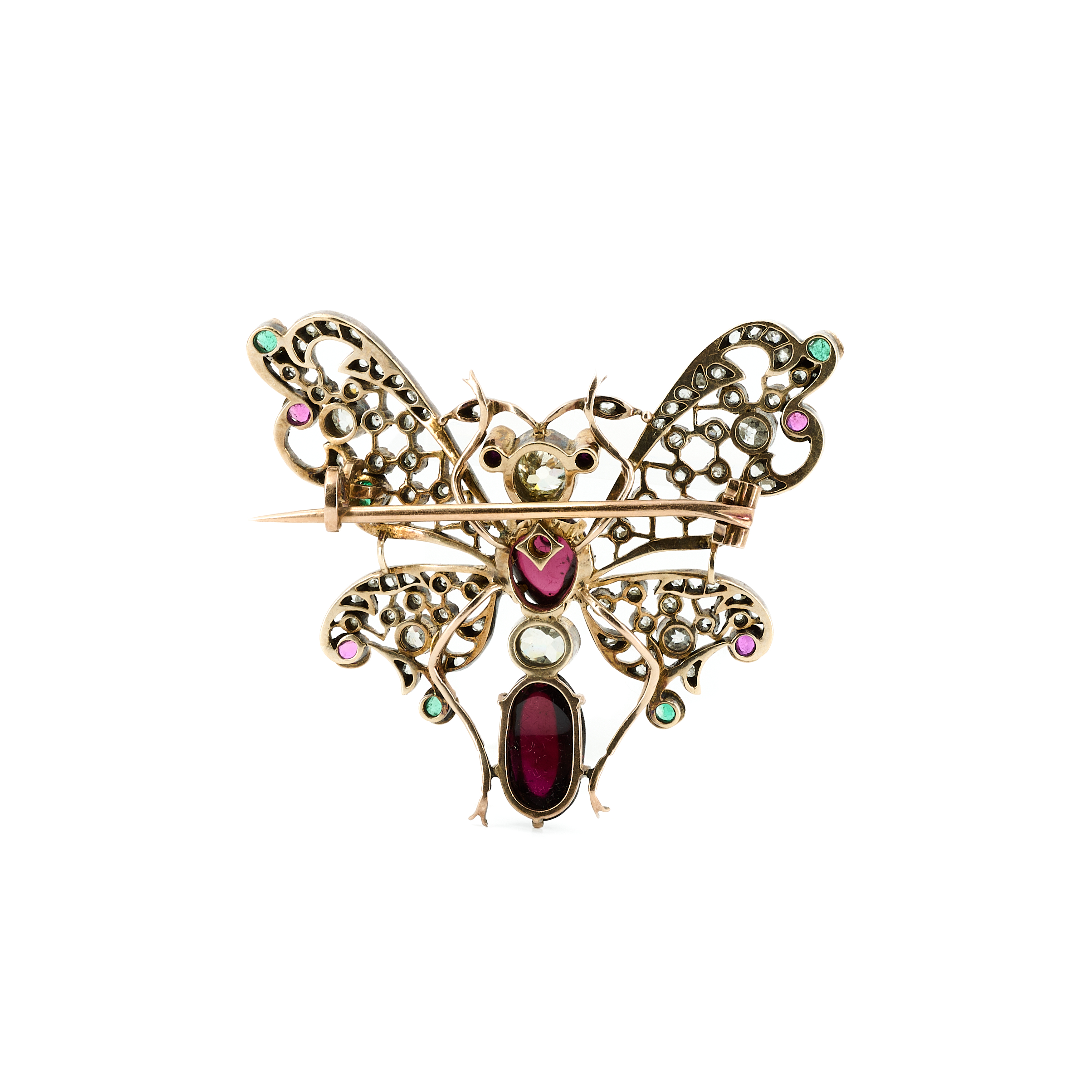 SCHMETTERLING-FARBSTEIN-DIAMANT-BROSCHE.