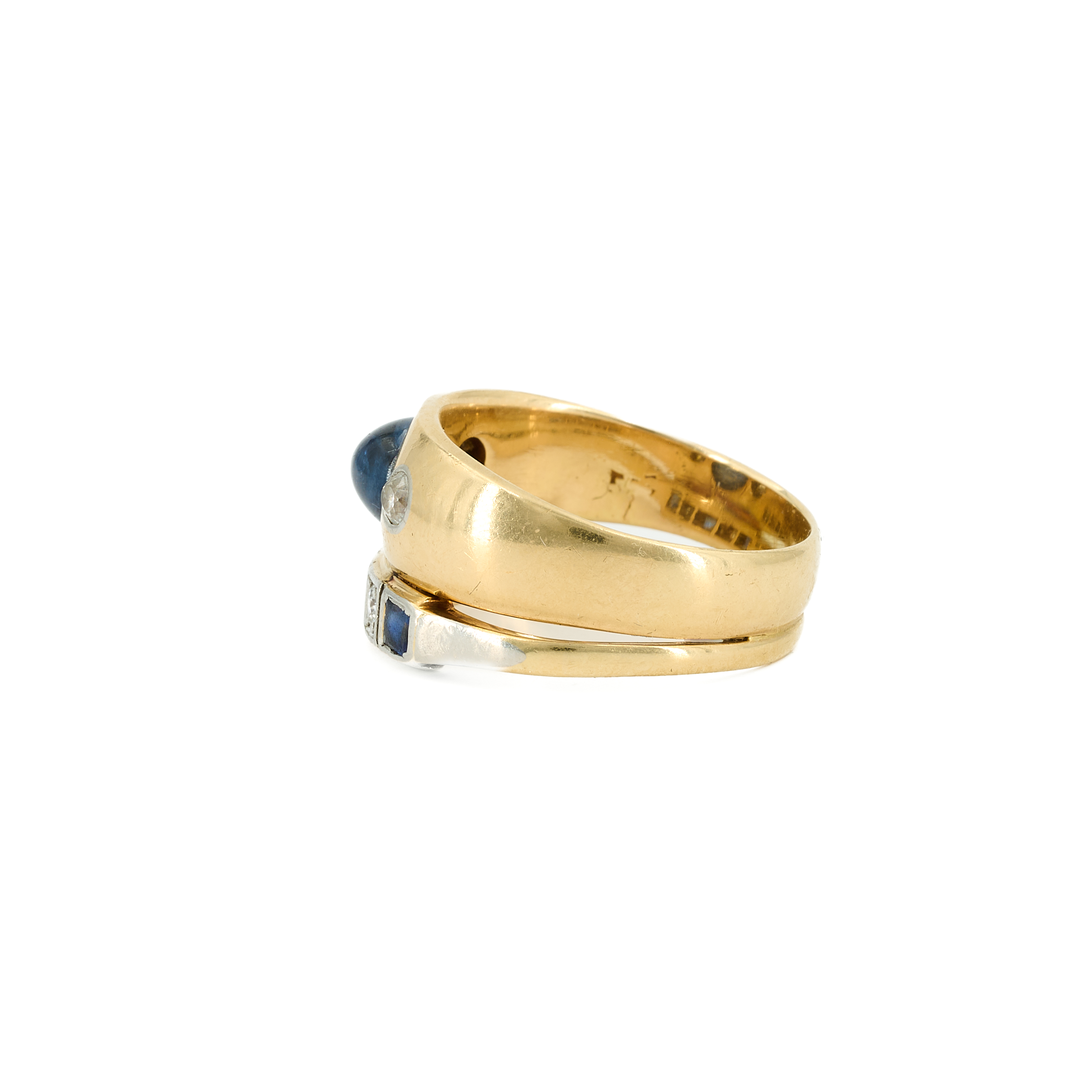 Edelsteine: 4 Saphire im Karree- und Cabochon-Schliff zus. ca. 1,6 ct.