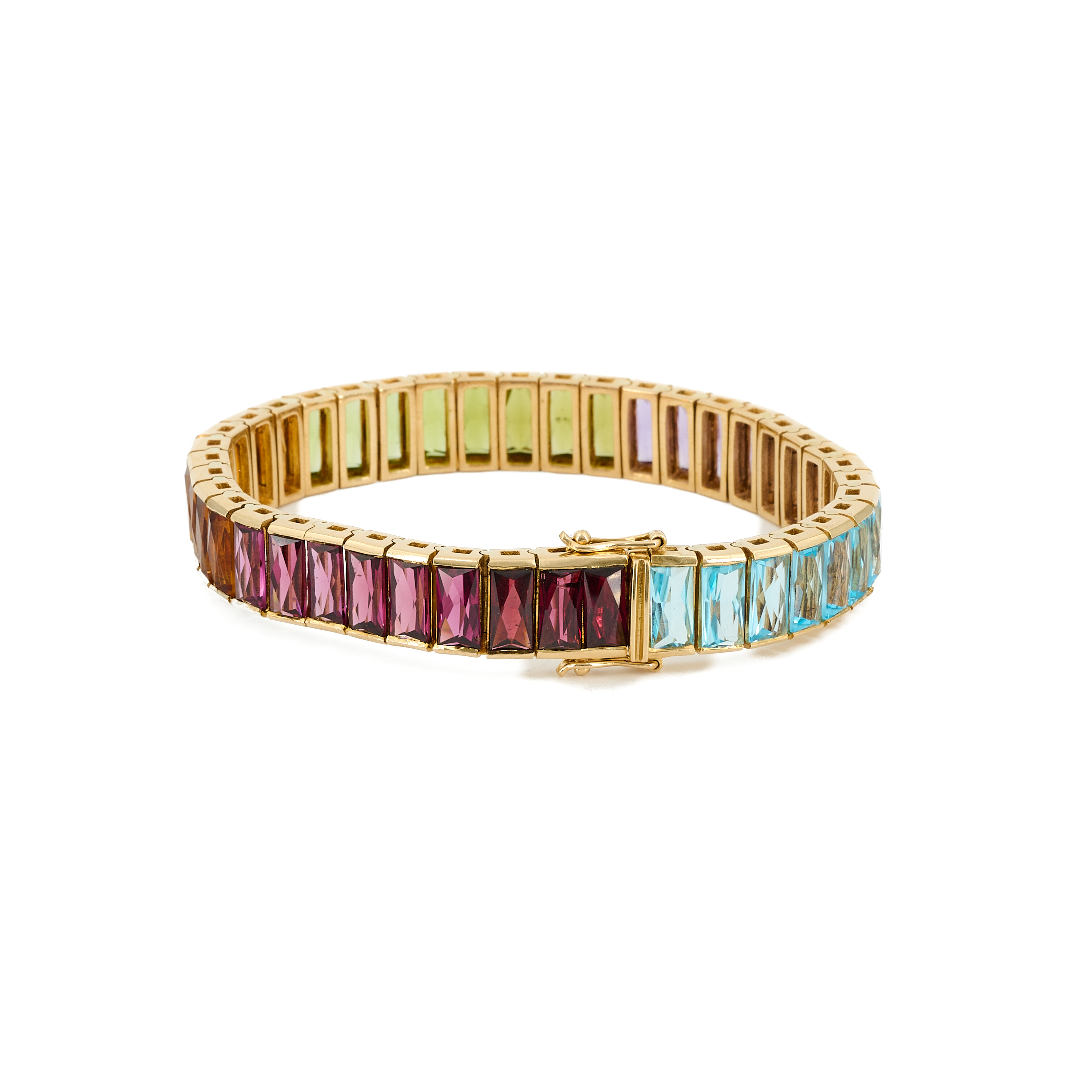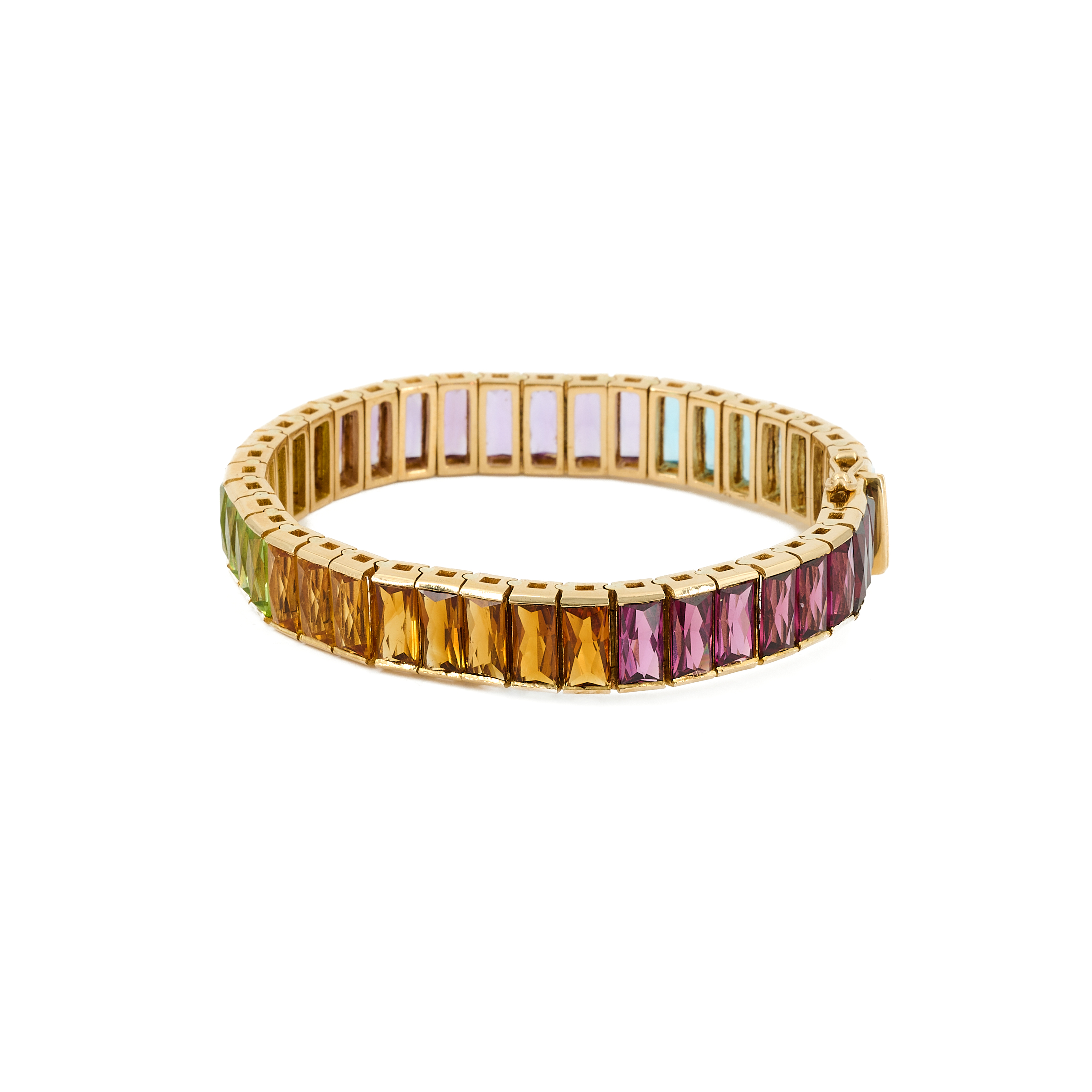 Edelsteine: 41 Farbstein-Karrees, wohl Peridot, Citrin, Turmalin, Amethyst, Topas ca. 7,8 x 4,1 mm.