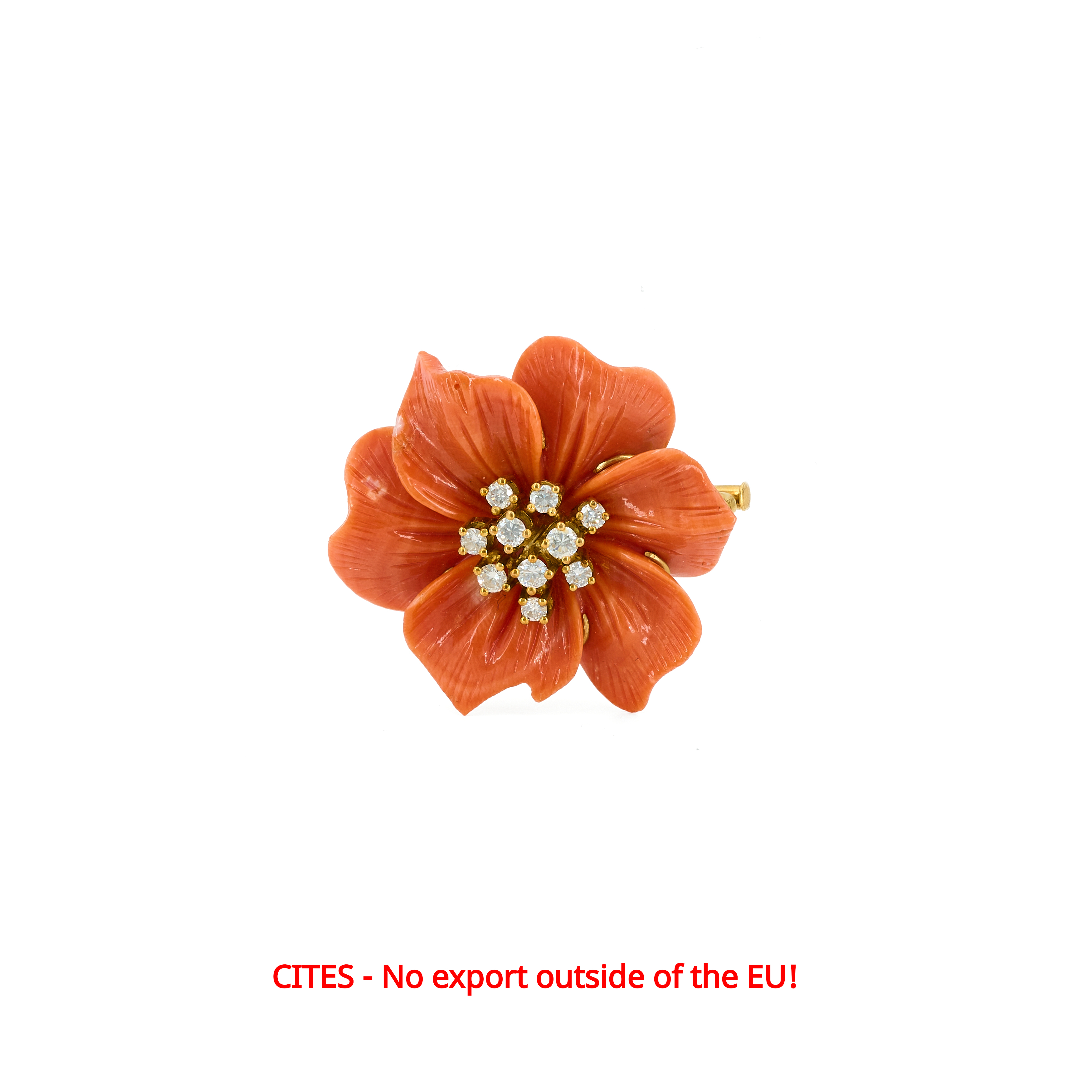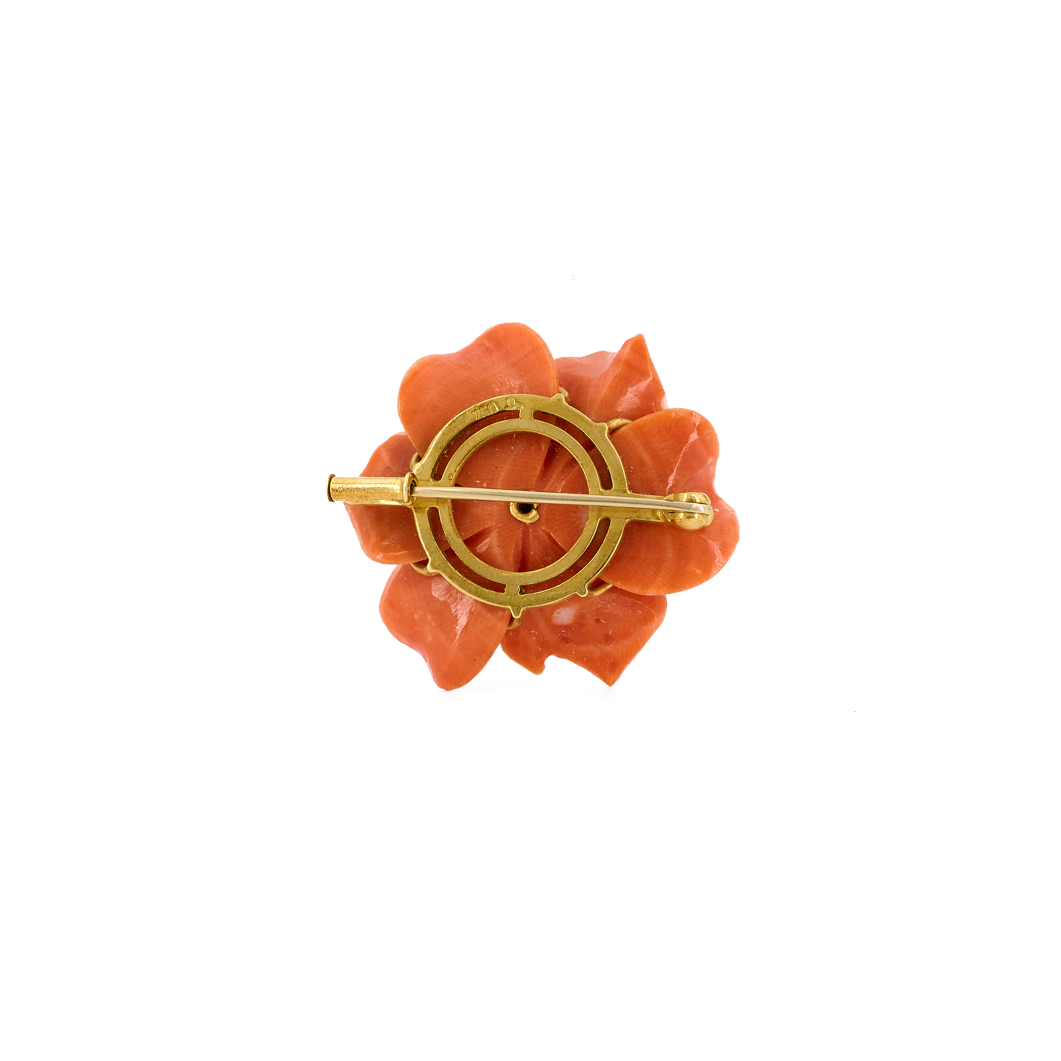 Beschreibung: Aufwendig-geschnitzte, florale Blumen-Brosche. Juwelierpunze.