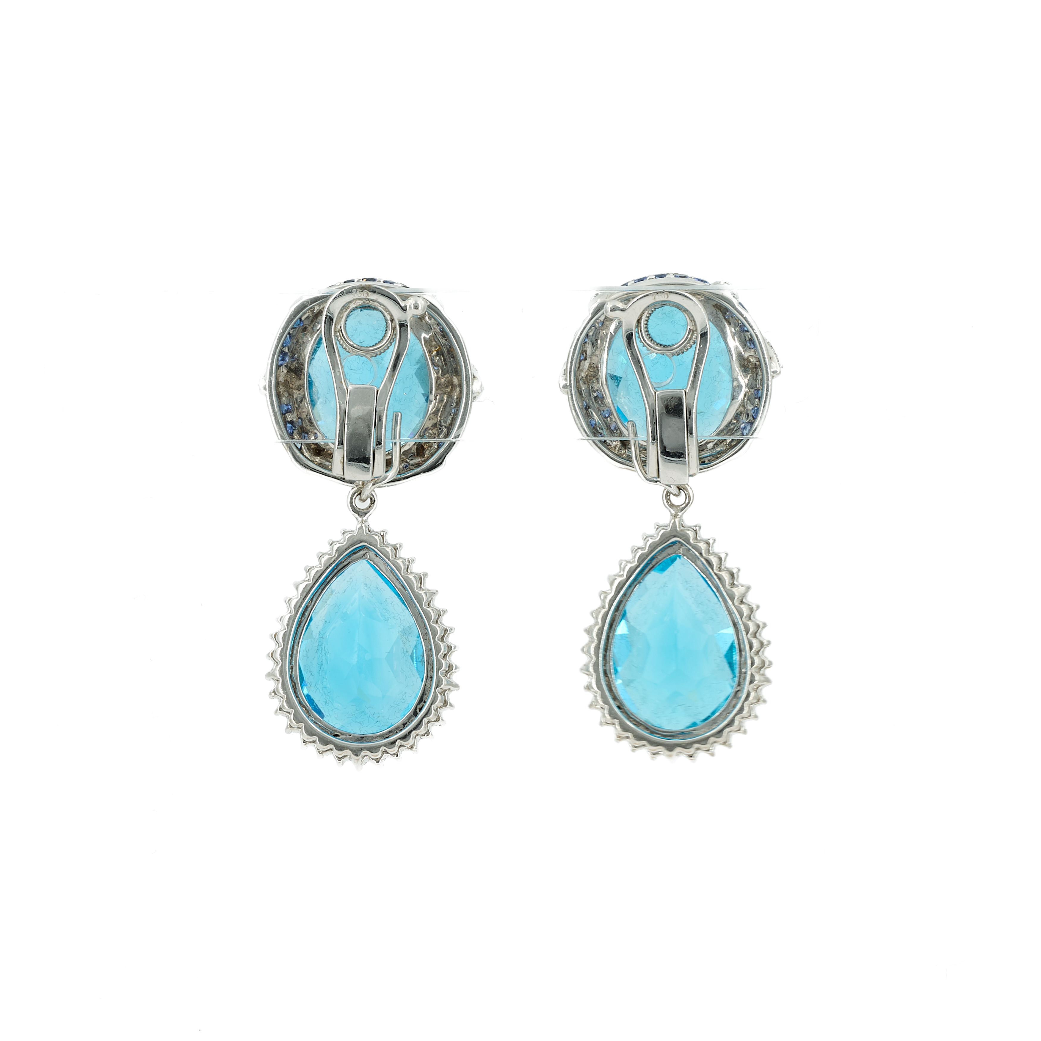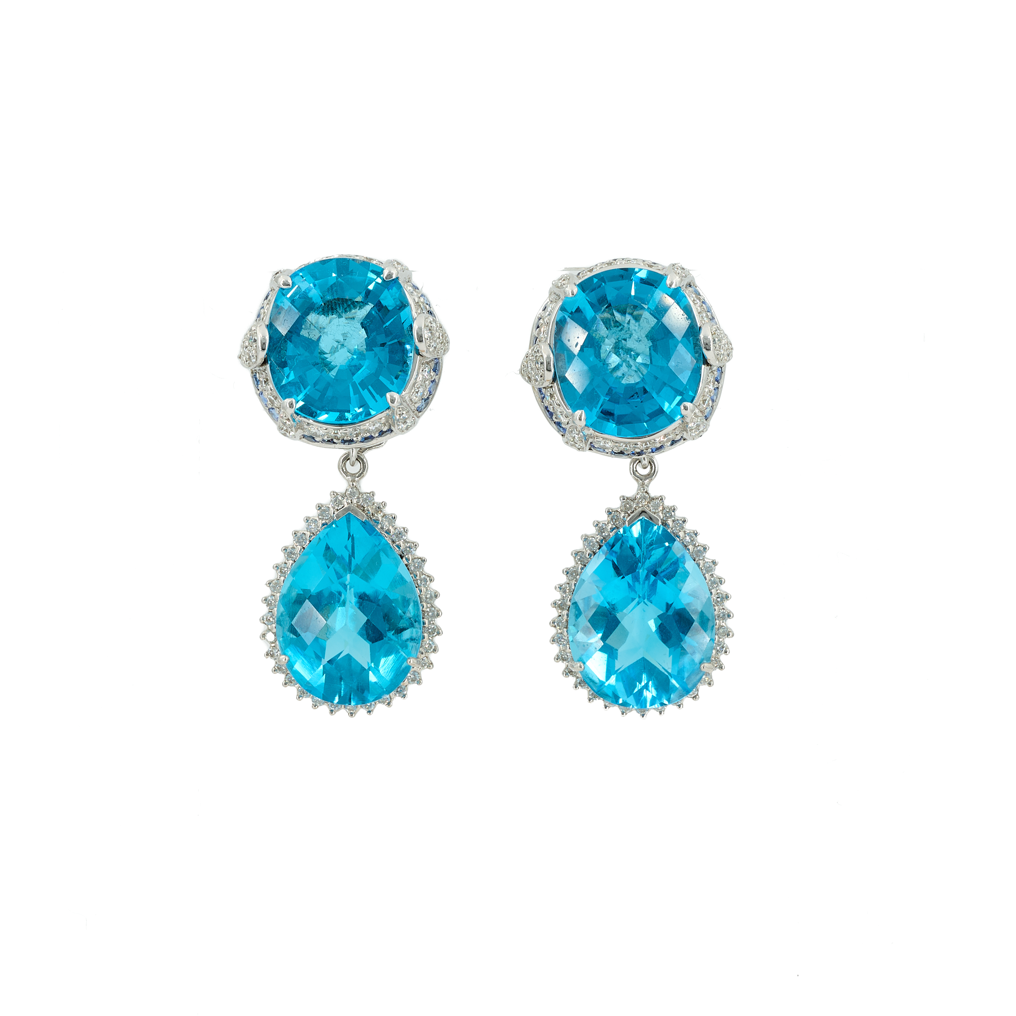 Edelsteine: 4 Blautopase im Fantasie-Schliff zus. ca. 74,0 ct., 44 runde, facettiere Farbsteine, blau Ø ca. 1,8 - 2,0 mm.