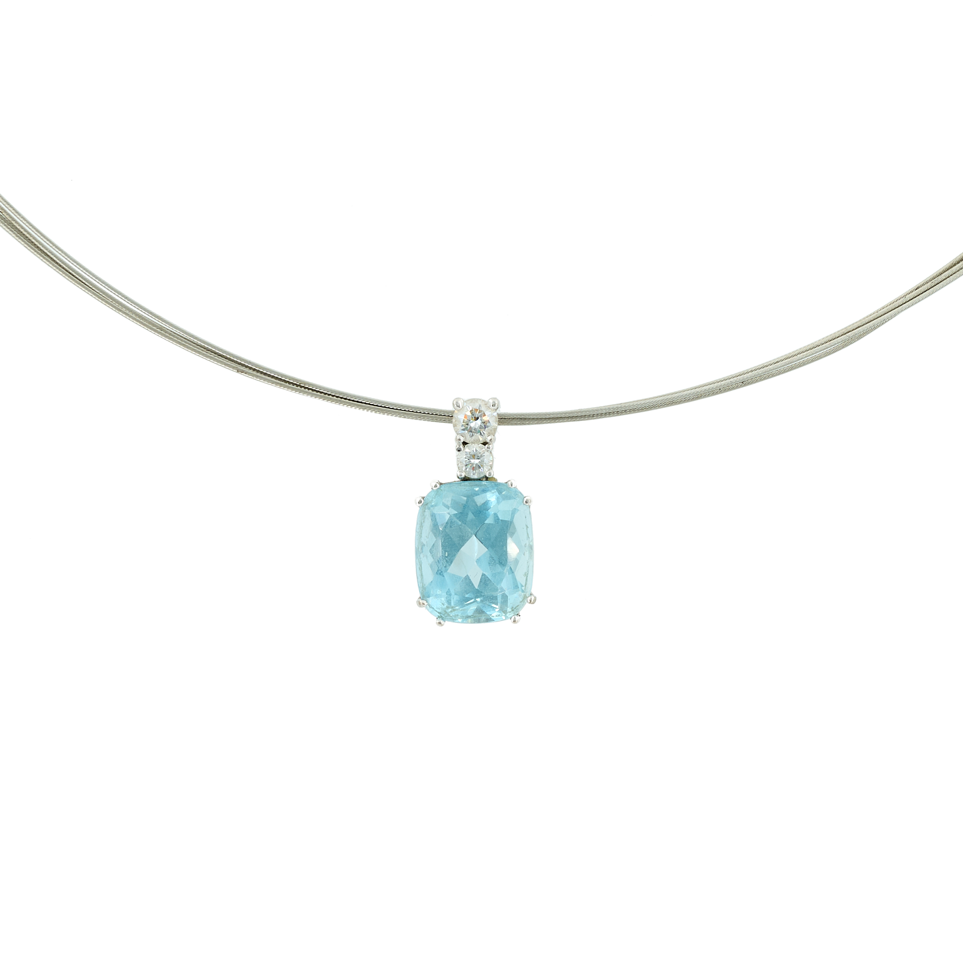 AQUAMARIN-DIAMANT-SET: RING UND ANHÄNGERKETTE.