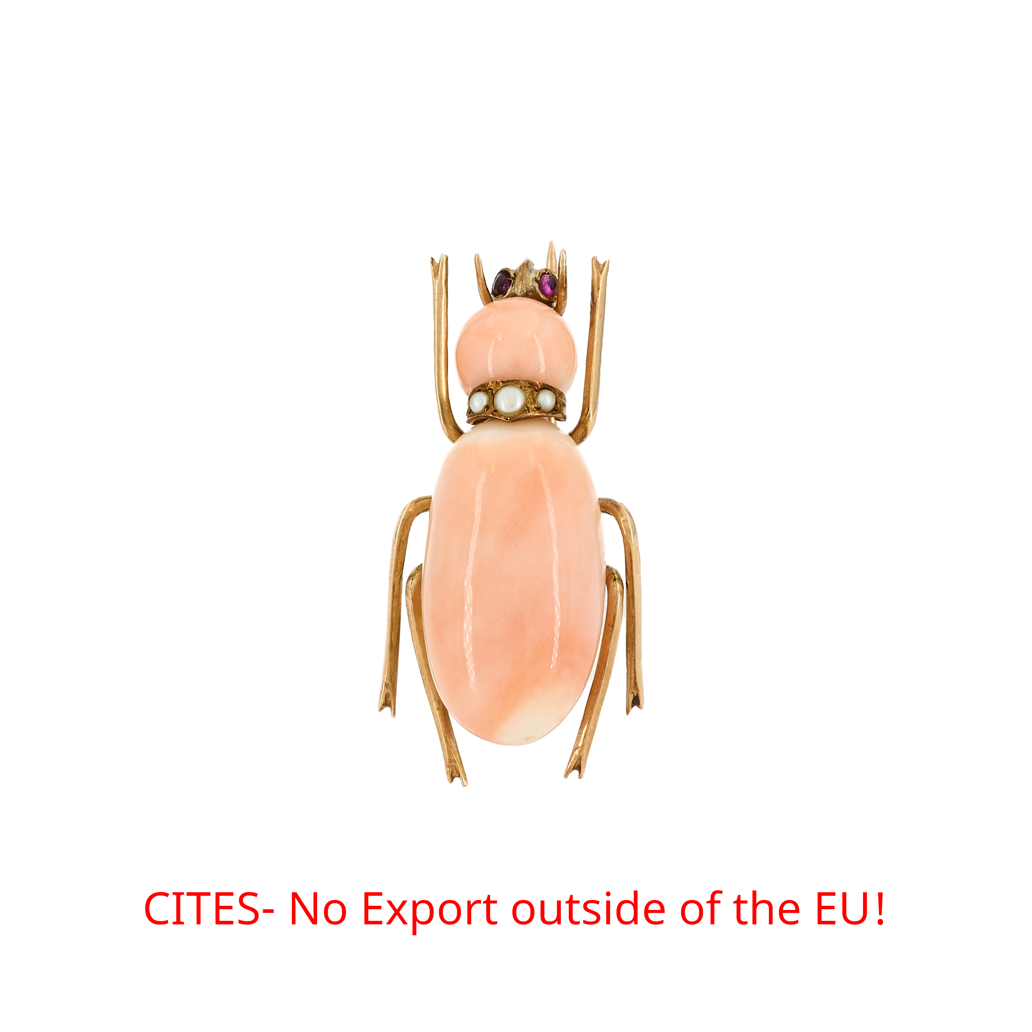 Org. Substanzen: 2 Engelshaut-Korall-Elemente ca. 7,9 - 22,2 x 8,7 - 12,8 mm, 3 Saatperlen Ø ca. 1,9 - 2,5 mm, weiß.