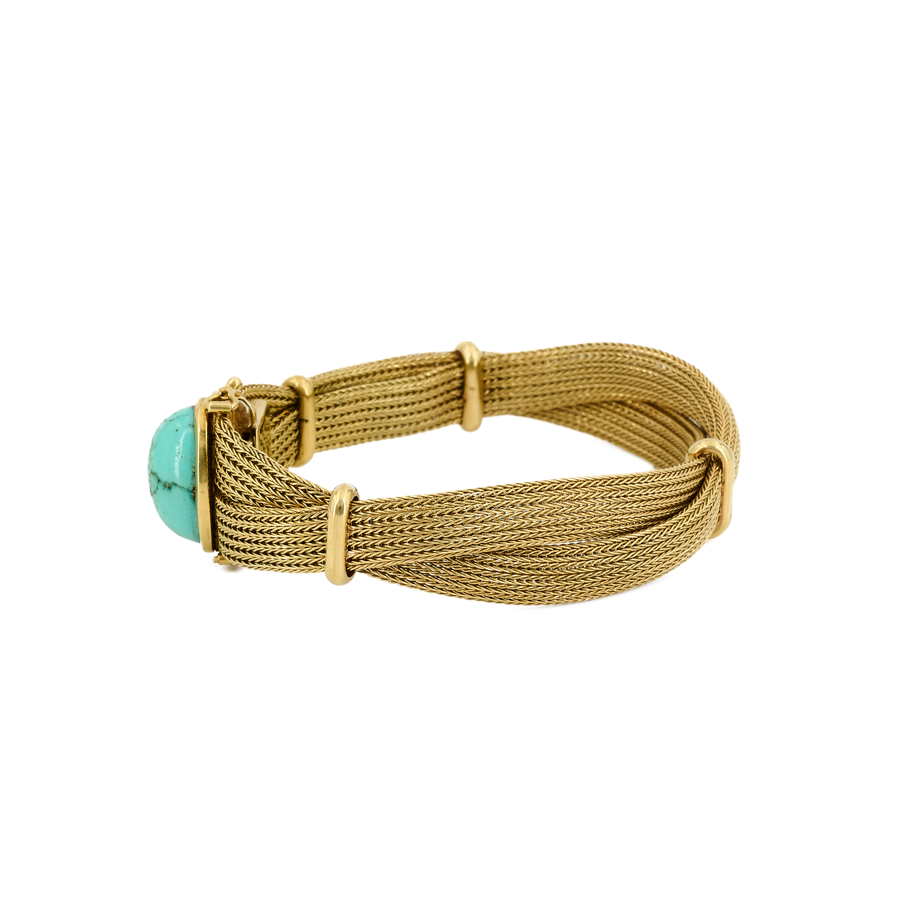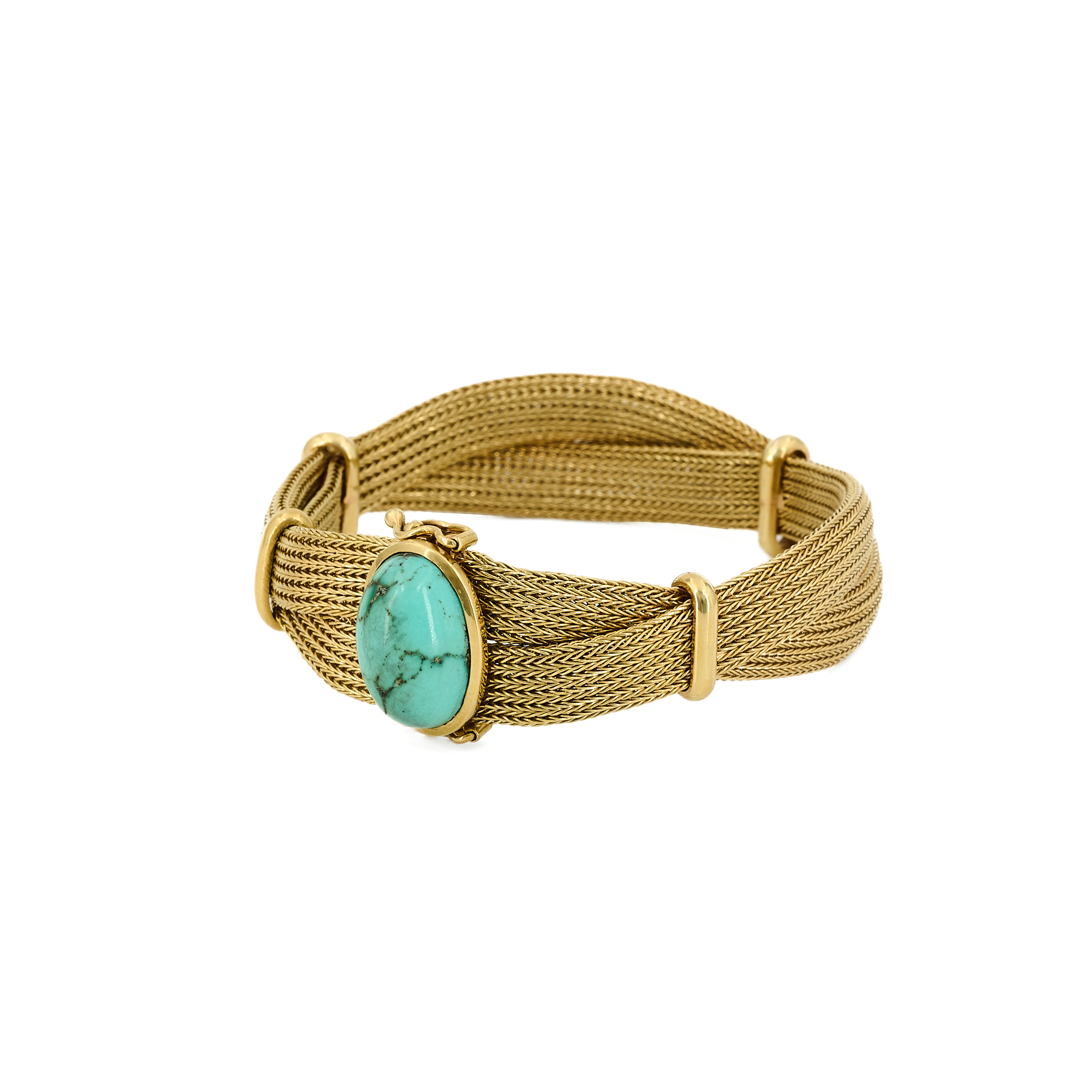 Edelsteine: 1 Türkis-Cabochon ca. 14,5 x 9,5 mm.