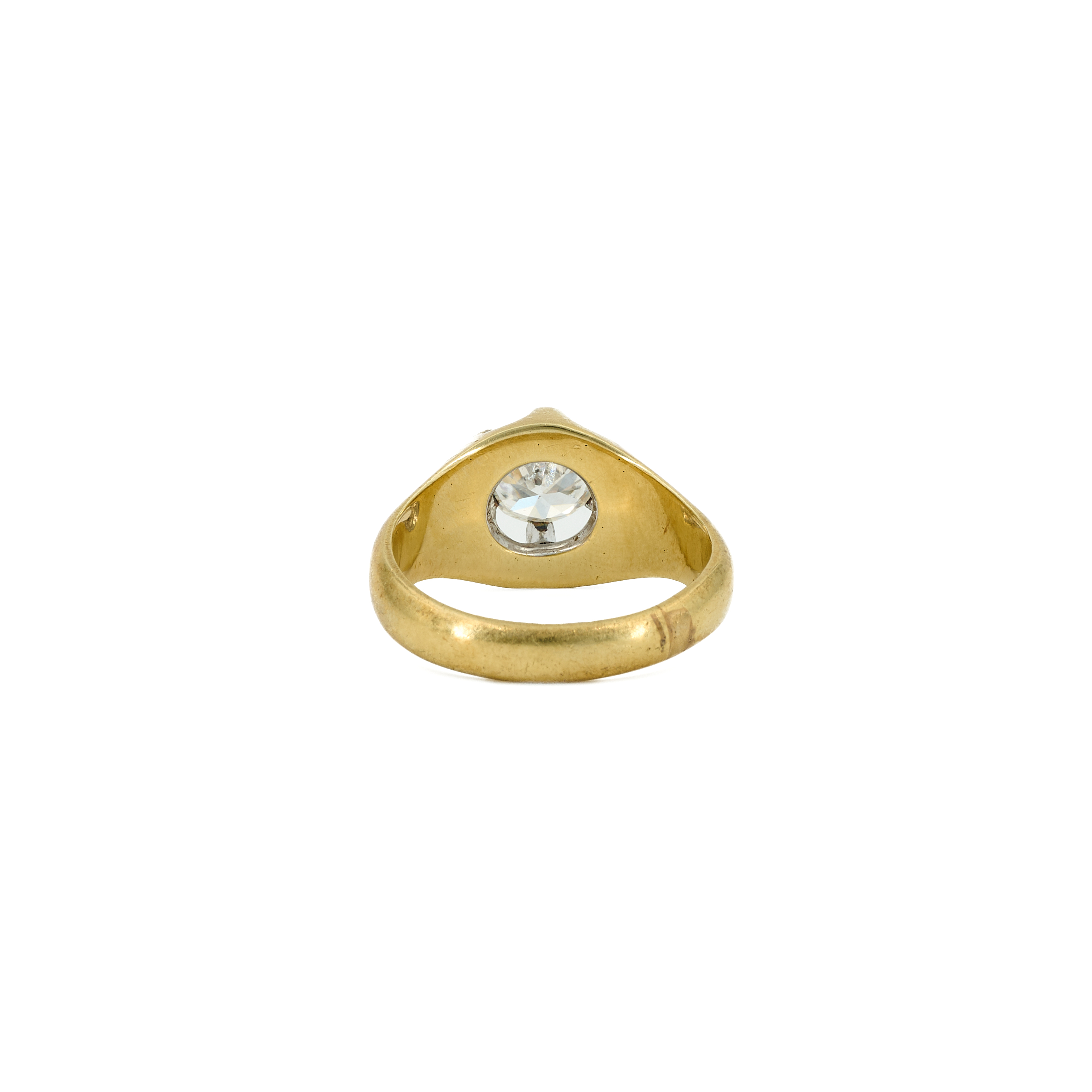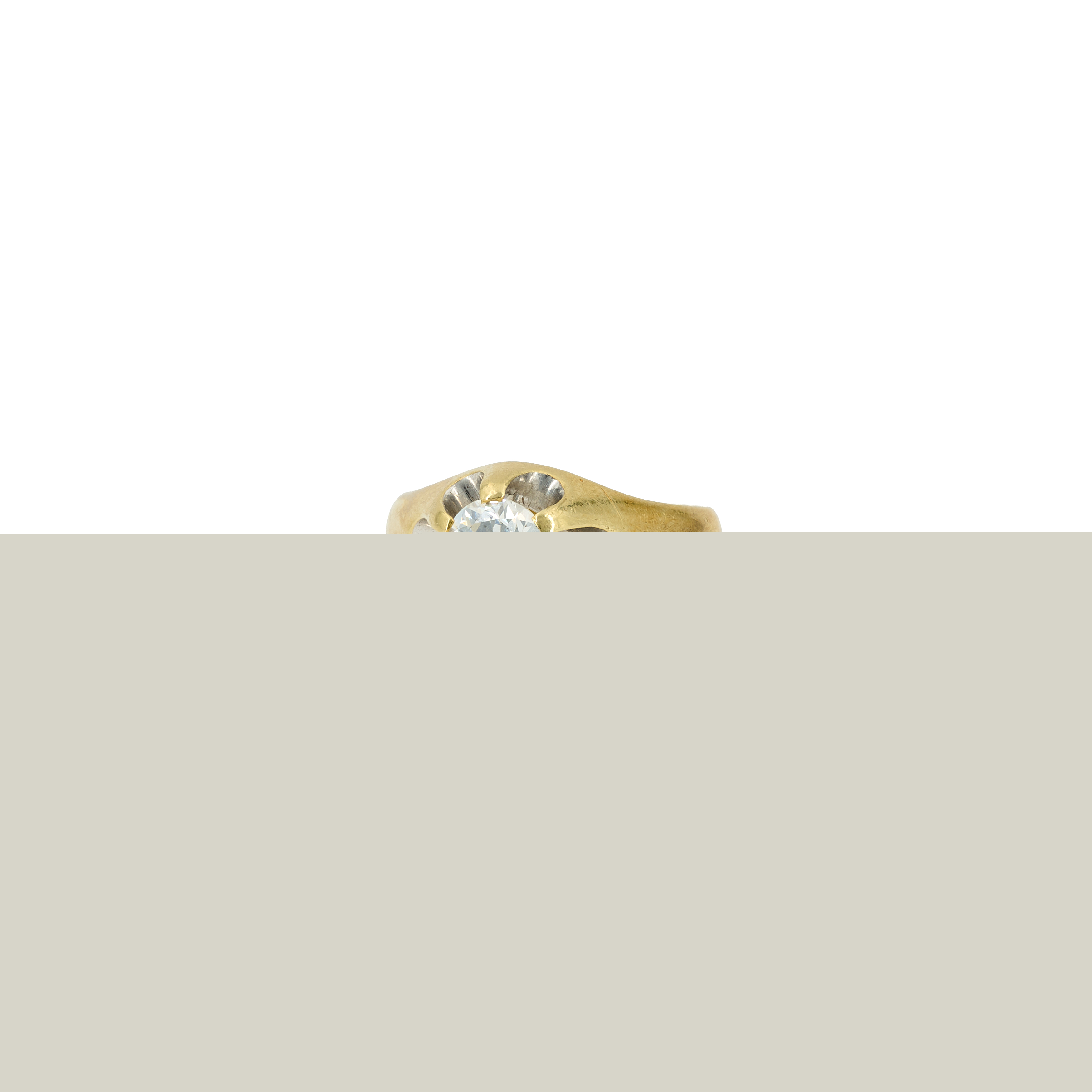 Beschreibung: Solitaire-Ring im viktorianischen Stil in "Belcher"-Fassung - eine bündige Fassung, bei der die Zargen in die Ringschiene eingeschnitten sind.