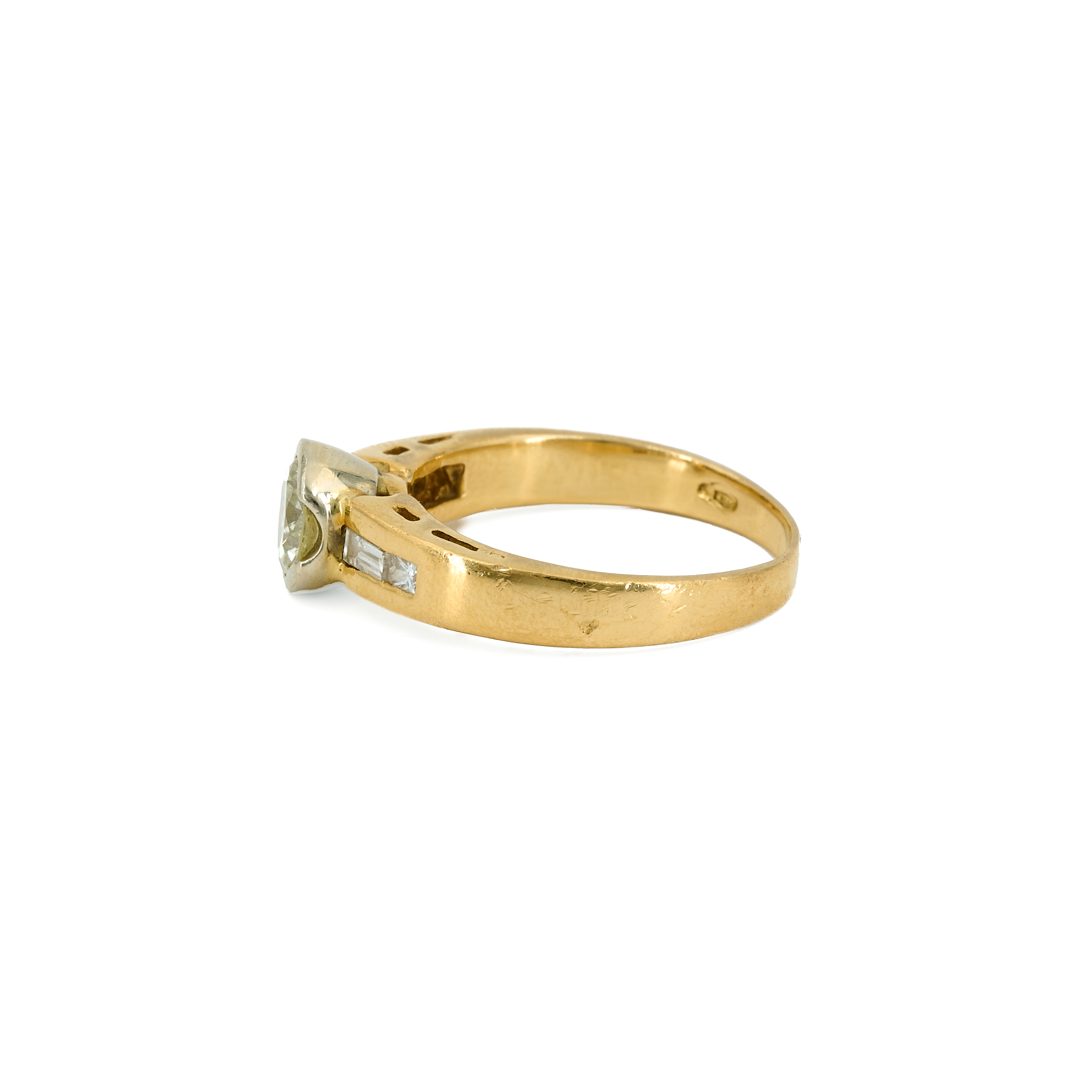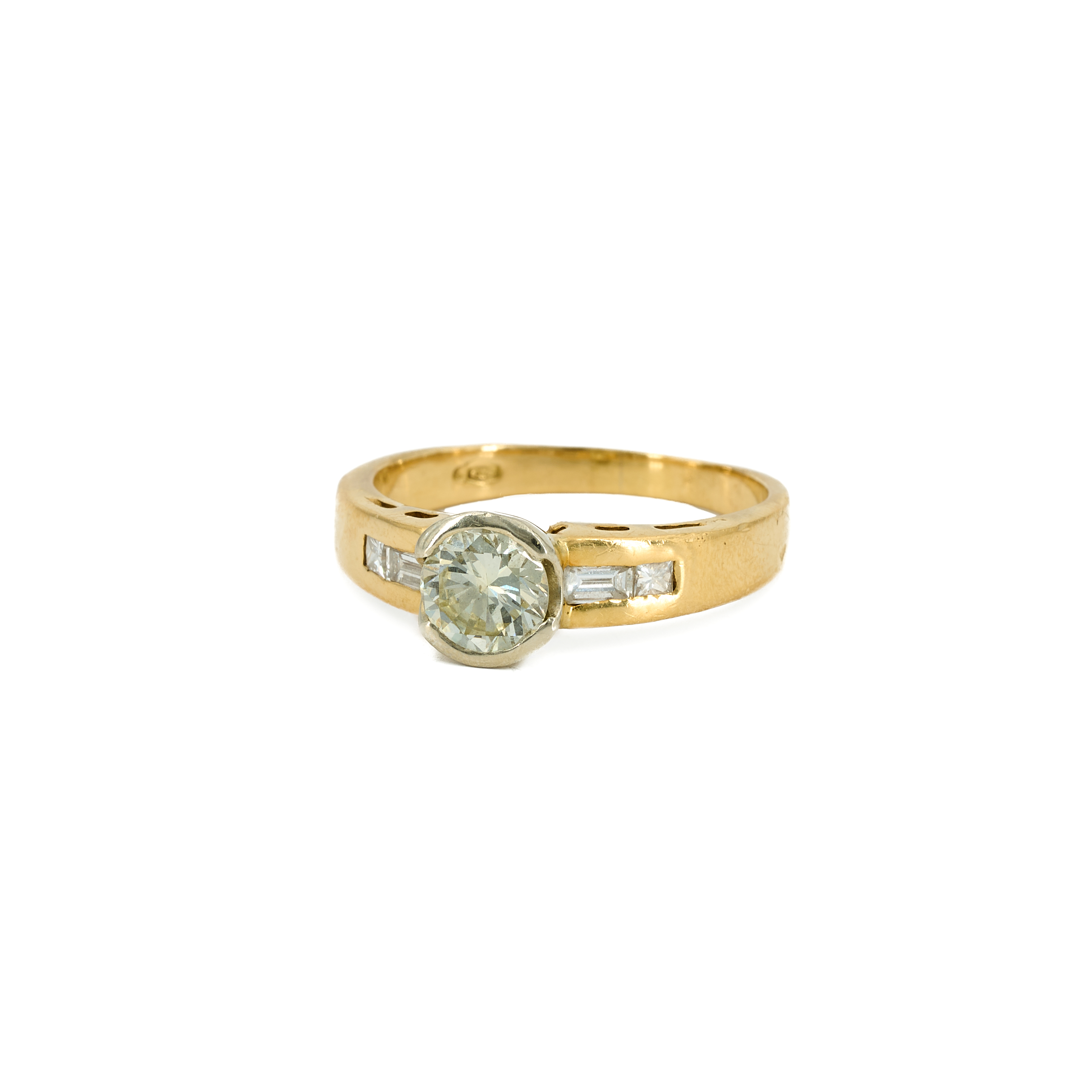 Diamanten: 5 Diamanten im Brillant-, Baguette- und Prinzess-Schliff zus. ca. 1,2 ct.