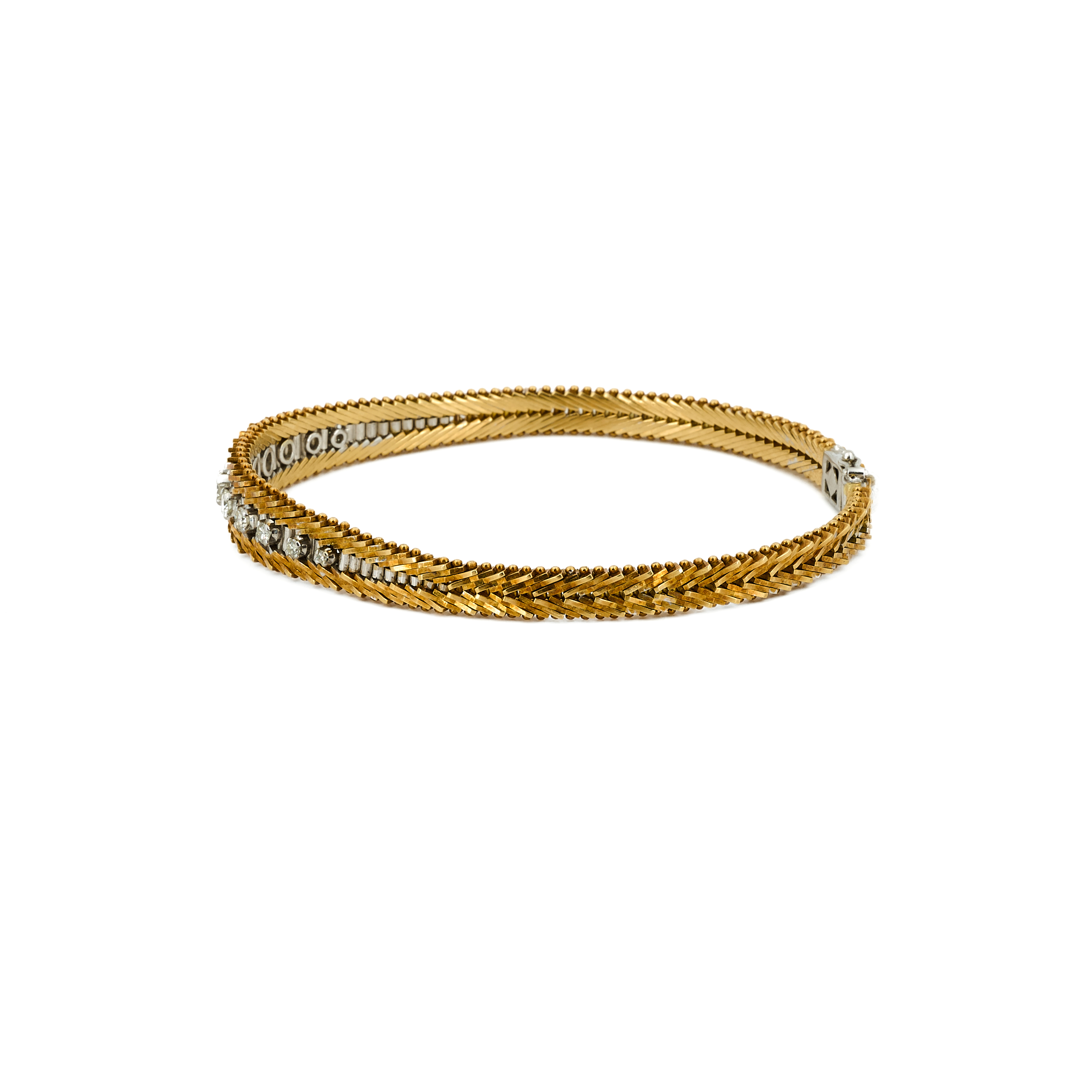 Gelbgold-Rhodinierung partiell berieben, Weißgold minimal sichtbar.