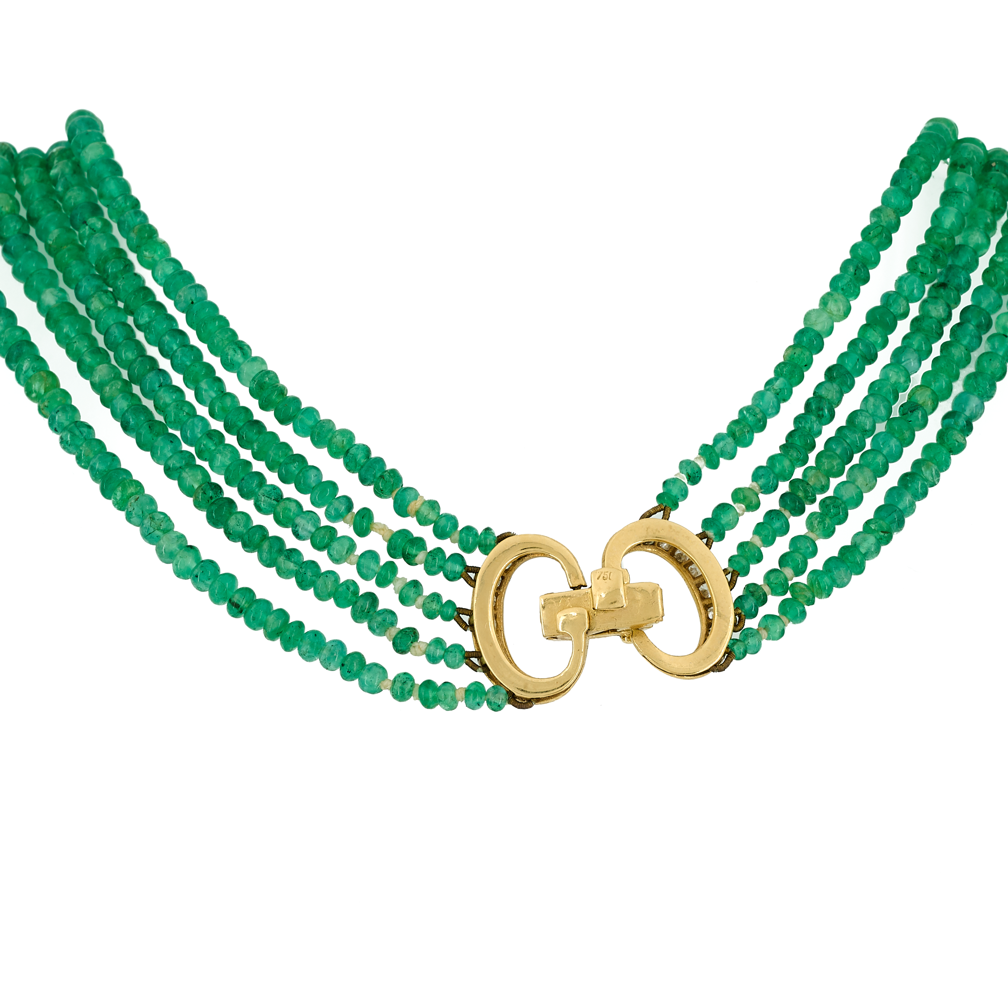 Beschreibung: 5-strängiges Smaragd-Collier mit dekorativem Verschluss.