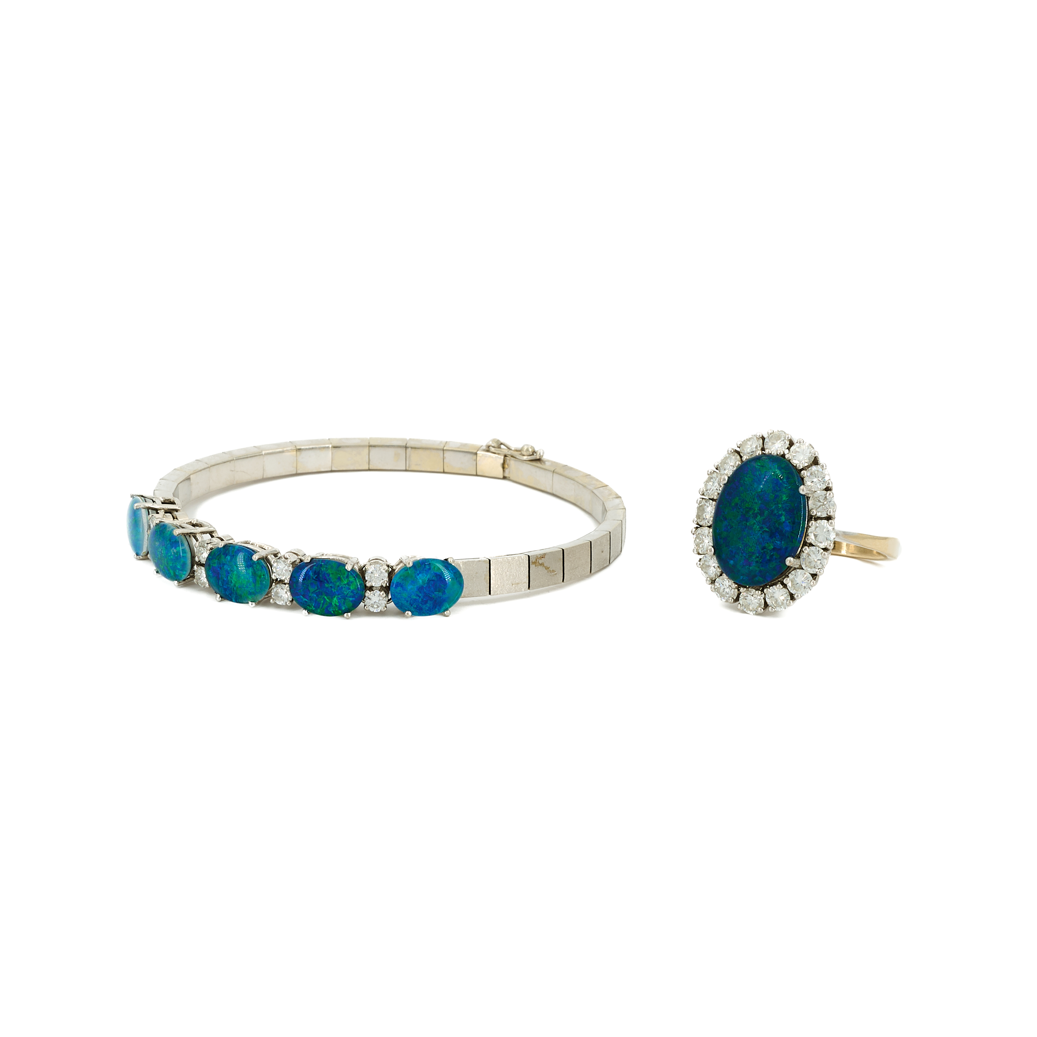 OPAL-DIAMANT-SET: ARMBAND UND RING.