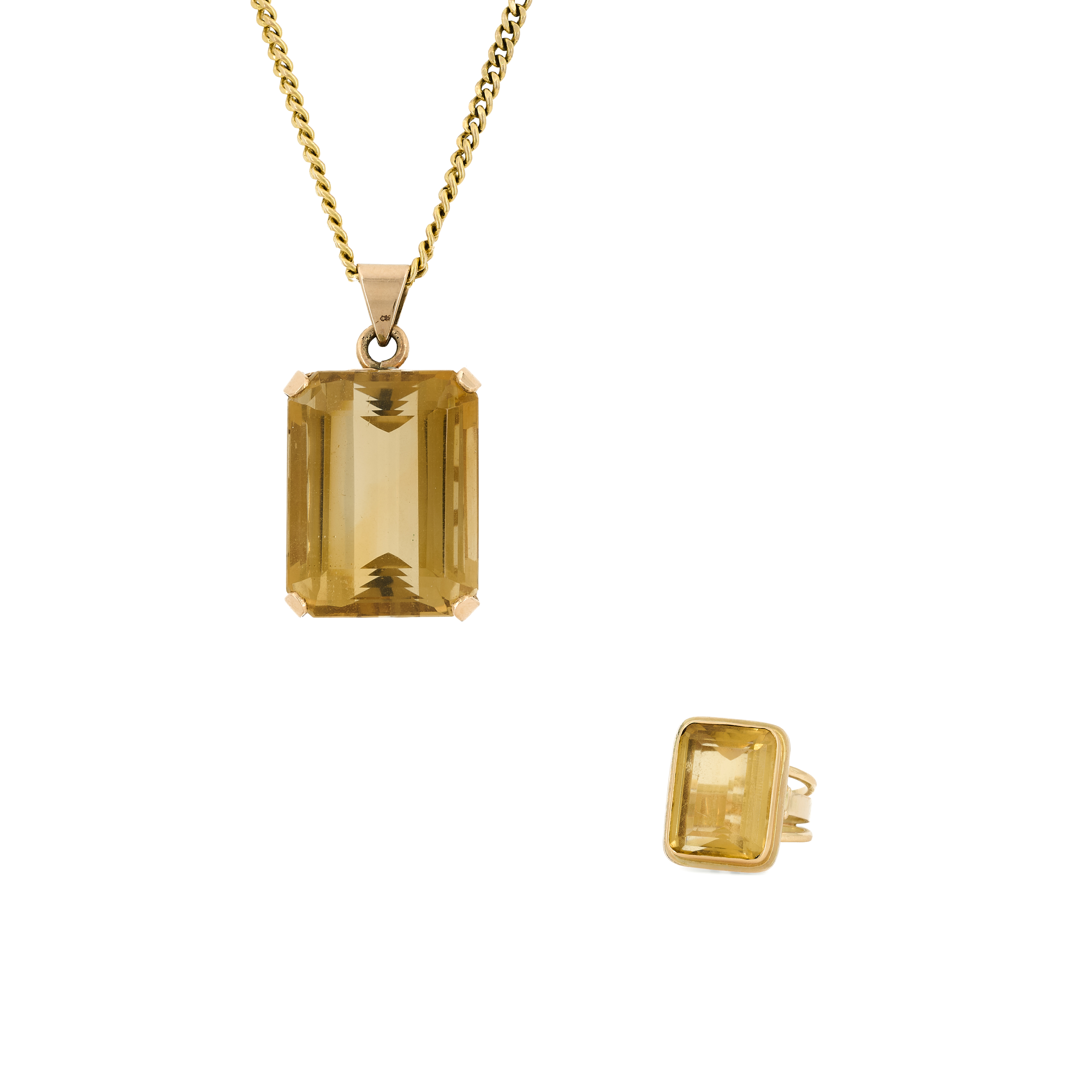 CITRIN-SET: ANHÄNGERKETTE UND RING.