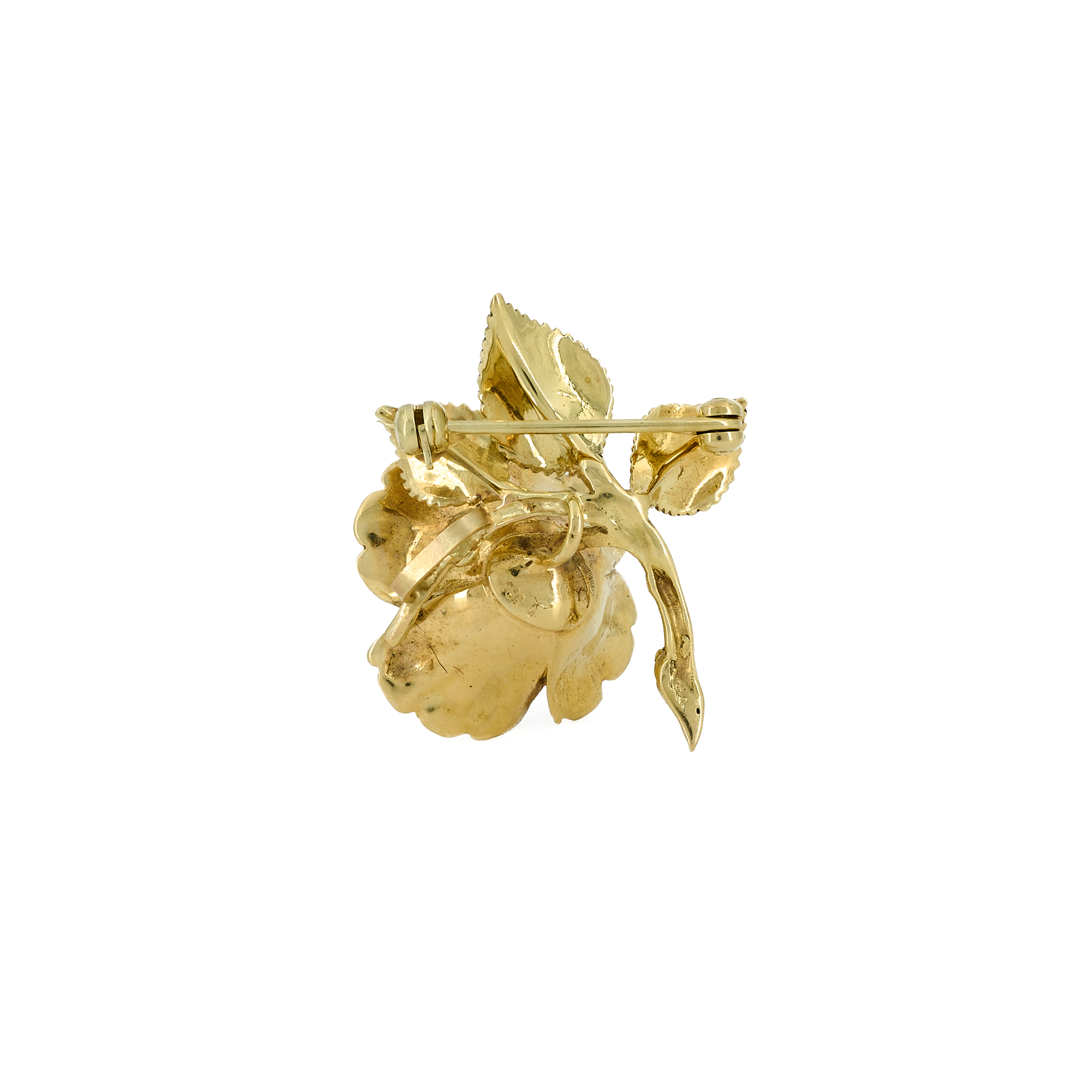 Beschreibung: Sehr detaillierte Gravierung des Goldes, welche Einzelheiten der Blume zeigen. Anhängeröse rückseitig wurde nachträglich angebracht.