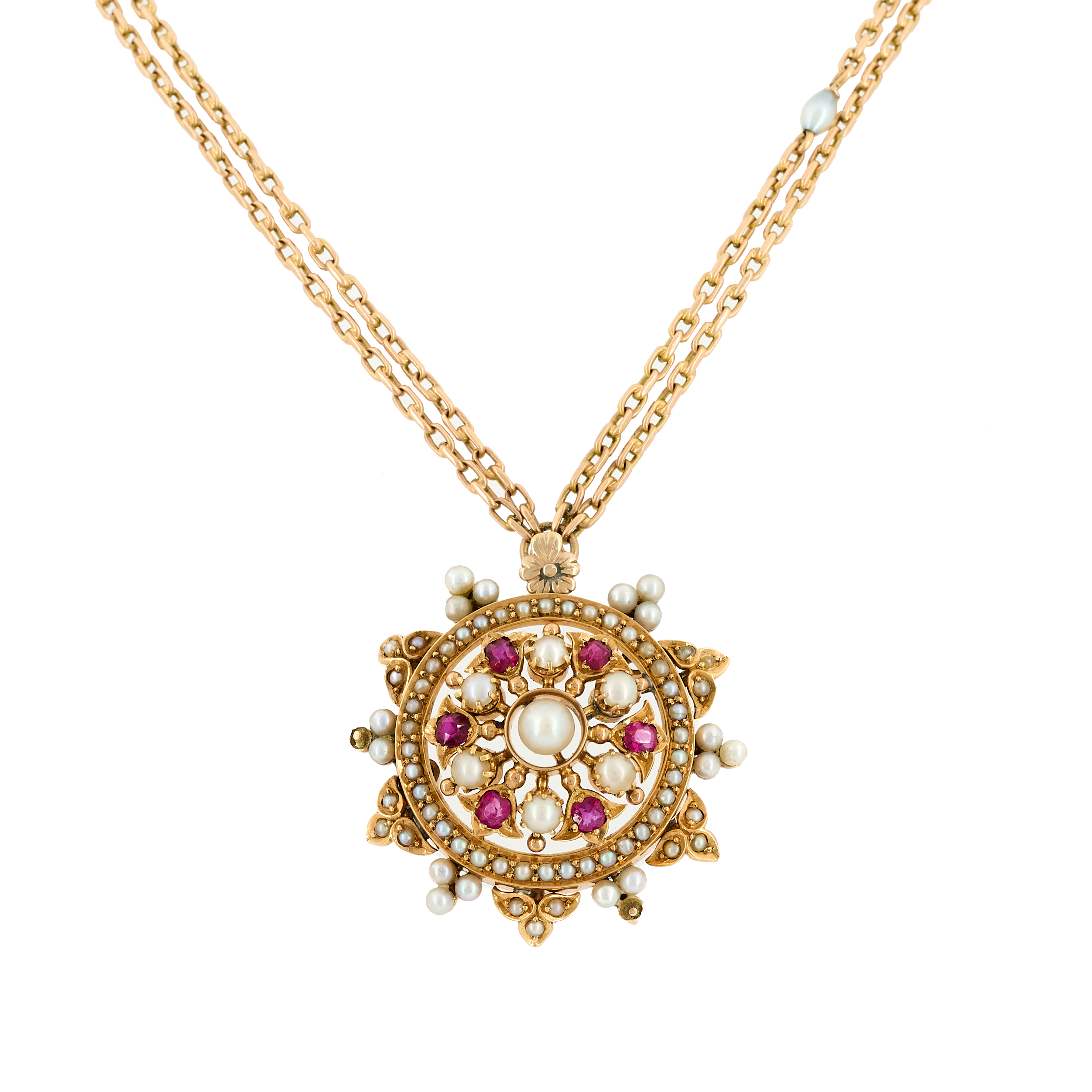 DEKORATIVE RUBIN-PERL-ANHÄNGERKETTE.