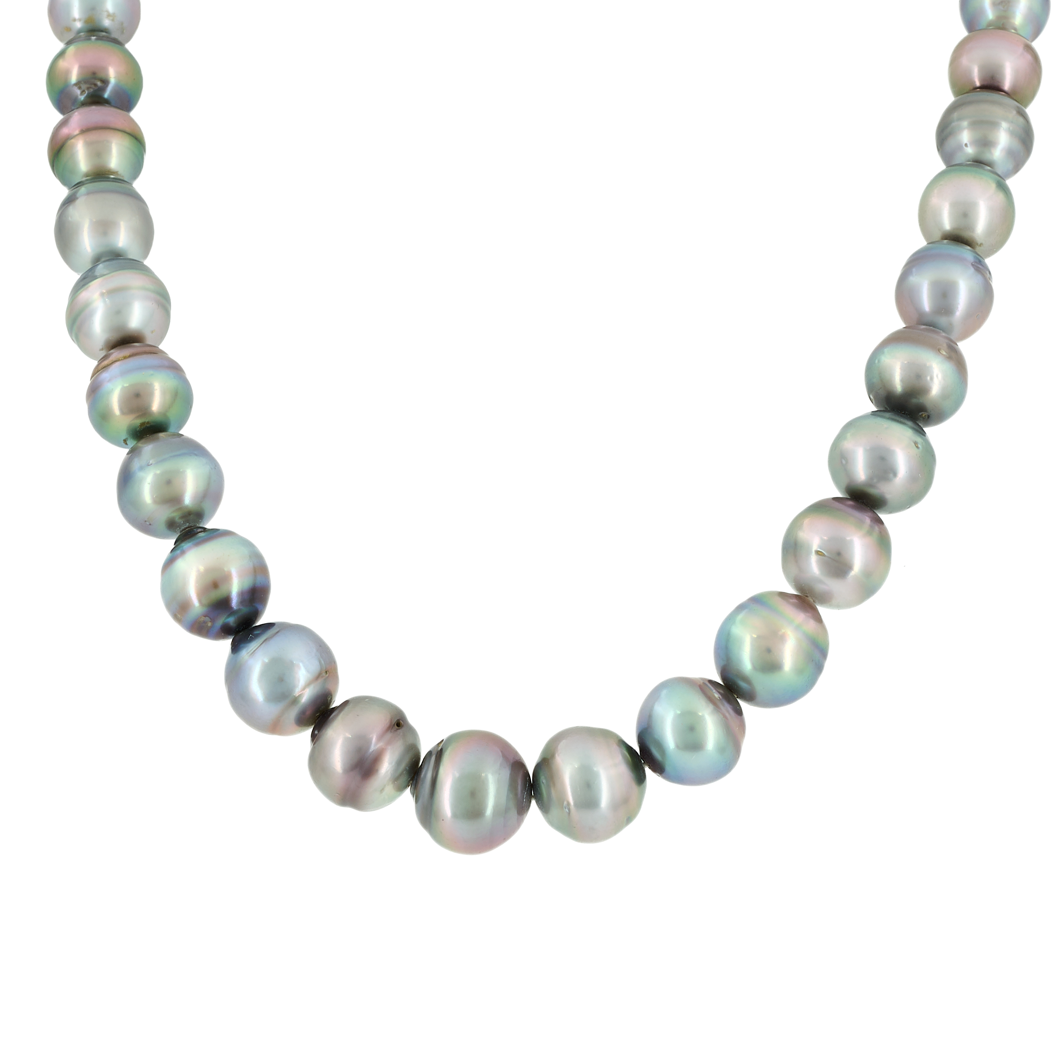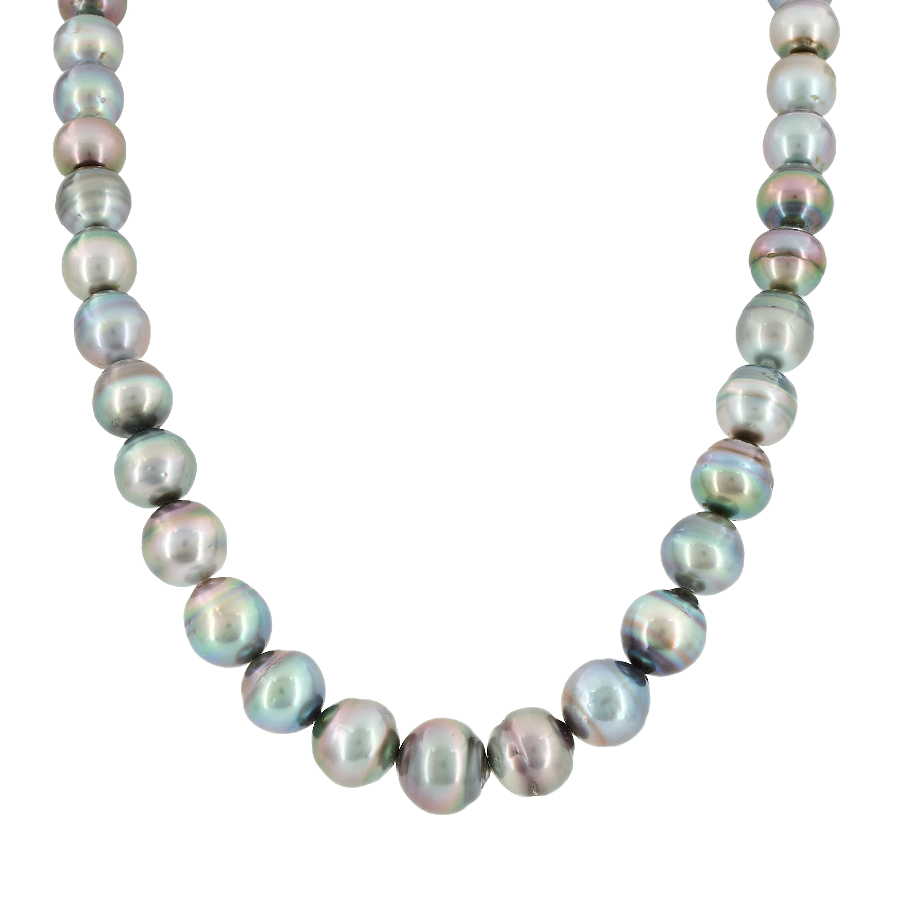 Org. Substanzen: 43 Tahiti-Zuchtperlen Ø ca. 8,1 - 12,5 mm, auberginenfarben-silber deutliche Wachstumsmerkmale.