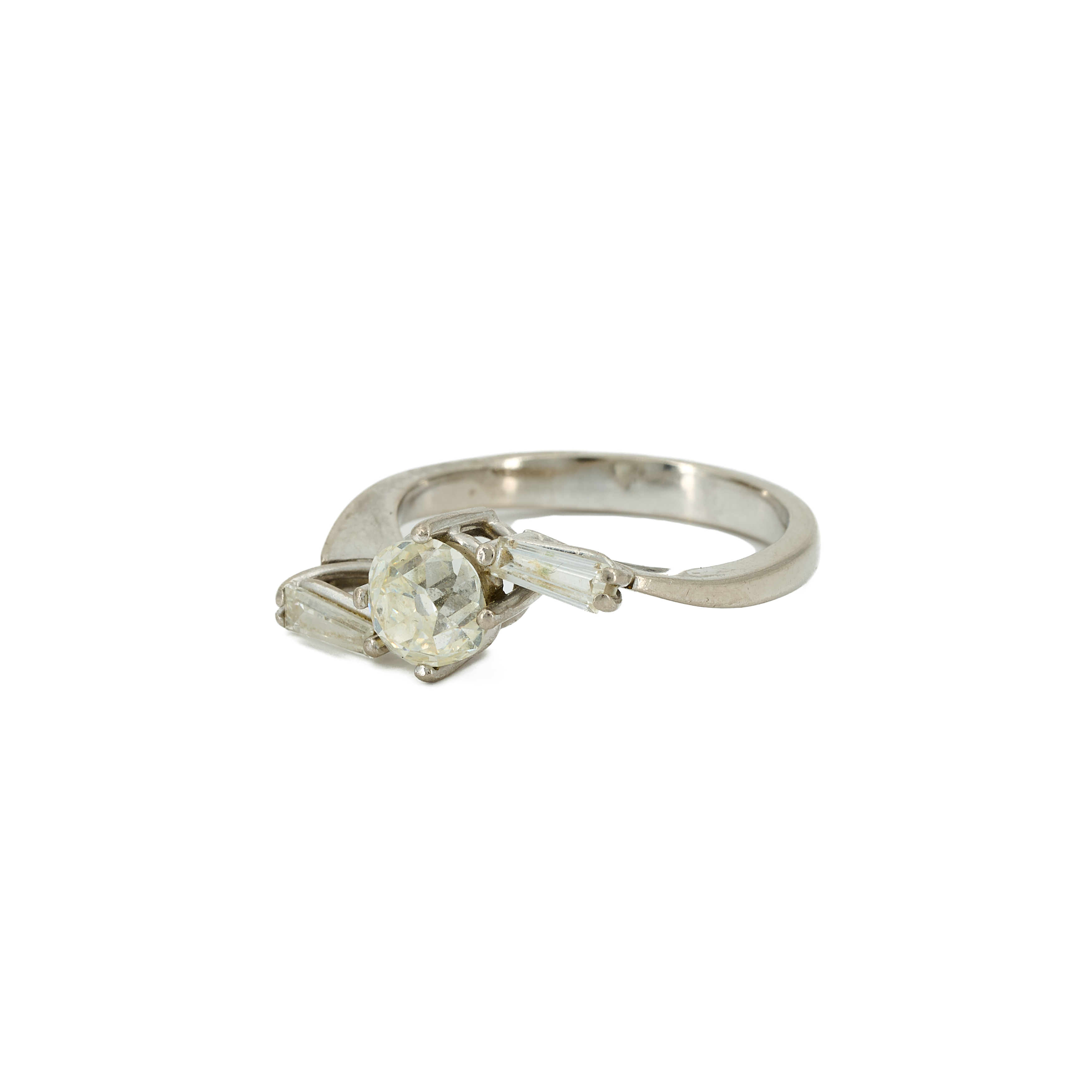 Diamanten: 1 Diamant im Alt-Schliff ca. 0,96 ct., L-M/P, 2 Diamant-Baguetten zus. ca. 0,32 ct.