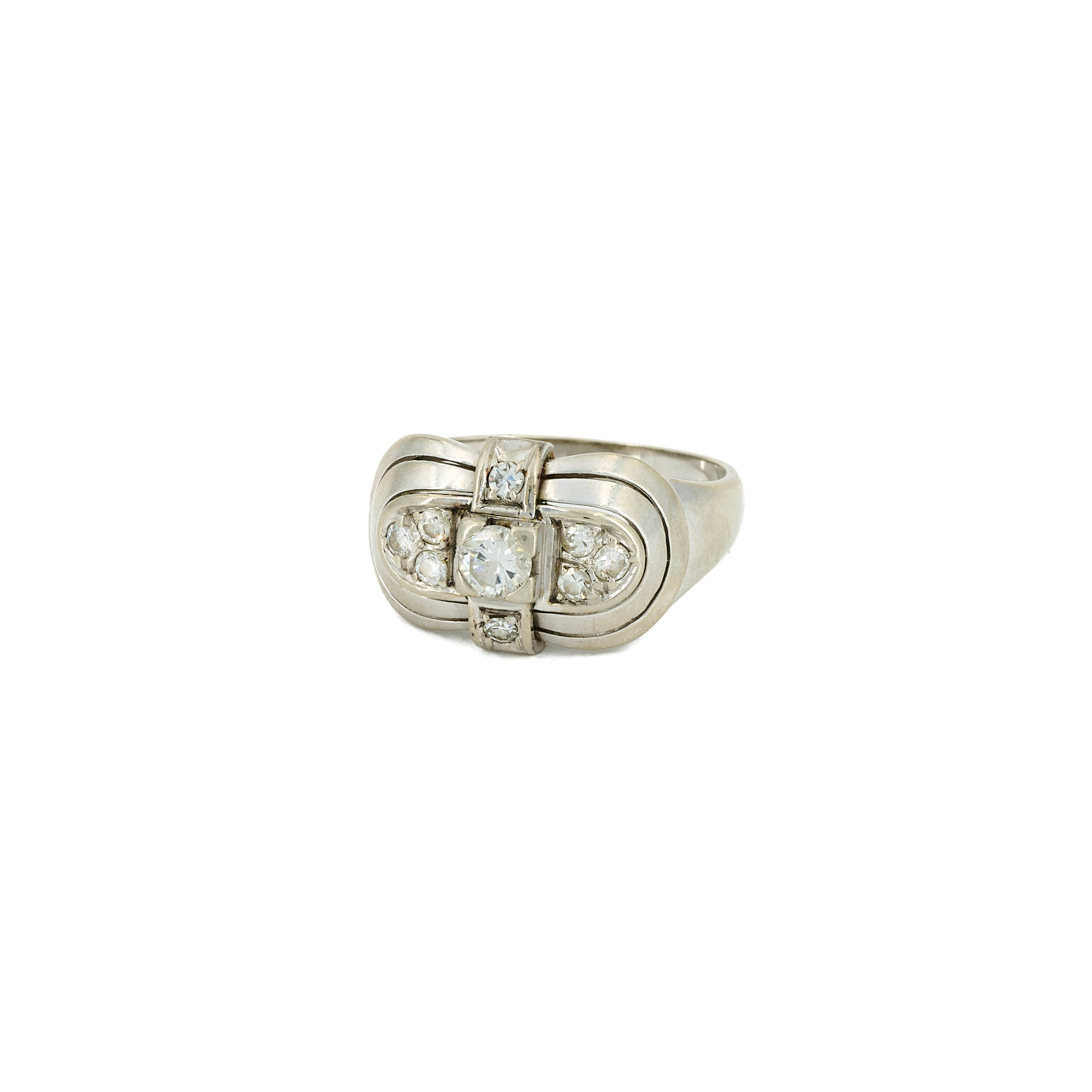 Diamanten: 9 Diamanten im Brillant- und Achtkant-Schliff zus. ca. 0,47 ct.