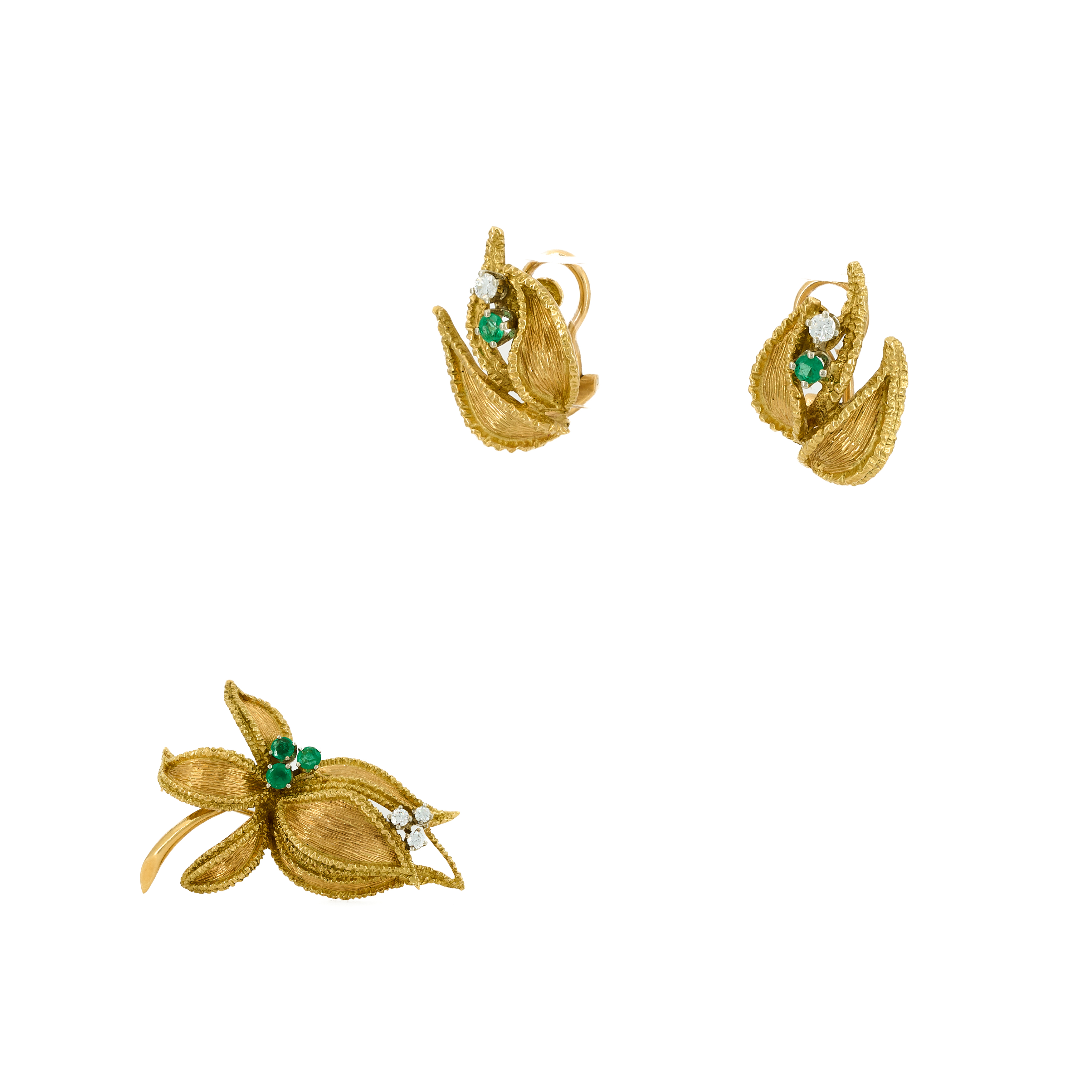 RETRO SMARAGD-DIAMANT-SET: BROSCHE UND OHRSTECKCLIPS.
