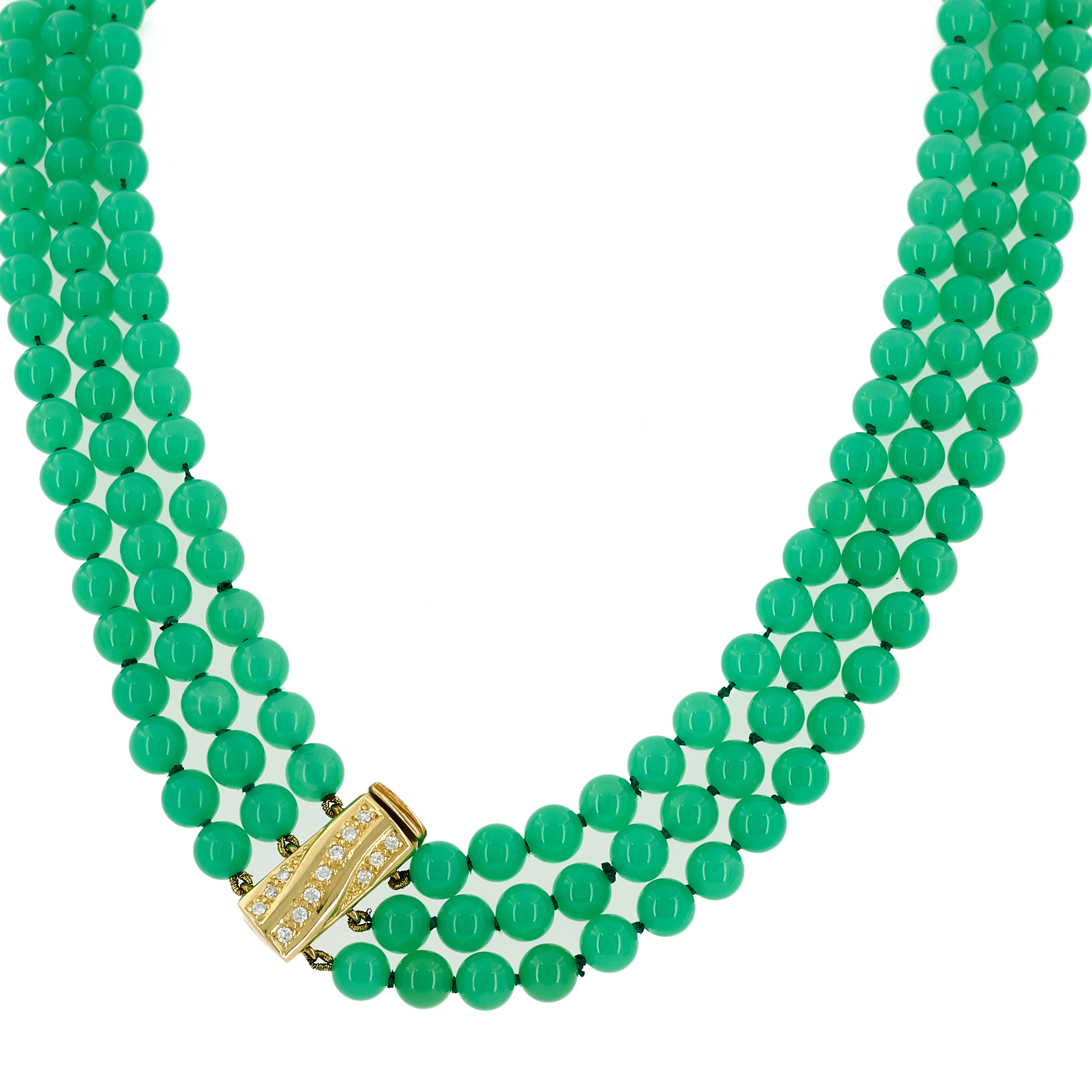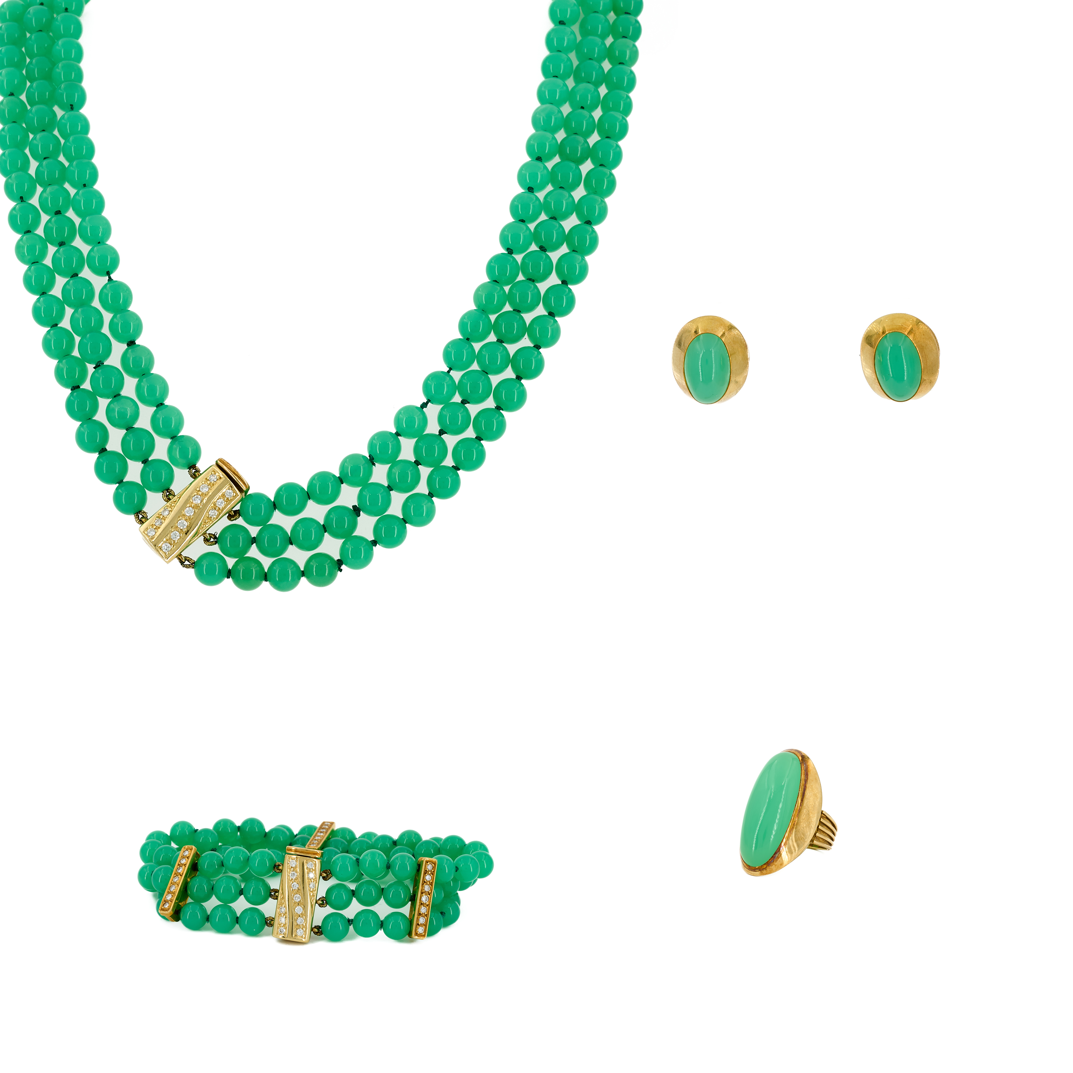 CHRYSOPRAS-DIAMANT-SET: COLLIER, ARMBAND, RING, OHRSTECKER.