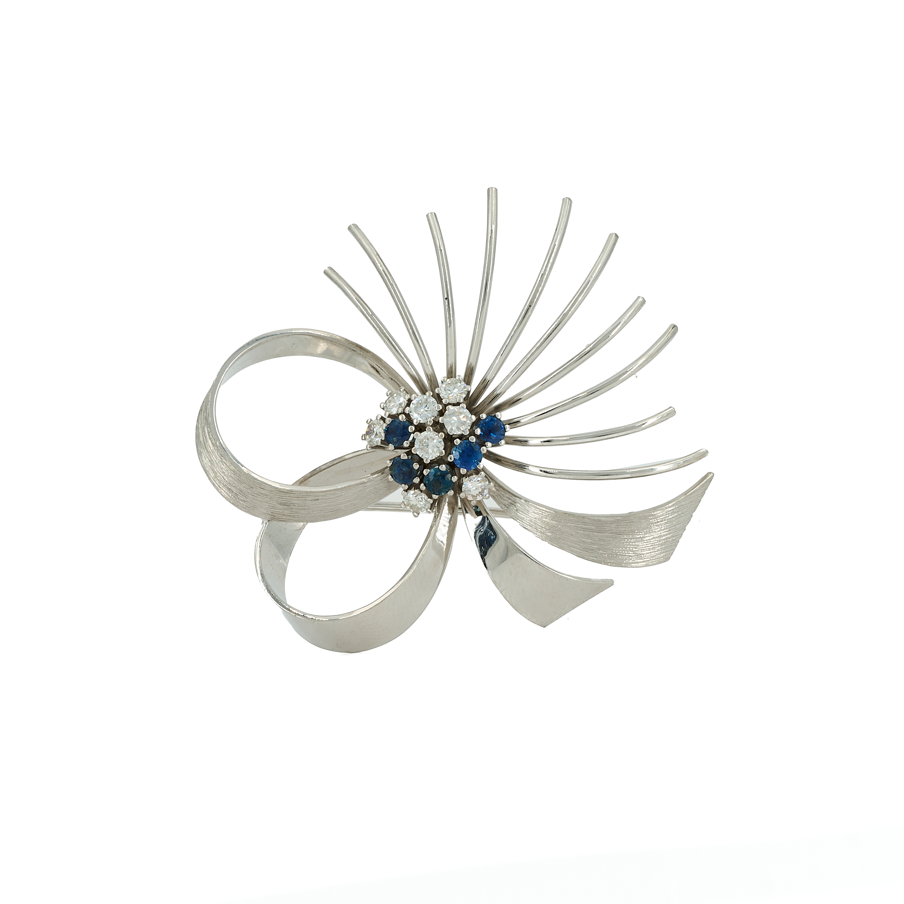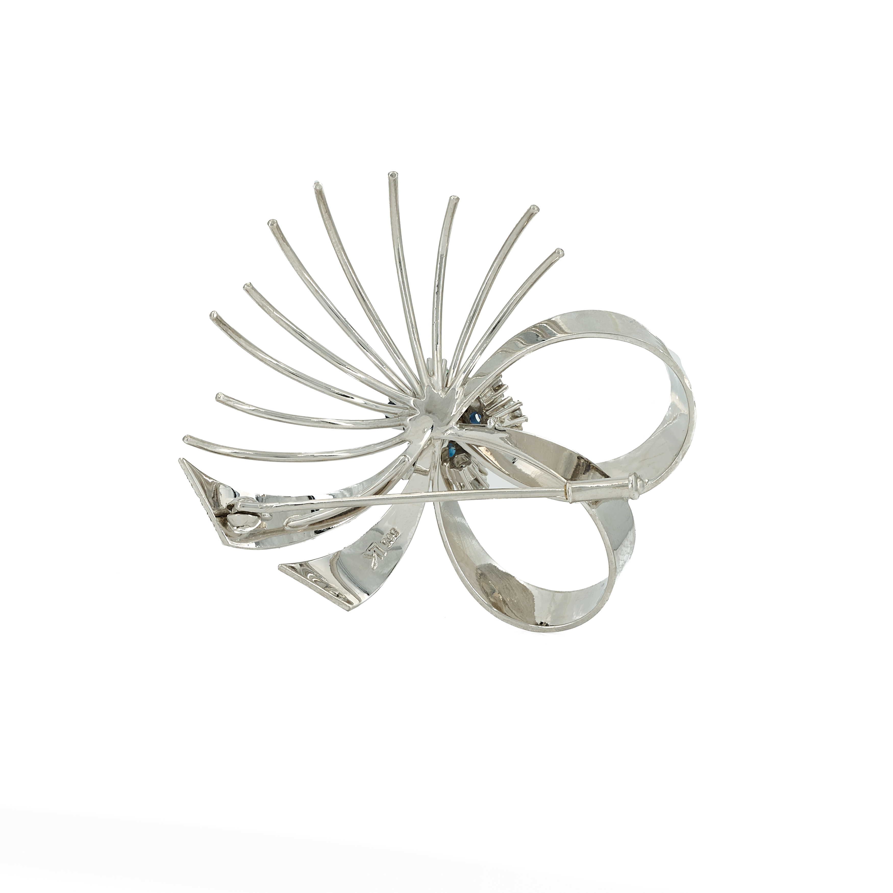 Schleife mattiert gearbeitet. Winzige Kratzer am Gold sichtbar.