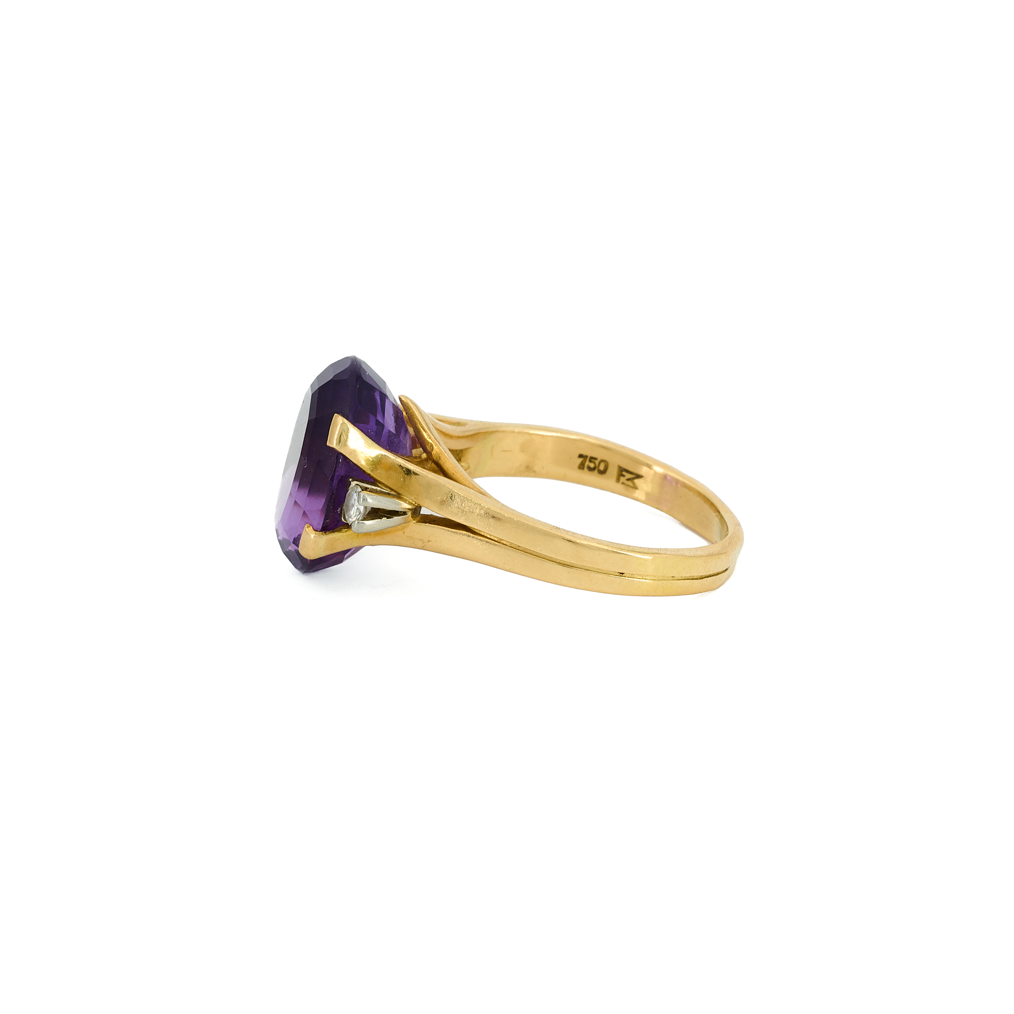 Kratzern auf dem Gold, insbesondere rückseitig, sichtbar. Der Amethyst zeigt einen kleinen