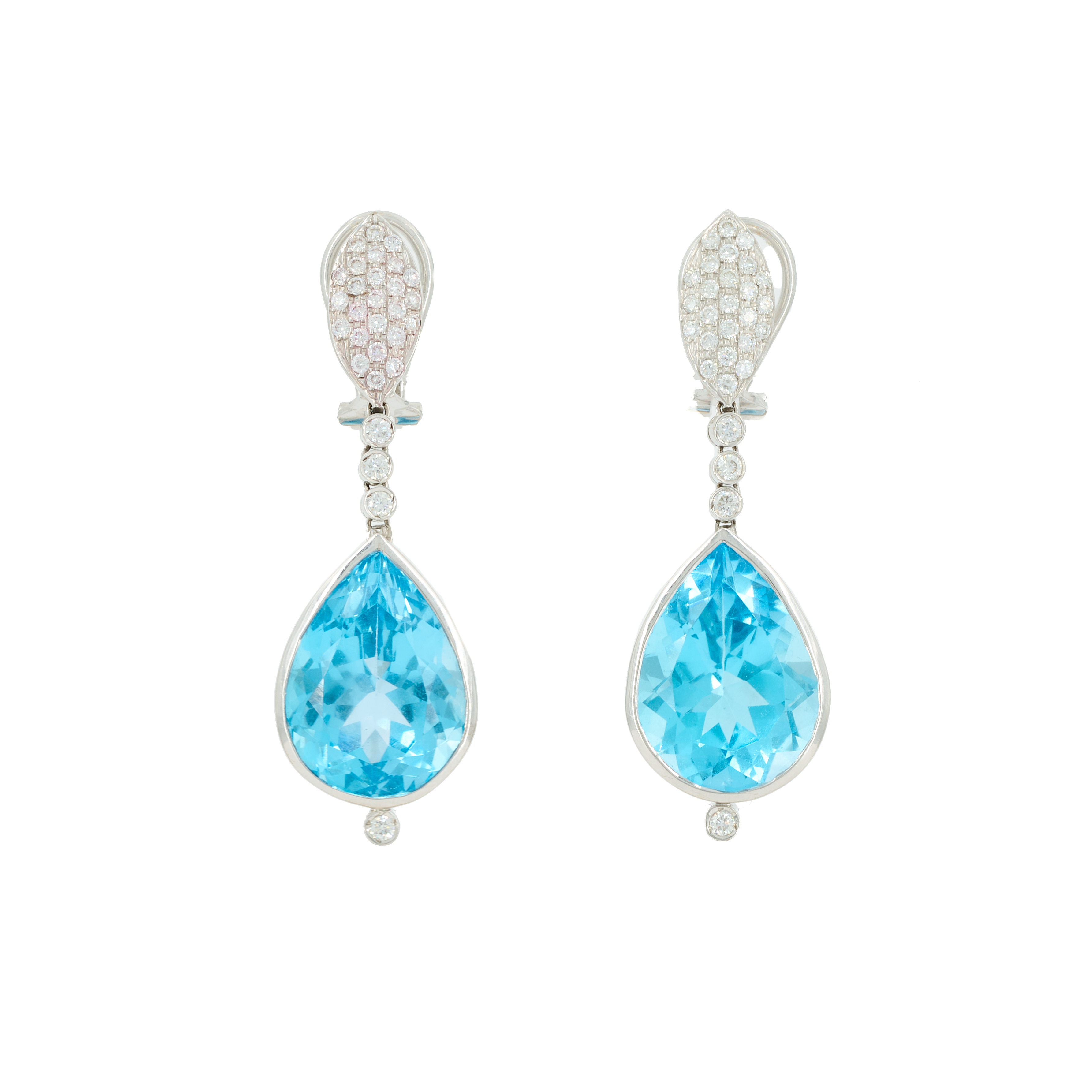 Beschreibung: Elegante Weißgold-Ohrhänger mit navetteförmigem Kopfteil in Diamant-Pavé. Die