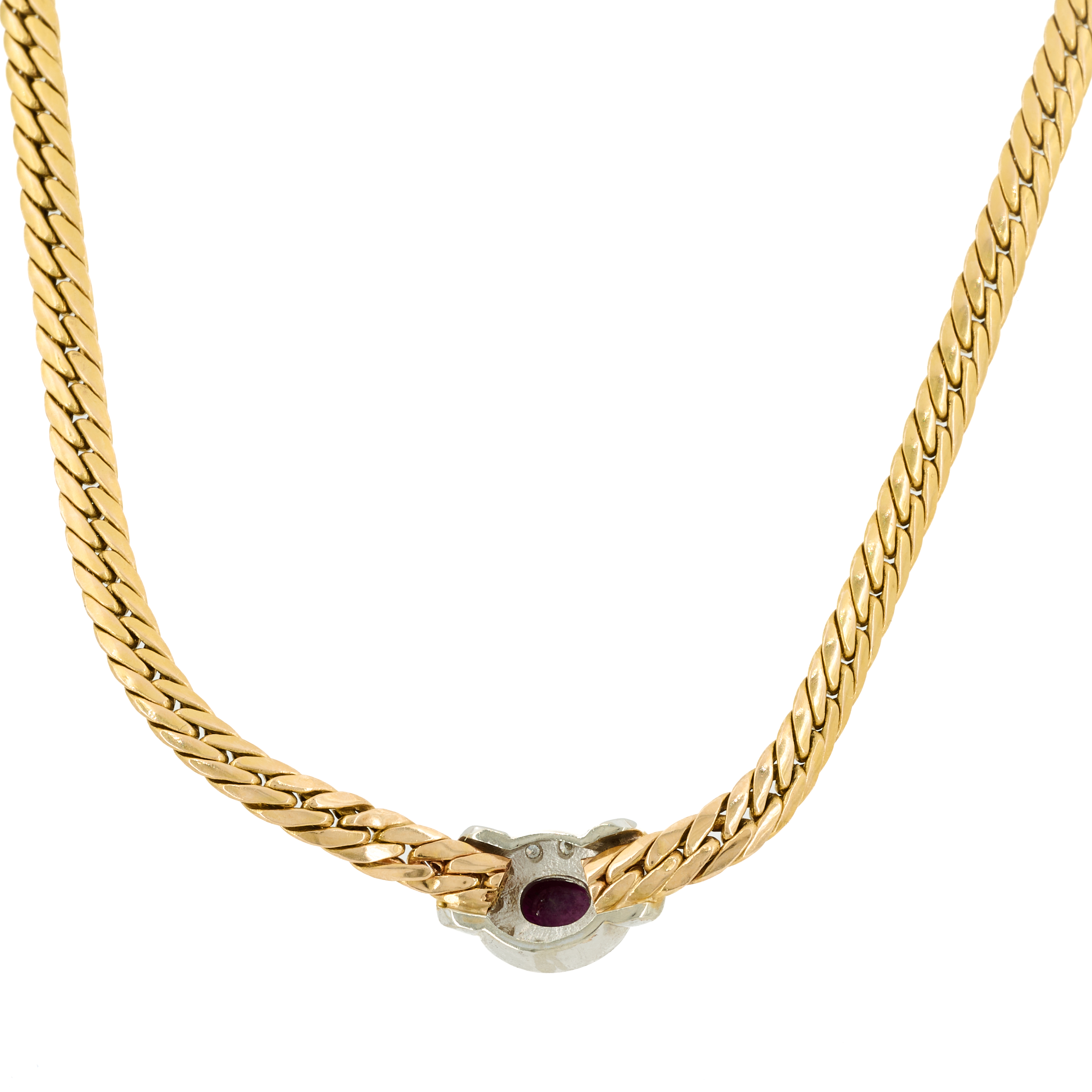 Edelsteine: 1 ovaler Rubin-Cabochon ca. 1,3 ct., behandelt.