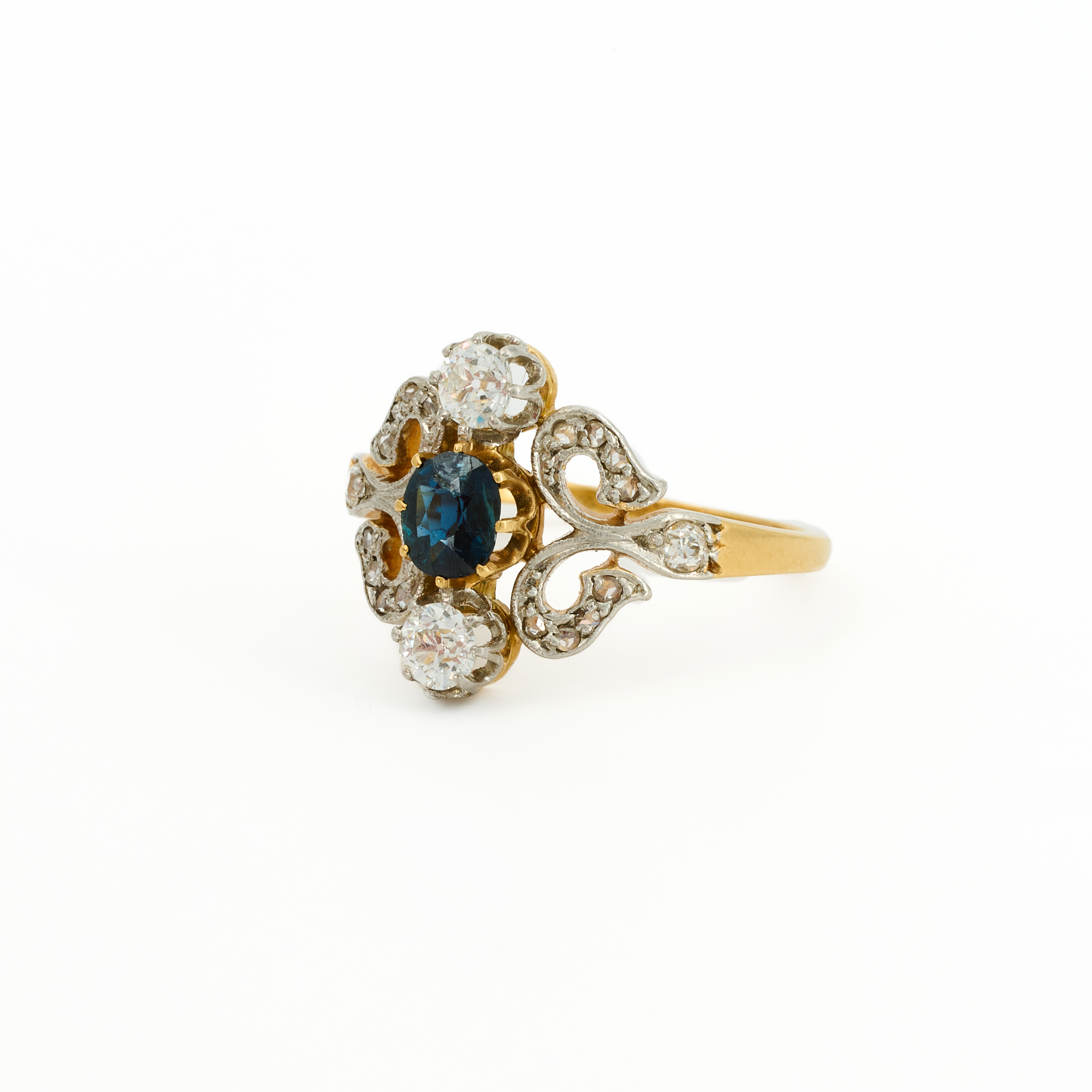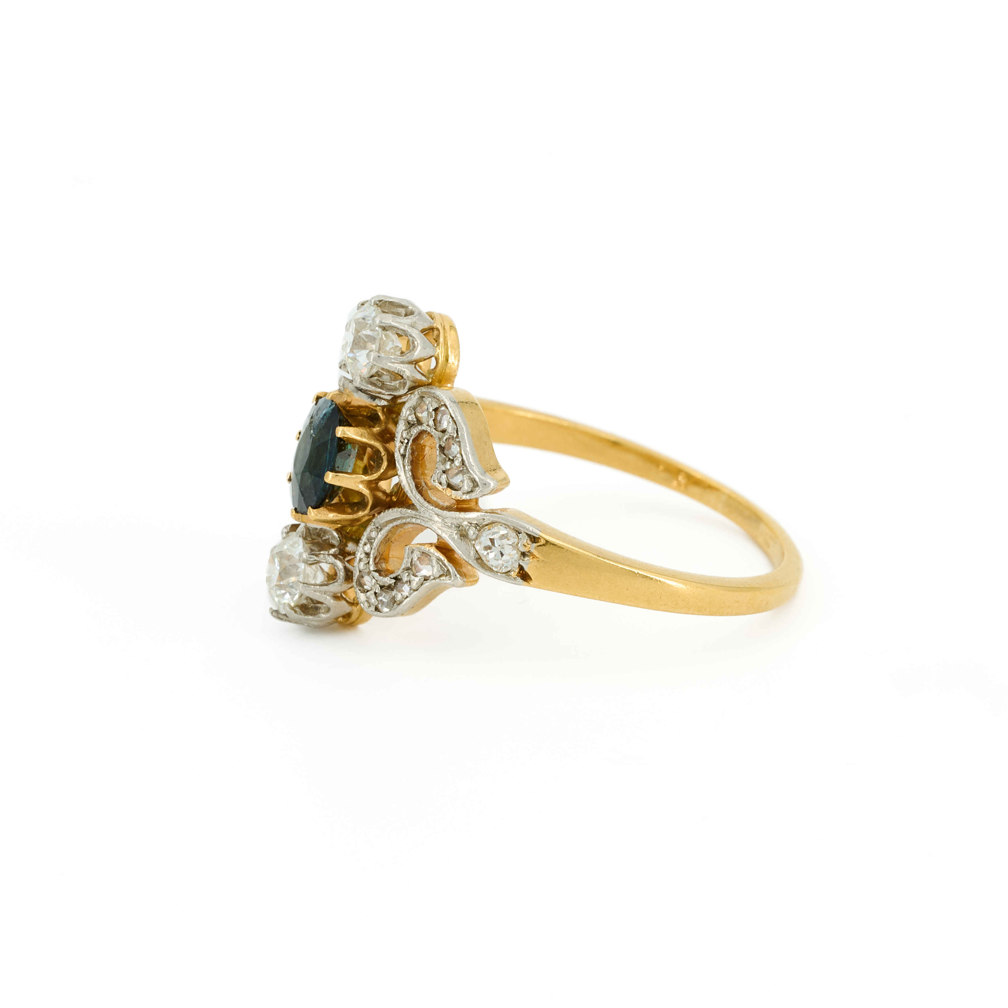Diamanten: 2 Diamanten im Alt-Schliff zus. ca. 0,37 ct., 18 Diamanten im Rosen- und Alt-Schliff zus. ca. 0,14 ct.