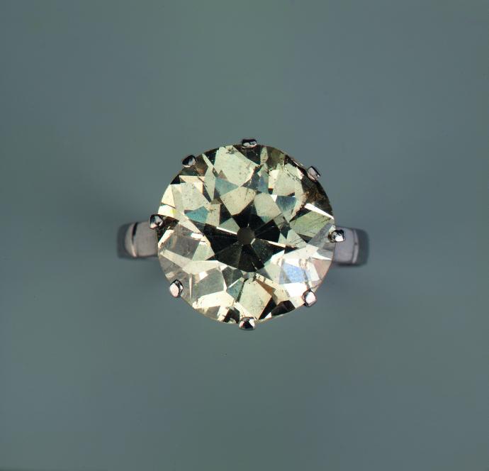 950/000 Platin, getestet, Gesamtgewicht: 5,3gr. EU-RM: 56. Ein Altschliff-Diamant ca. 7,58ct. (lt. Gauge) Colour: Top Cape P1-2