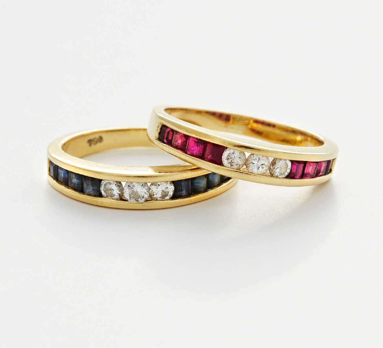 Set: 2 Bandringe mit Saphir-Rubin-Brillantring.