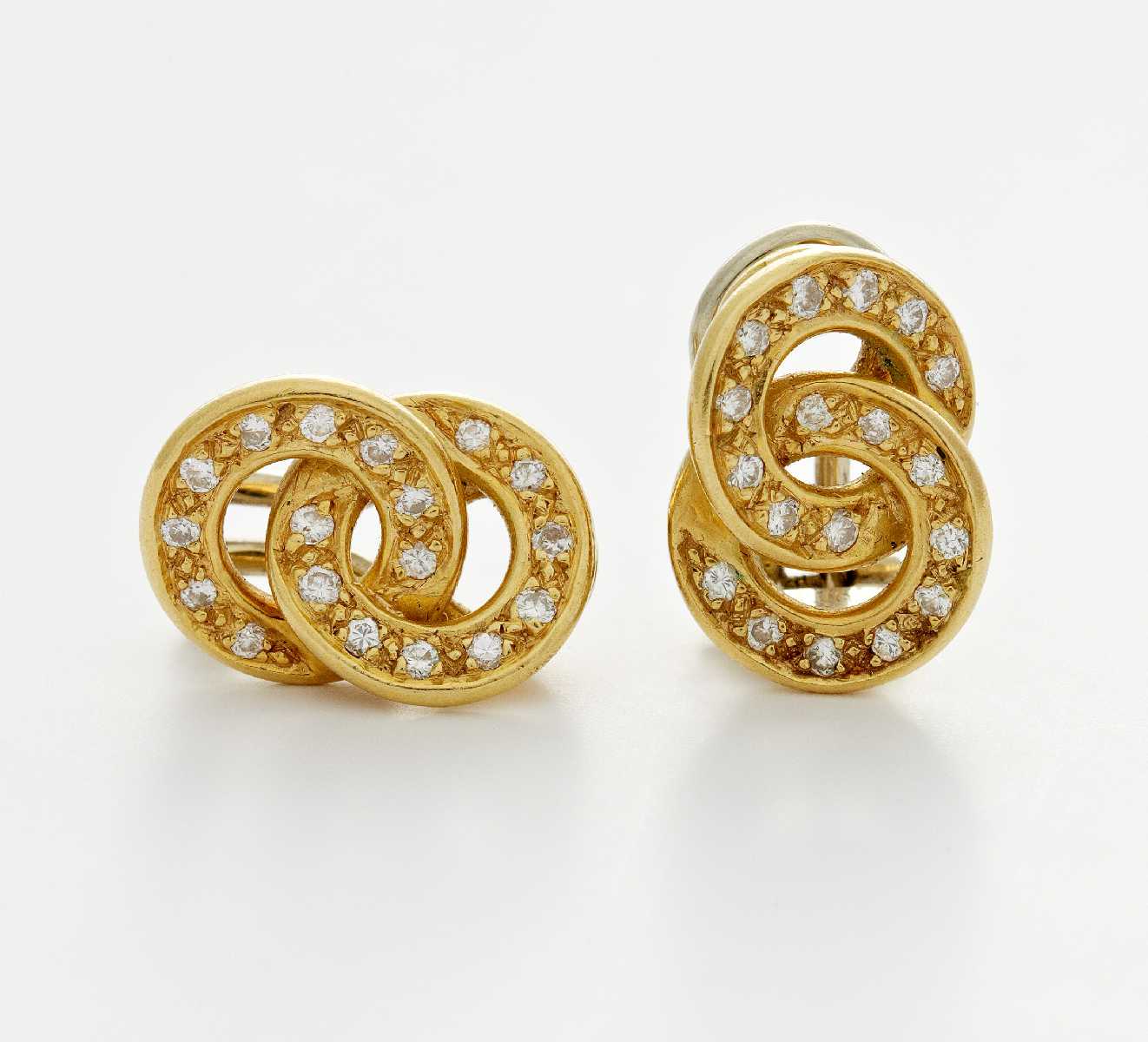 750/- Gelb-/Weißgold, gestempelt, Gewicht: 10,0g. 36 winzige Brillanten, H x B=1,6 x 1,1cm.