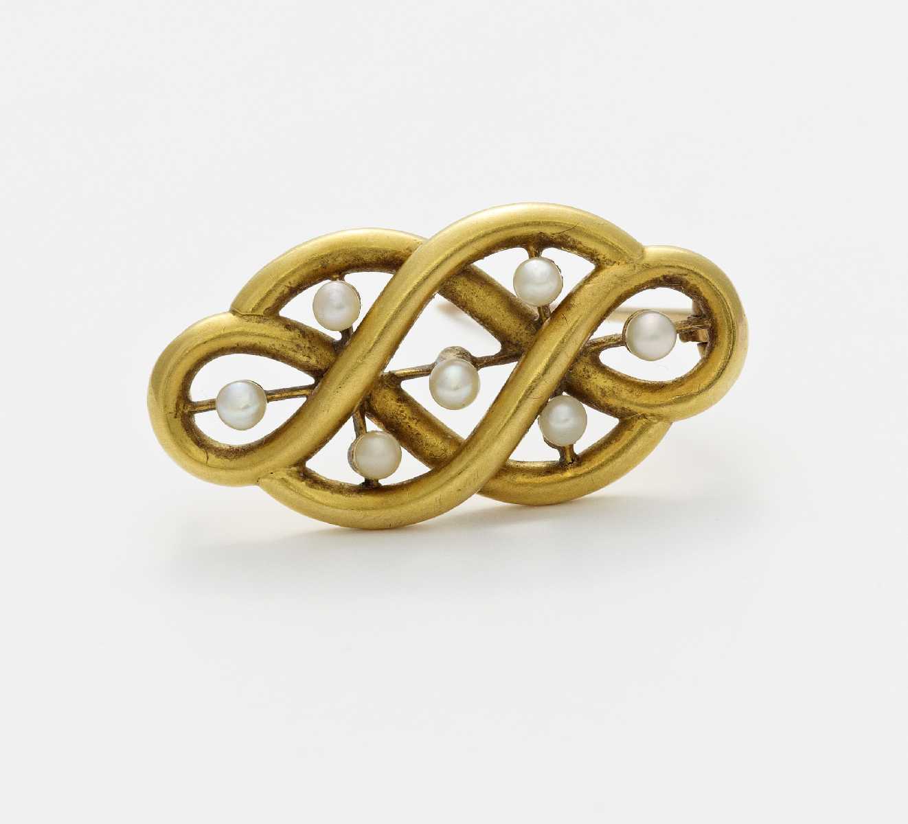 Brosche mit Perlbesatz.
