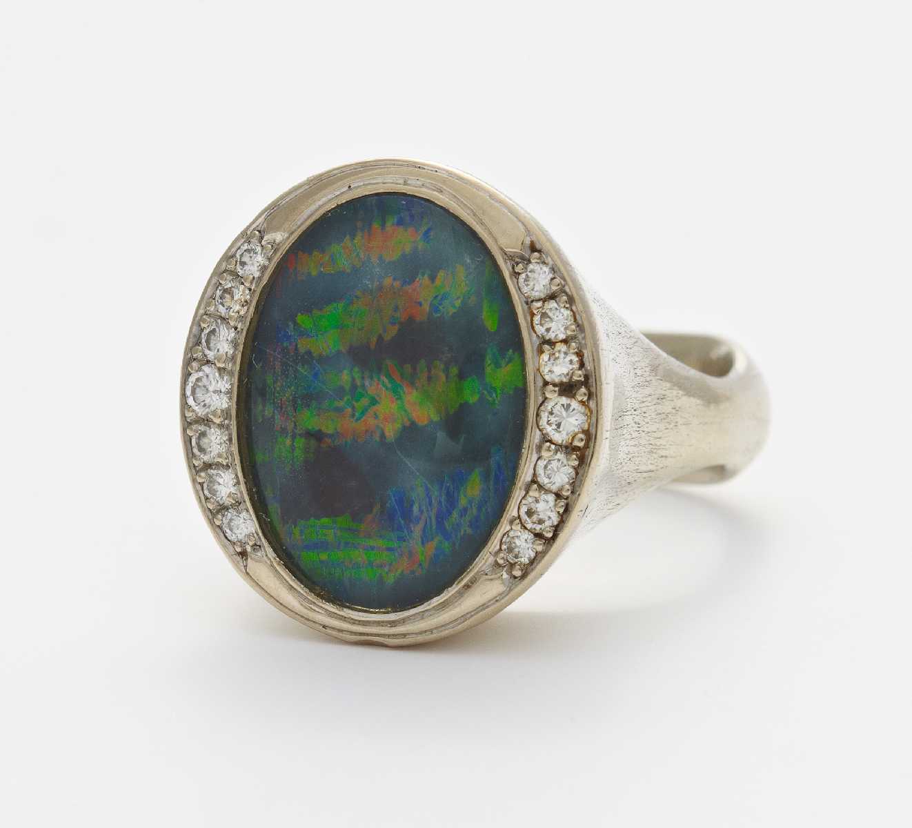 Ring mit Brillant-Opal-Dublettenbesatz.
