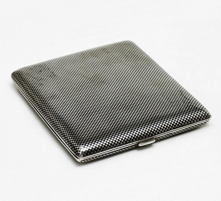 Silber, Innenvergoldung. Niello. Schachbrettdekor. Innen Widmungen und Datum 1921. 8 x 9,5cm. Ca.112g. Zustand A/B.