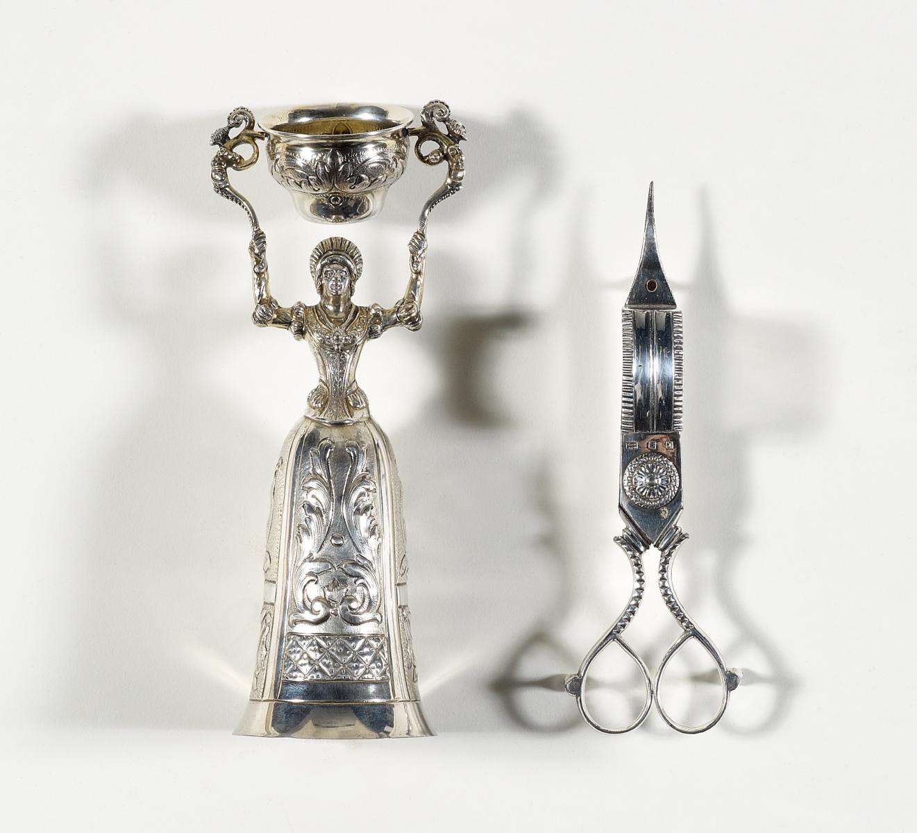 Silber, teilvergoldet. H.20,5/L.18cm. {Beil.:}Dochtschere. Versilbert. Ca.180g. Zustand A/B.